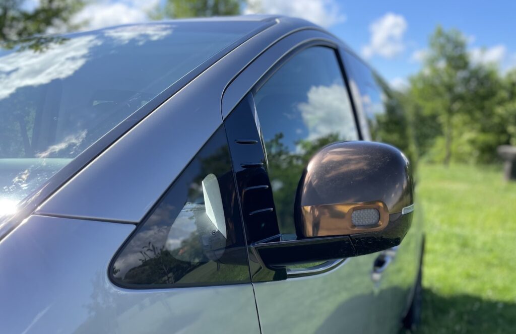 Alespoň mě připadá, že tenhle vzhled bude moderní i za zmíněných 10 let. Takhle pěkné MPV tady dlouho nebylo a možná bych řekl, že dokonce nikdy. Naživo je to opravdu velké auto, ale minimalisticky pojatá přední část mě absolutně vyrazila dech. Z fotek jsem ji samozřejmě už nějakou dobu vnímal a přiznám, že se mi líbila. „Tváří v tvář“ je to ještě o hodně lepší. Boční profil je typicky MPVéčkový, dodávkovitý. Ano, je to tak a kromě pěkných kol se tu mnoho vymyslet nedá. Jemné bronzové detaily na klikách a zpětných zrcátkách ale přidají prémiový dojem a vhodným způsobem „rozbijí“ velké plochy. Celkově boční pohled odlehčuje opravdu bohaté prosklení, které dává tušit, že v interiéru se budu cítit vzdušně a příjemně. Zadní části dominují především velké zadní lampy, které se táhnou téměř přes celou výšku vozu a samozřejmě jsou tu i obrovská zadní vrata.