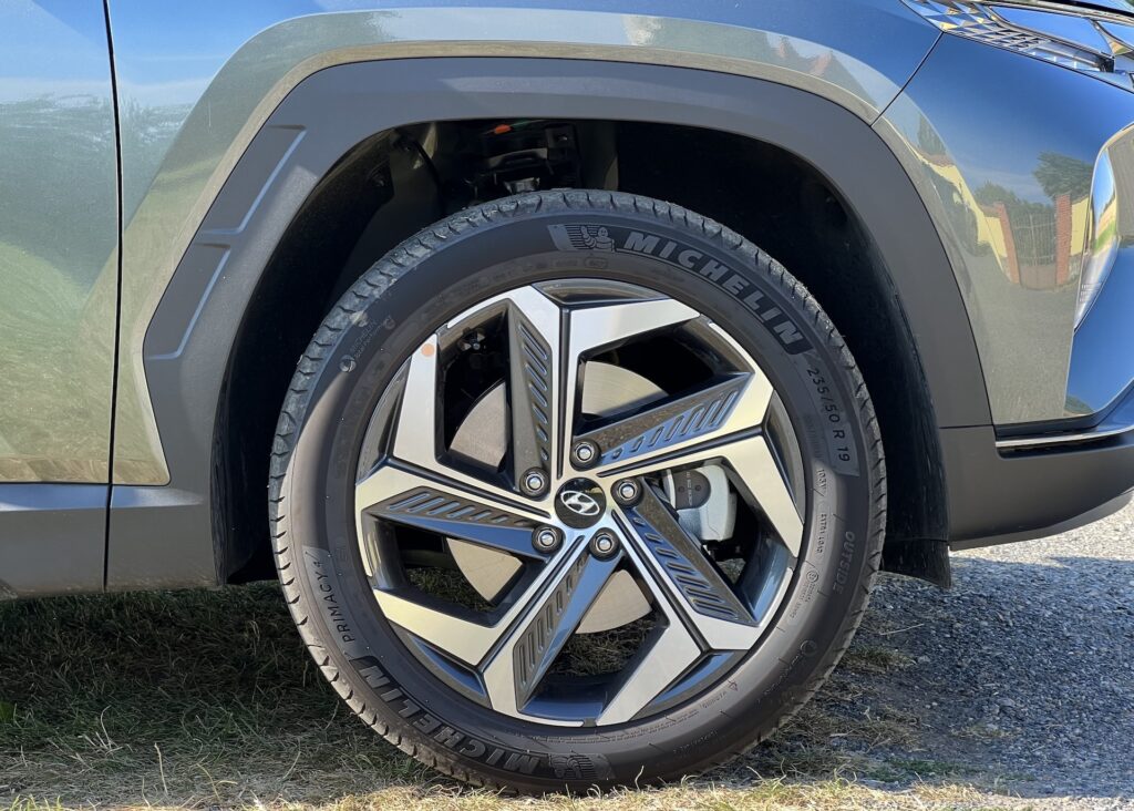 Auto jsme dostali s 18palcovými koly, na nichž se ukázalo být auto až překvapivě komfortní. Zadní část vozu doplňuje dlouhý světelný pruh, který spojuje zadní světla. Vzhledově auto opravdu hraje na ruku svému sportovnímu označení v názvu SUV. Design auta lze určitě označit jako sportovní, dravý a cílevědomý. Oceňuji, že Hyundai nepotřebuje nutně výrazně zobrazovat své logo na automobilech. Logo je umístěno v tmavé barvě mřížky a hezky zapadá, nikoli rušivě nějak zaujímá. Pokud by logo mělo stříbrnou barvu, celý dojem z auta by byl pokažen.