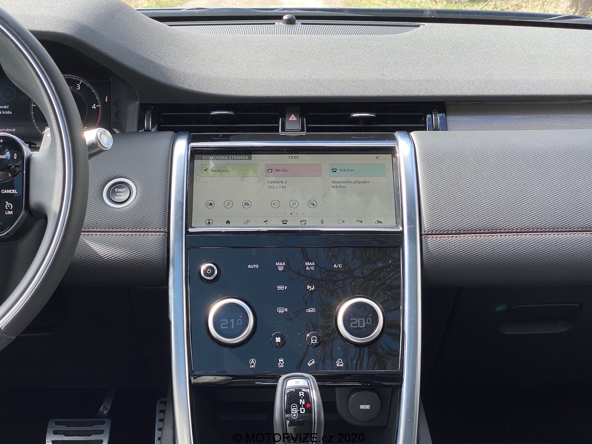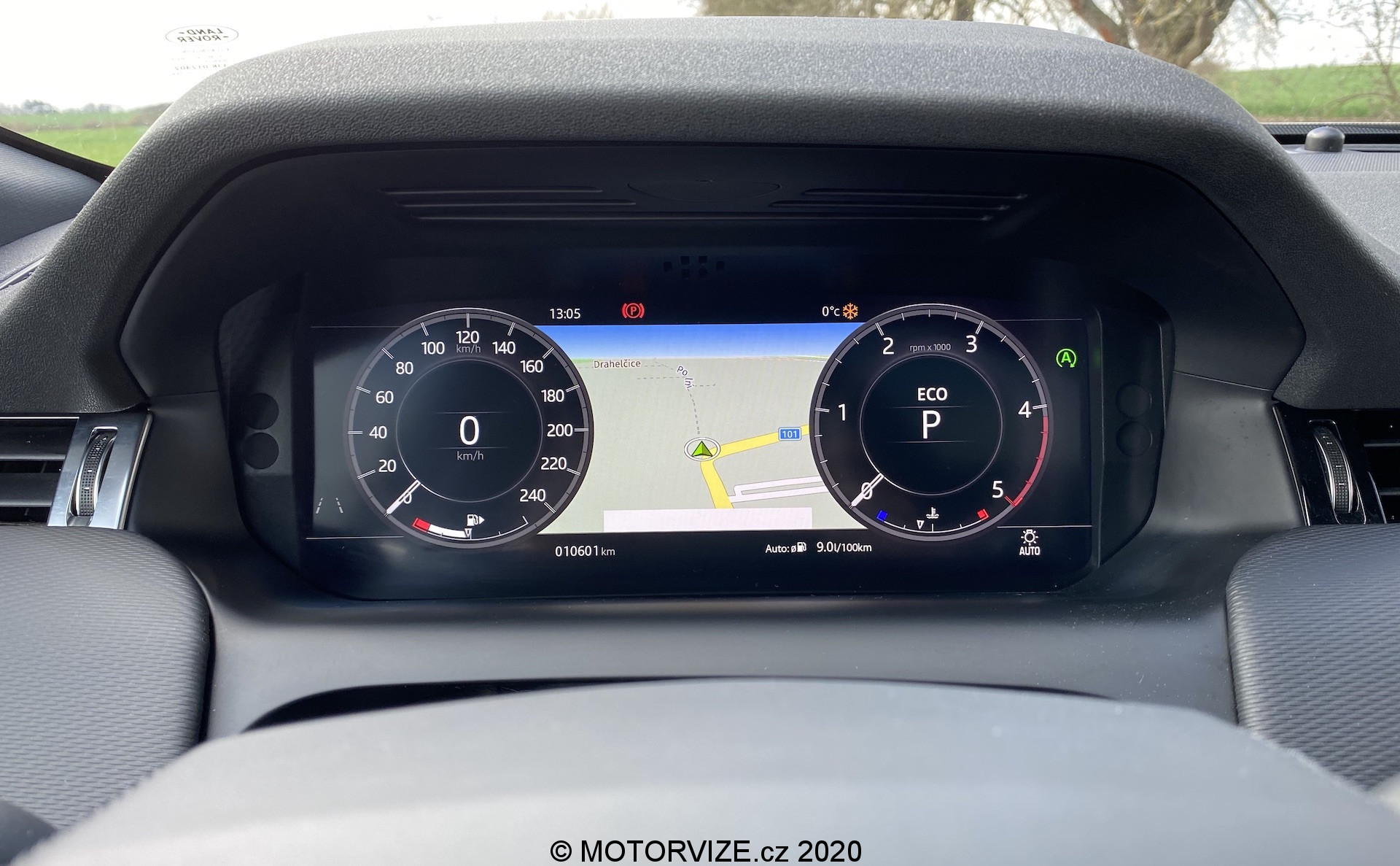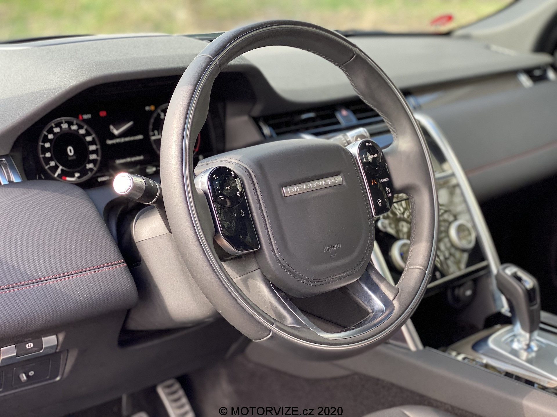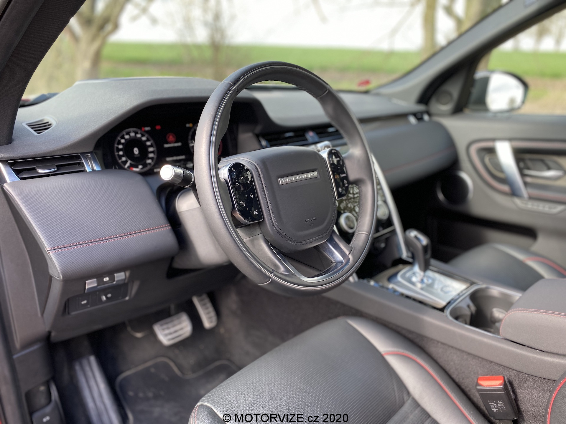 Různé možnosti zobrazení displejů společně s multimediálním systémem příliš rozebírat nechci. Jednoduše řečeno vše vypadá skvěle, pracuje svižně a kompatibilita je příkladná. Co mne ale opravdu zaujalo, je středový panel po displejem, který vypadá jako klasický černý klavírní lesk nicméně v momentu, kdy máte potřebu, nebo chuť změnit rychlost ventilátoru klimatizace, zapnout vyhřívaní předních křesel, nebo navolit ten pravý jízdní režim, stisknete příslušné tlačítko a právě tento lesklý povrh je náhle prosvícen v jiném bodě a ovladač teploty klimatizace promění svou funkci dle vašeho požadavku. Jsem ohromen. Stejné zpracování funkčních tlačítek nalezneme i na volantu. Zpočátku to může být trochu zmatečné… Chce to trpělivost… Jakmile si na tyto možnosti navyknete, oceníte čistotu pracovního prostoru bez vysokého počtu různých přepínačů a spínačů, tohle se opravdu povedlo. A už jsem zmínil, jak vás bude bavit dotykově točit s ovladačem hlasitosti na volantu? Mezi inovace lze zařadit i středové zpětné zrcátko, jenž se umí z klasického změnit v displej zobrazující o něco širší obraz a umožňující nastavení sklonu i jasu. Nebudu lhát, toto řešení jsem měl možnost zkoušet už kdysi v Evoque, tady jsem si na něj ale poprvé opravdu zvykl. V neposlední řadě bych se rád zastavil ještě u jedné, často opomíjené drobnosti. Tovární (vestavěné) navigace už dneska příliš nepoužíváme – oddáváme se především těm internetovým i se všemi jejich výhodami i nevýhodami, a to především díky CarPlay či Android Auto, jejichž konektivitu Land Rover samozřejmě nabízí. Discovery mě ale doslova nutila používat i vlastní mapy. Důvod byste neuhodli. Jde především o jejich skvělou grafiku a možnost vyvedení do digitálního přístrojového štítu přímo před řidiče. Mezi mnoha možnostmi zobrazení se navíc ukrývá i ta zobrazující mapu přes celý displej, což je tak odzbrojující, že bych se snad vrátil v čase. Digitální přístrojovku koncern Jaguar/Land Rover uvedl před lety jako jeden z prvních a mnoho toho na ní dodnes neměnil. Víte proč? Protože je jednoznačně skvělá – nabízí mnoho různých režimů zobrazení a volbu jednotlivých informací.
