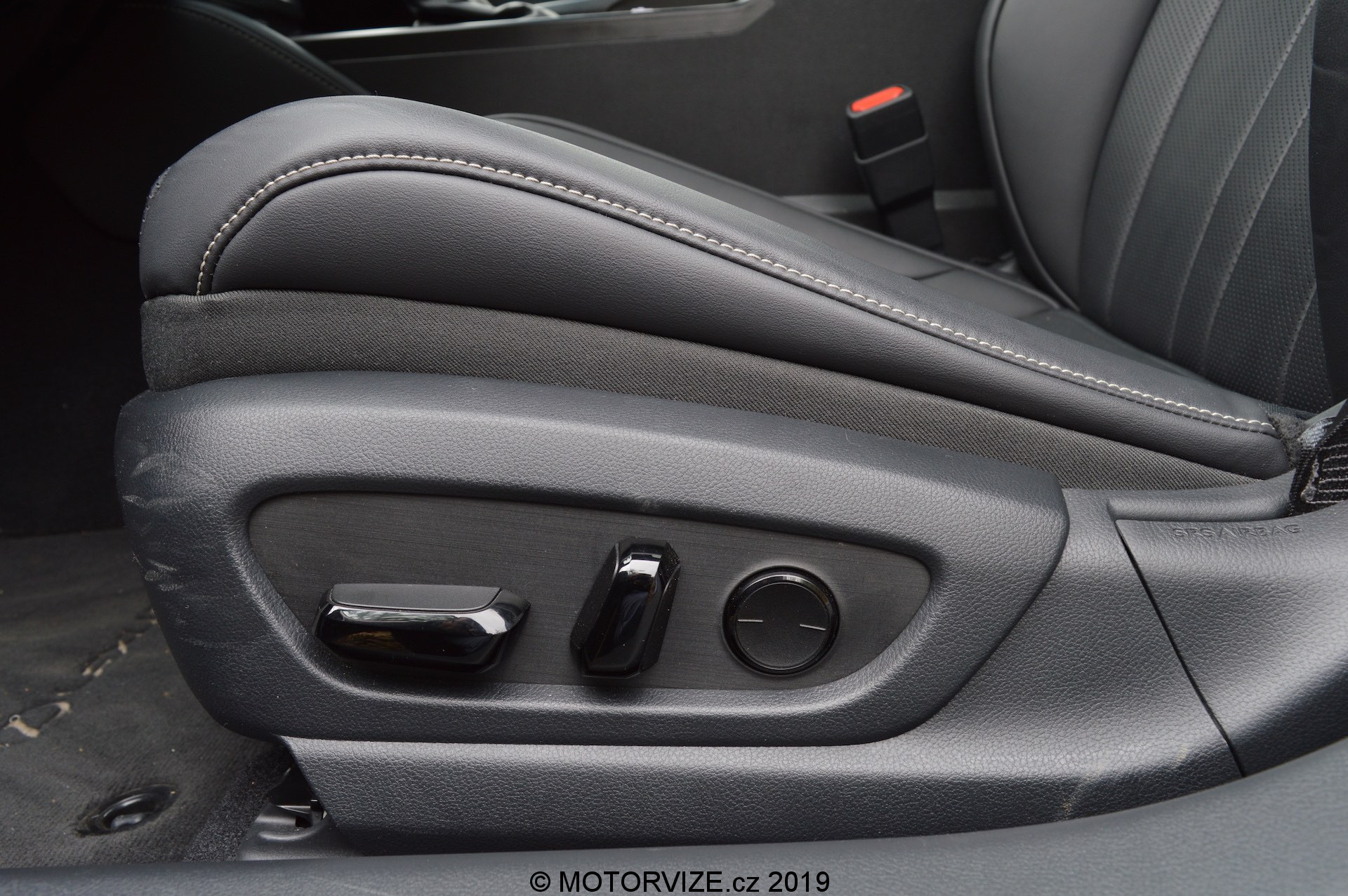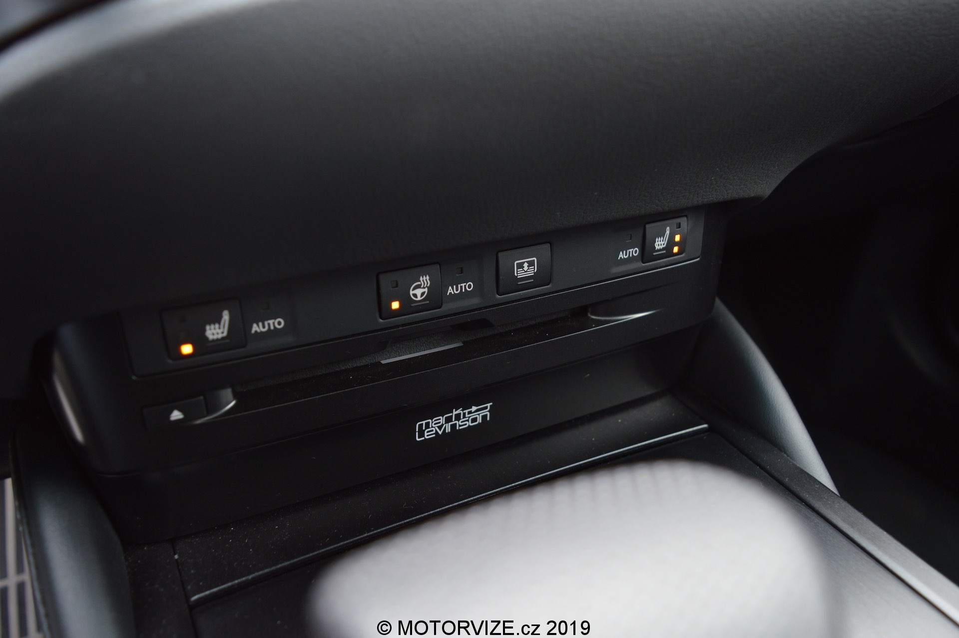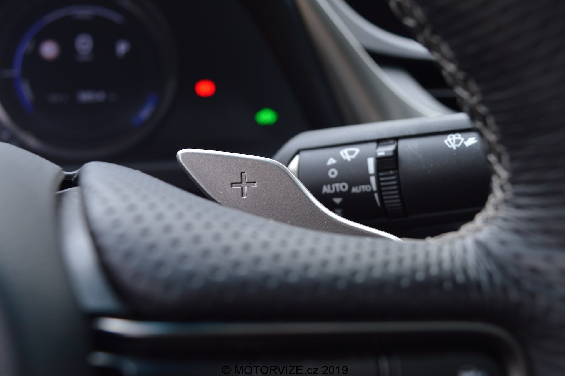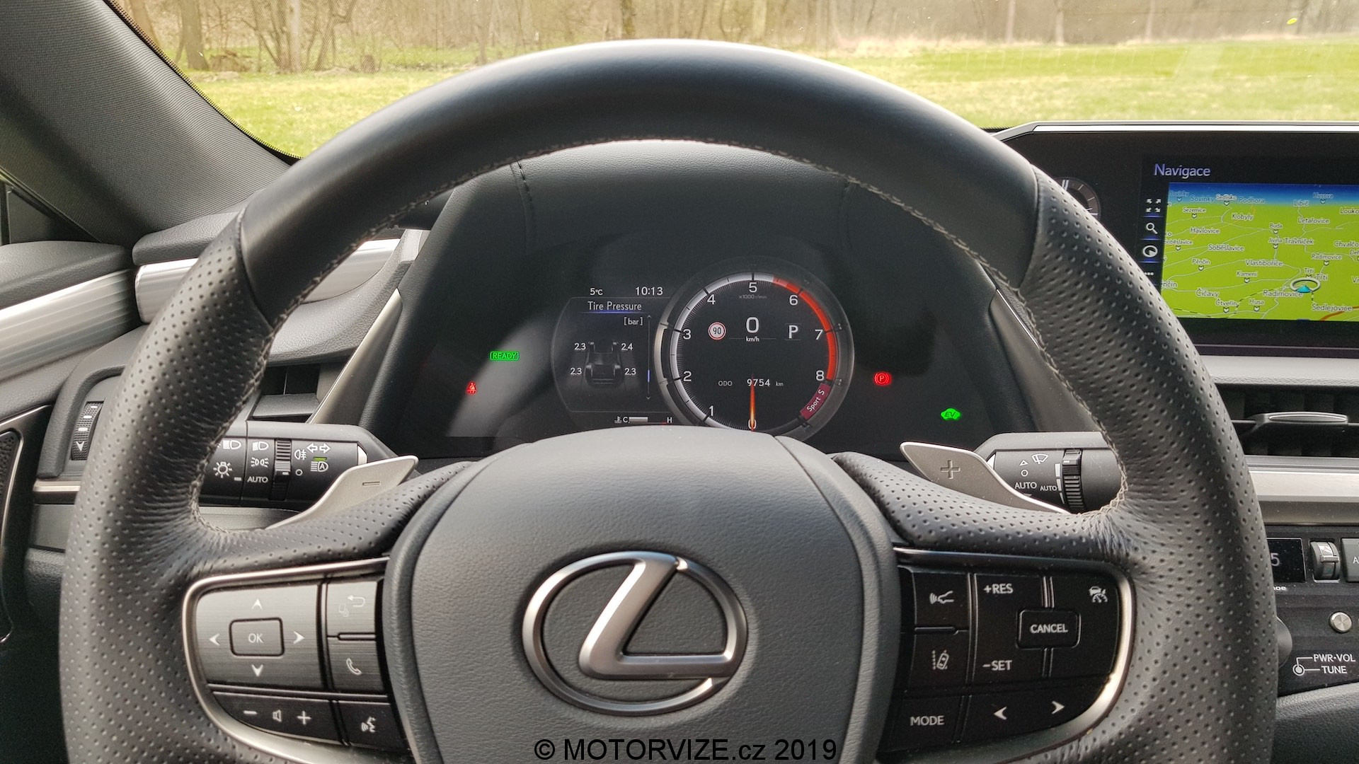 Při návrhu celkového vzhledu a pojetí kabiny ES vycházeli designéři z koncepce „Lexus Future Interior“, která spojuje řidičsky zaměřený kokpit s prostornou a pohodlnou zónou pro předního spolujezdce. Před řidičem je kaplička přístrojů s typickým pohyblivým budíkem, jenž dokáže zobrazit veškeré informace o jízdě a o vozidle tak, že řidič nemusí spouštět oči z vozovky. Navíc má k dispozici i HeadUp displej s velmi ostrou grafikou a jasnými barvami (seřízení HUD lze ke všemu najít rychle a je intuitivní). Sportovní tříramenný volant padne příjemně do ruky, má silný věnec s perforovanou kůží. Ve středu je mírně utopený 12palcový nedotykový displej pro informační systém vozu, který se ovládá přes touchpad umístěný na středovém panelu. Setkal jsem se s názorem, že ovládání je příliš komplikované, dobré akorát tak pro raketové inženýry, ale to já sám potvrdit nemohu. Po chvilce zkoušení jsem se se systémem sžil a dokázal ho ovládat naprosto intuitivně bez nutnosti koukat, na co šahám. Jedinou velkou výtku bych k němu ale měl. Lexus zatím nelze spojit s telefonem a zrcadlit jeho obsah prostřednictvím konektivity Apple CarPlay nebo Android auto. Na oficiálních stránkách výrobce jsem se ale dočetl, že i tato funkce by měla přijít v některé z aktualizací ještě tento rok. Na levé straně vedle displeje jsou malé analogové hodiny, které mi připadají, že do takto „technického“ interiéru ani nepatří a vlastně se v něm i ztrácejí. Níže se nachází několik klasických tlačítek na ovládání klimatizace a rádia (palec nahoru).