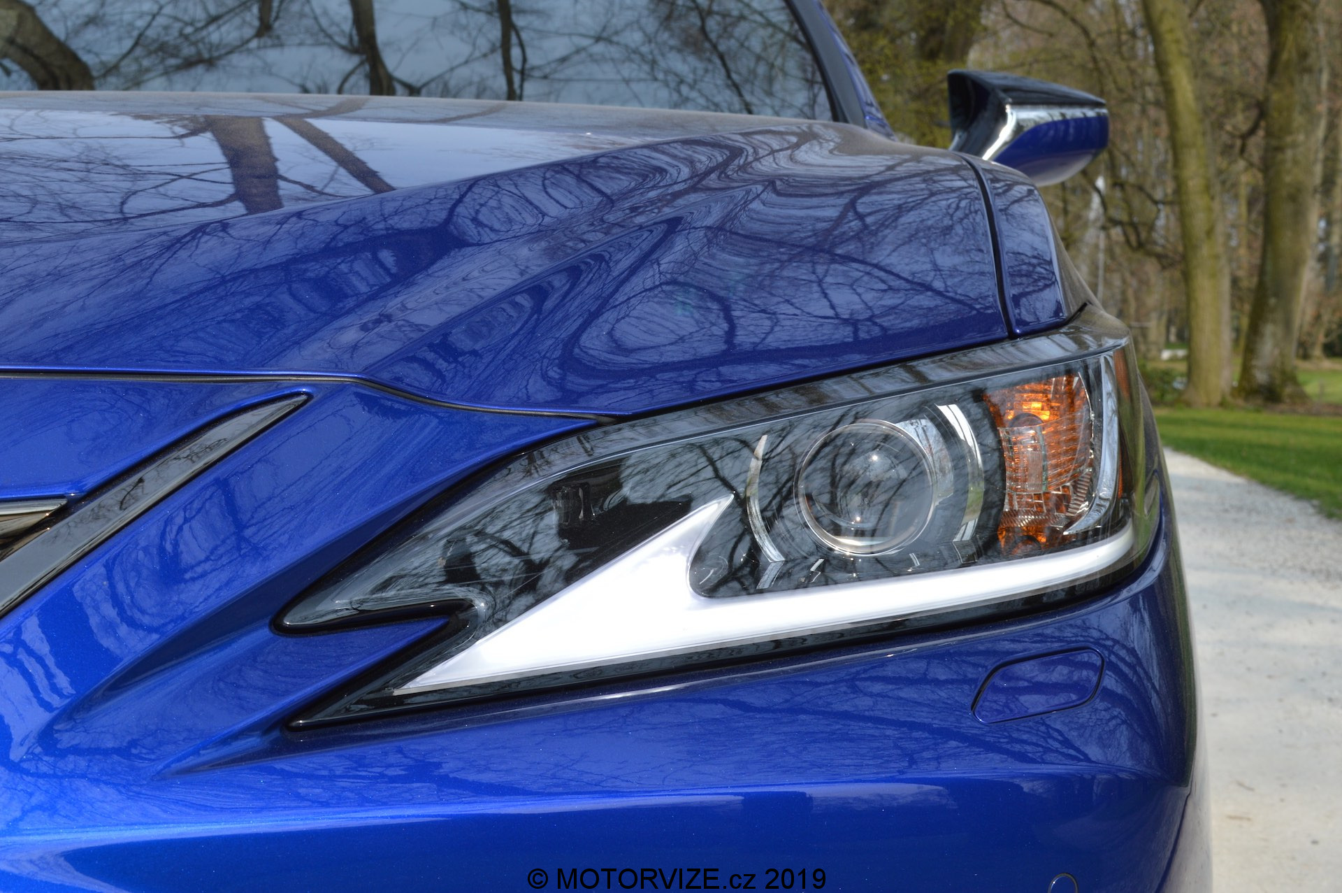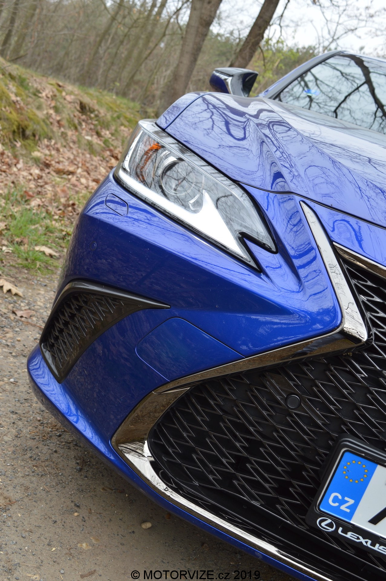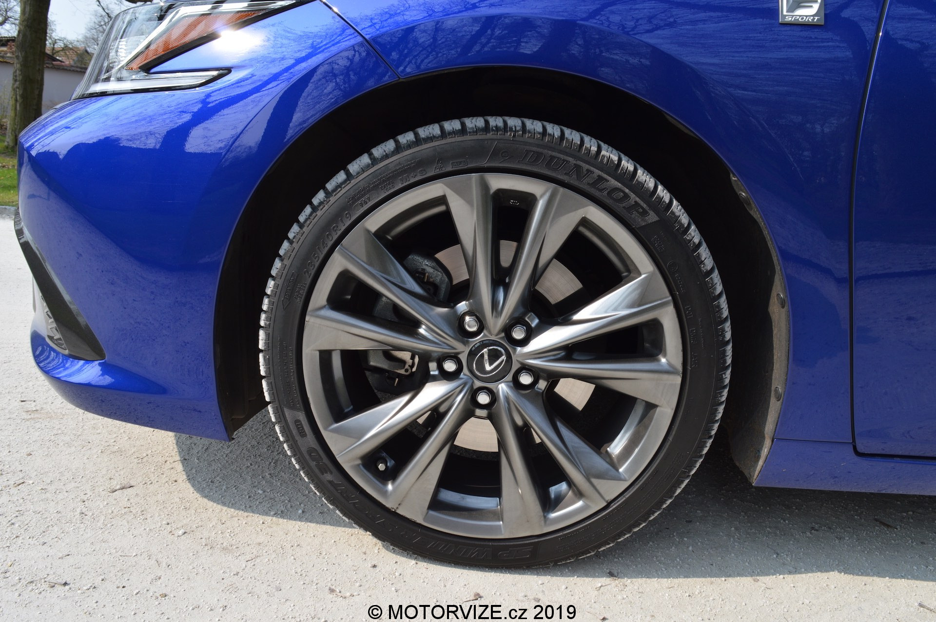 Limuzína vyšší střední třídy v žádném případě nemusí být nevýrazné barvy anebo dokonce nudných tvarů a vlastně takové už dnes moc nejsou. Lexus ES patří právě k pravému opaku. ES je postaven na zbrusu nové podvozkové platformě GA-K. Vůz je oproti předchůdci delší (+65 mm), nižší (-5 mm) a širší (+45 mm), rozvor narostl o +50 mm. Nová platforma umožnila použít nízkou linii kapoty, a tak tým designérů vytvořil markantní siluetu s nápadně klesajícími křivkami, čímž vznikl dynamický, ale současně i uhlazený tvar. Hlavním poutačem čelní partie ESsa je mohutná maska chladiče Lexus ve tvaru vřetene, kde je použit černý mřížkový vzor, který je sladěn s výdechy ve spodní části předního nárazníku. Dále pak navazují úzké světlomety s typickou šipkou z LED. Nová generace staví design na rychle klesající linii střechy, která zdůrazňuje nižší postoj vozidla a jeho velmi dobré aerodynamické vlastnosti. Na čisté a ostře řezané zadní partii zaujmou LED světla obepínající boky karoserie, čímž potvrzují jednotnou stylistickou linku. Dále je zde výrazný zadní spoiler a tmavý lisovaný díl ve spodní části vozidla ke zdůraznění celkového vzhledu. Testovaný model F SPORT obouvá 19″ kola, jenž jsou designově podobná těm u kupé LC. Celkový vzhled podtrhuje jasně modré lakování s označením Heat Blue (někde také safírová modrá).