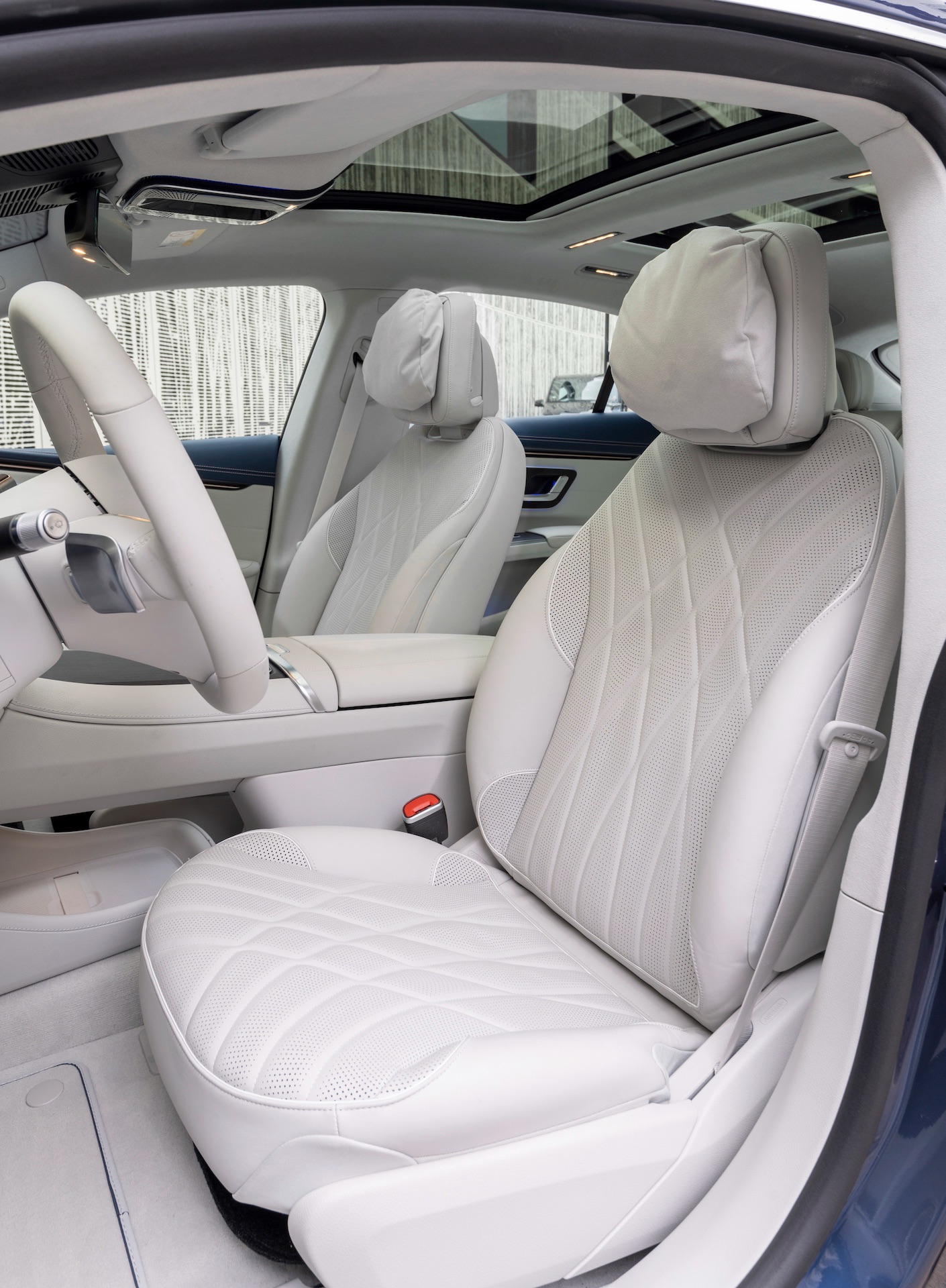 Přichází-li řidič k vozu, vysunou se nejprve kliky dveří. Při dalším přiblížení se automaticky otevřou dveře řidiče. Prostřednictvím systému MBUX má řidič navíc možnost nastavit si dálkově ovládané otvírání zadních dveří, aby mohly například děti nastoupit do vozu u školy. EQS je vysloveně inteligentním automobilem, který v závislosti na výbavě disponuje až 350 senzory pro snímání vzdálenosti, rychlosti, zrychlení, světelných podmínek, srážek, teploty, obsazenosti míst, mrkání řidiče nebo hovoru cestujících. Velké množství informací zpracovávají řídicí jednotky, které na základě algoritmů přijímají bleskurychlá rozhodnutí. Jsou doslova jeho mozkem. Nové EQS dokáže získávat nové zkušenosti a rozšiřovat své schopnosti, protože má díky umělé inteligenci dovednost učit se. Valet Parking (AVP, úroveň 4 podle SAE) pro automatické zaparkování vozu. Společně s potřebnou výbavou na přání a příslušnou službou Connect (v závislosti na zemi) disponuje vozidlo technikou pro zcela automatizovanou jízdu bez řidiče v parkovacích budovách, vybavených infrastrukturou AVP, včetně zaparkování a následného vyjetí z parkovacího místa. Tato funkce bude zavedena do nabídky, jakmile národní legislativy tento druh provozu umožní. Revoluční technika světlometů DIGITAL LIGHT (standardně od stupně výbavy Advanced Plus) umožňuje promítání pomocného značení nebo výstražných symbolů na vozovku. Novinkou jsou dvě asistenční funkce pro signalizaci zahájení kooperativní změny jízdního pruhu a upozornění/směrový pokyn, pokud asistenční systémy pro jízdu v jízdním pruhu a sledování slepého úhlu rozpoznají nebezpečí.