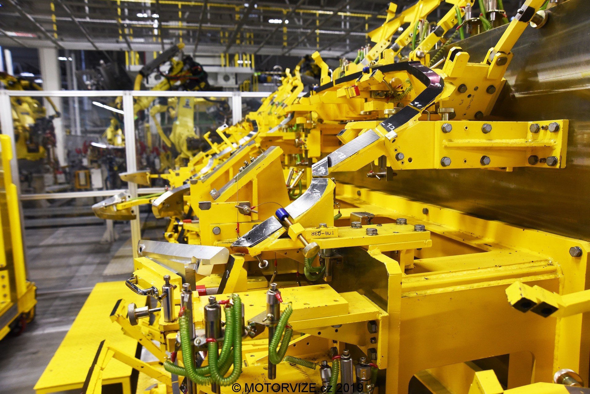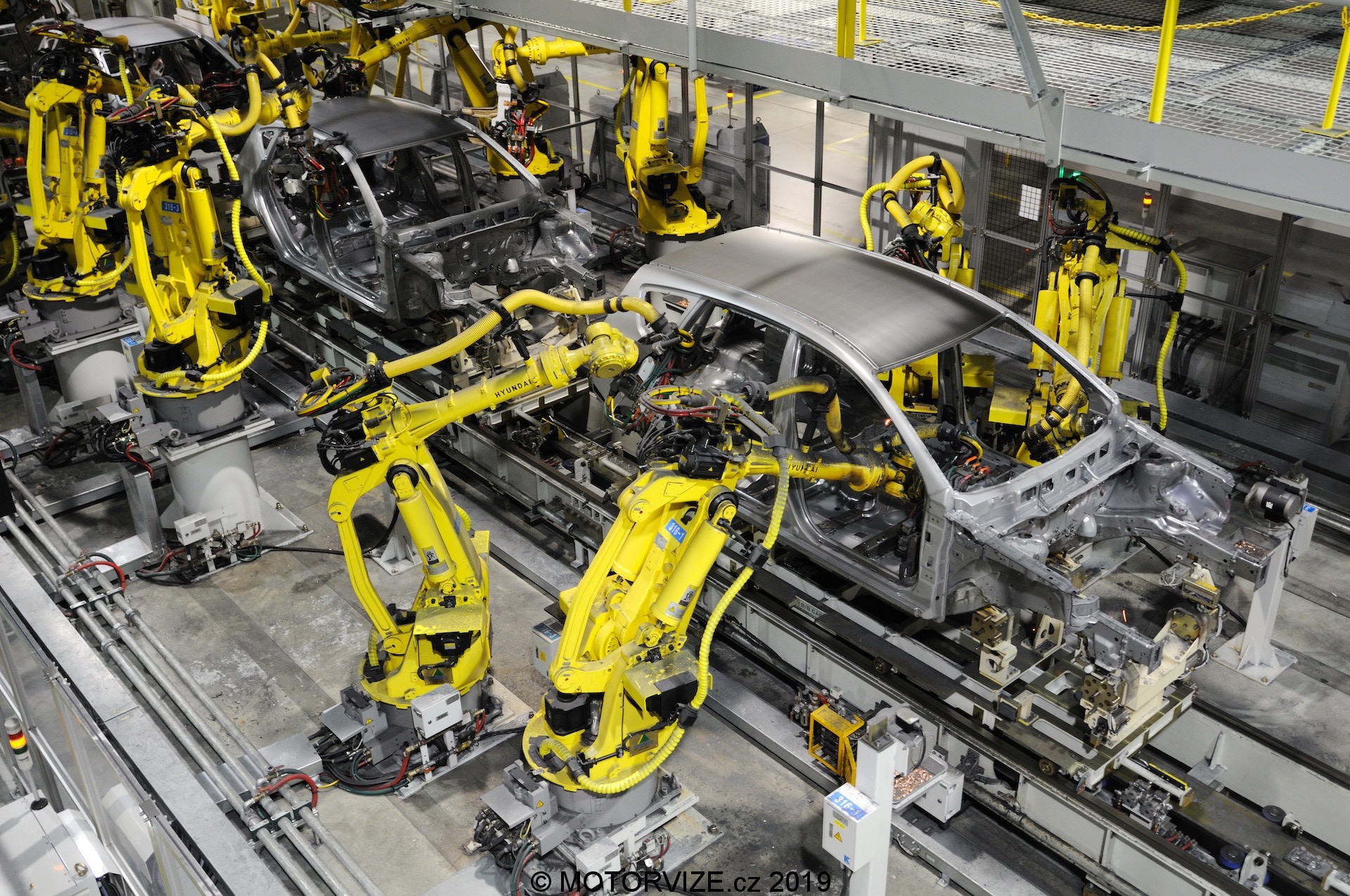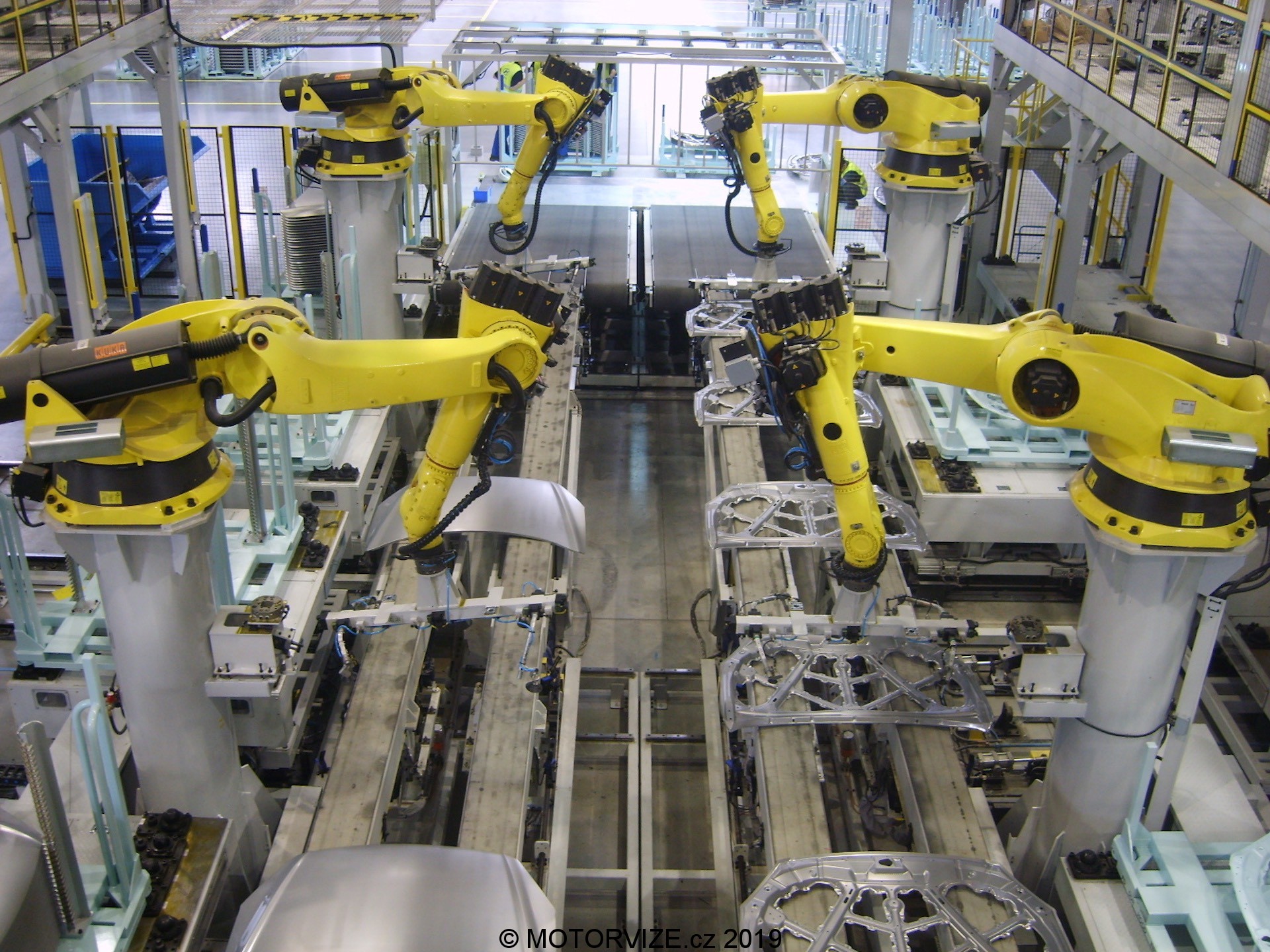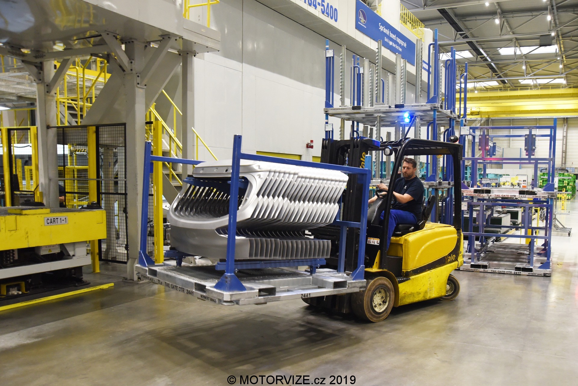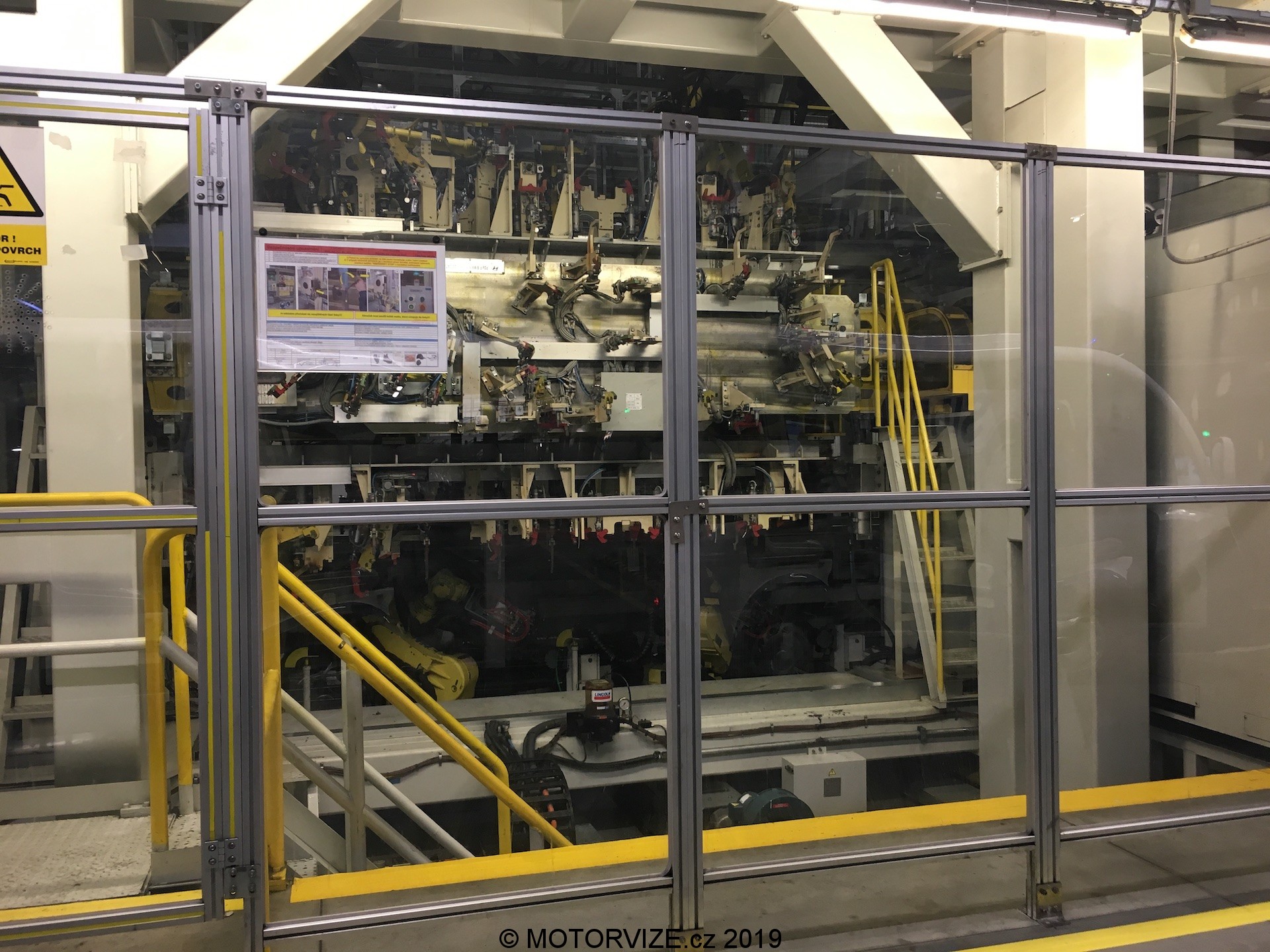 Po obědě následovala prohlídka téměř celým areálem. Naskočili jsme do vláčku a první zastávkou se stala Lisovna (Stamping Shop). Celou tuto halu jsme s ochrannými brýlemi projeli s vláčkem. Prakticky celou lisovnu obsluhovali až na pár výjimek roboti, kteří plnili naprosto bezchybně svůj úkon, připadala jsem si jak v robotím jurském parku. Je to naprosto jiný zážitek vidět to naživo než jen v televizi. V celém areálu panuje přesná hierarchie a pravidla, která všichni, včetně robotů dodržují. Kdyby se totiž pravidla nedodržovala, mohlo by třeba dojít k ošklivému úrazu. Když jsme projeli lisovnou, dorazili jsme k dalším robotům, kteří jednotlivé díly auta upevňují k sobě. Synchronizace těchto robotů je opravdu neskutečná a těm, kteří to nikdy naživo neviděli, přeji alespoň jednou zažít něco takového na vlastní kůži.