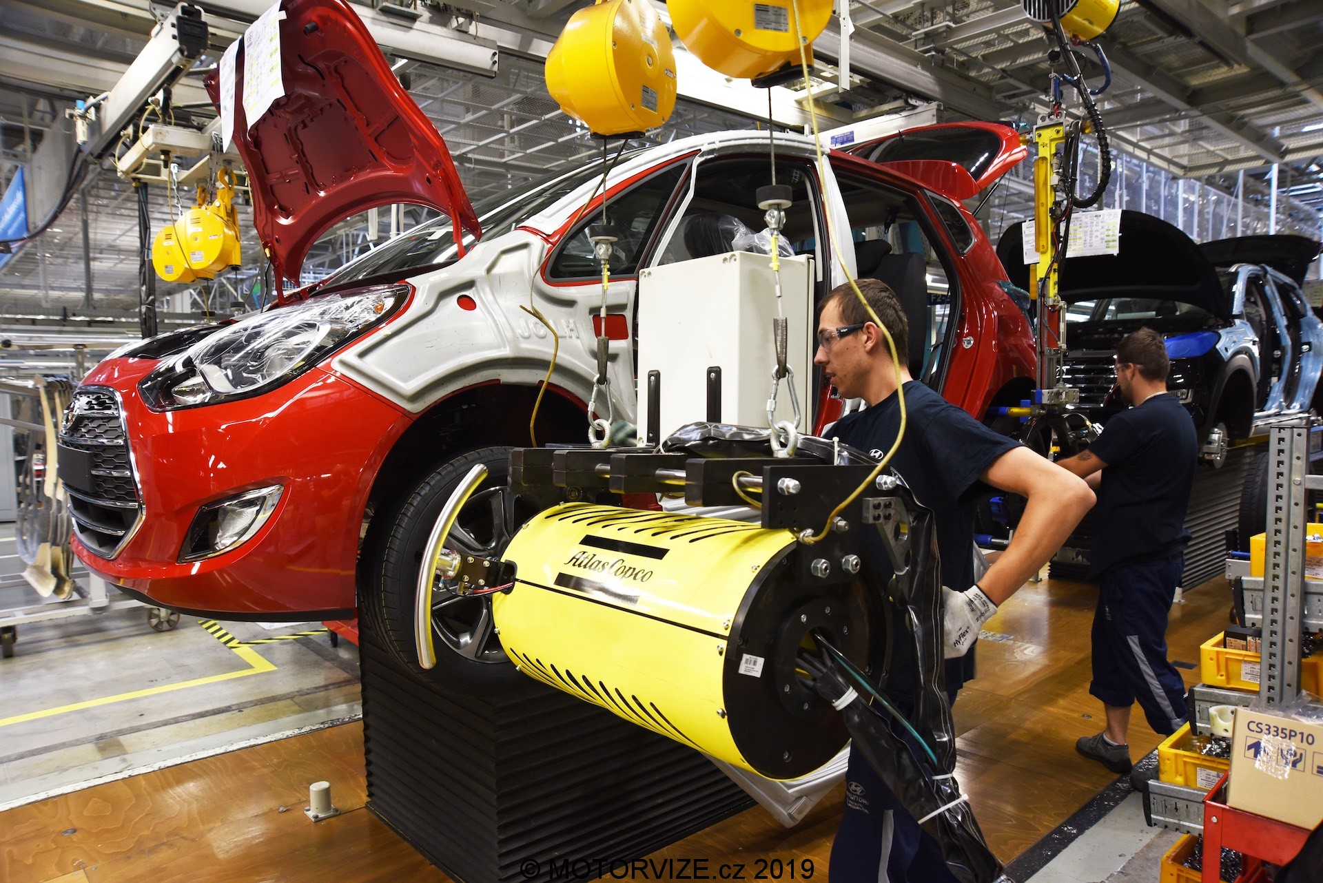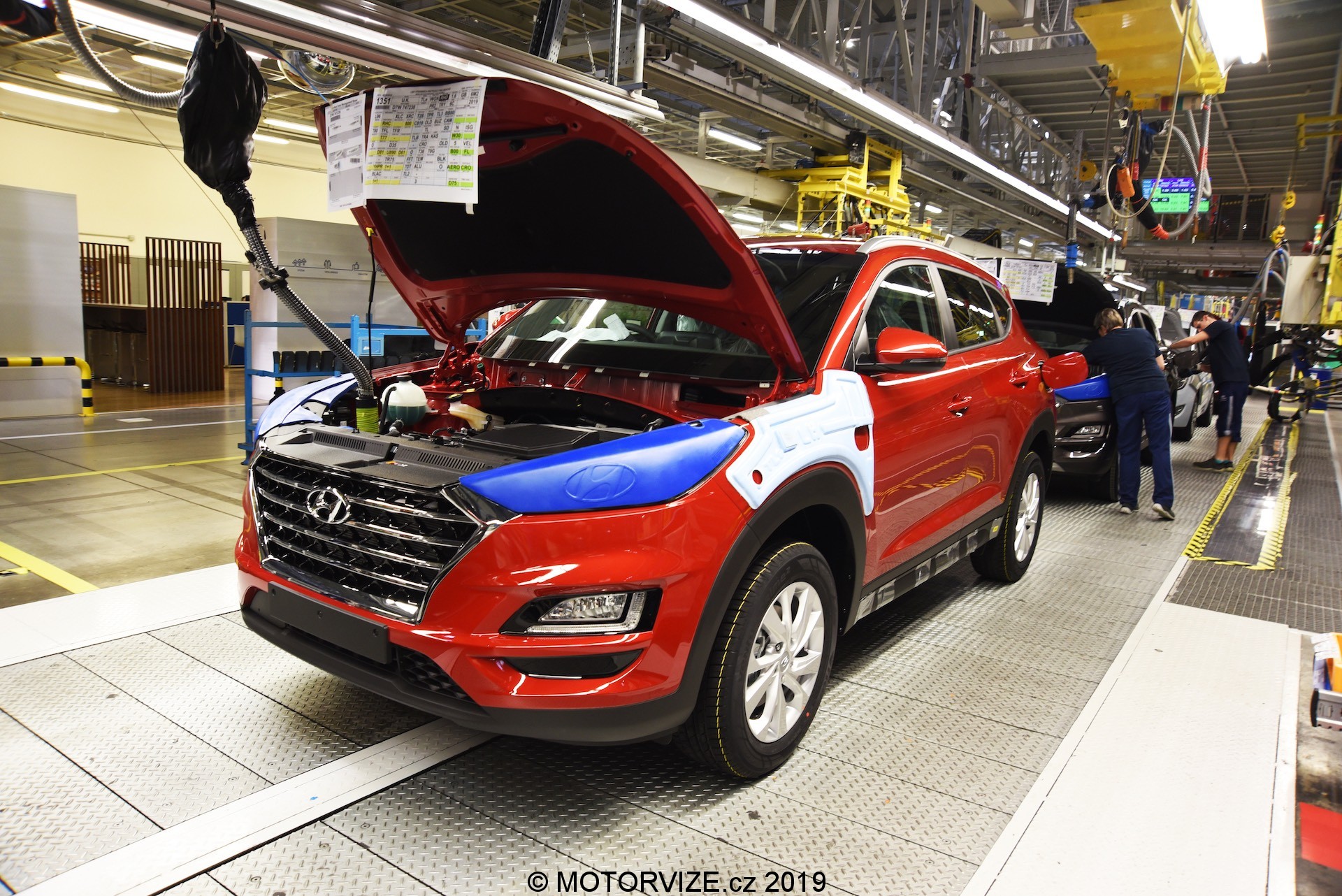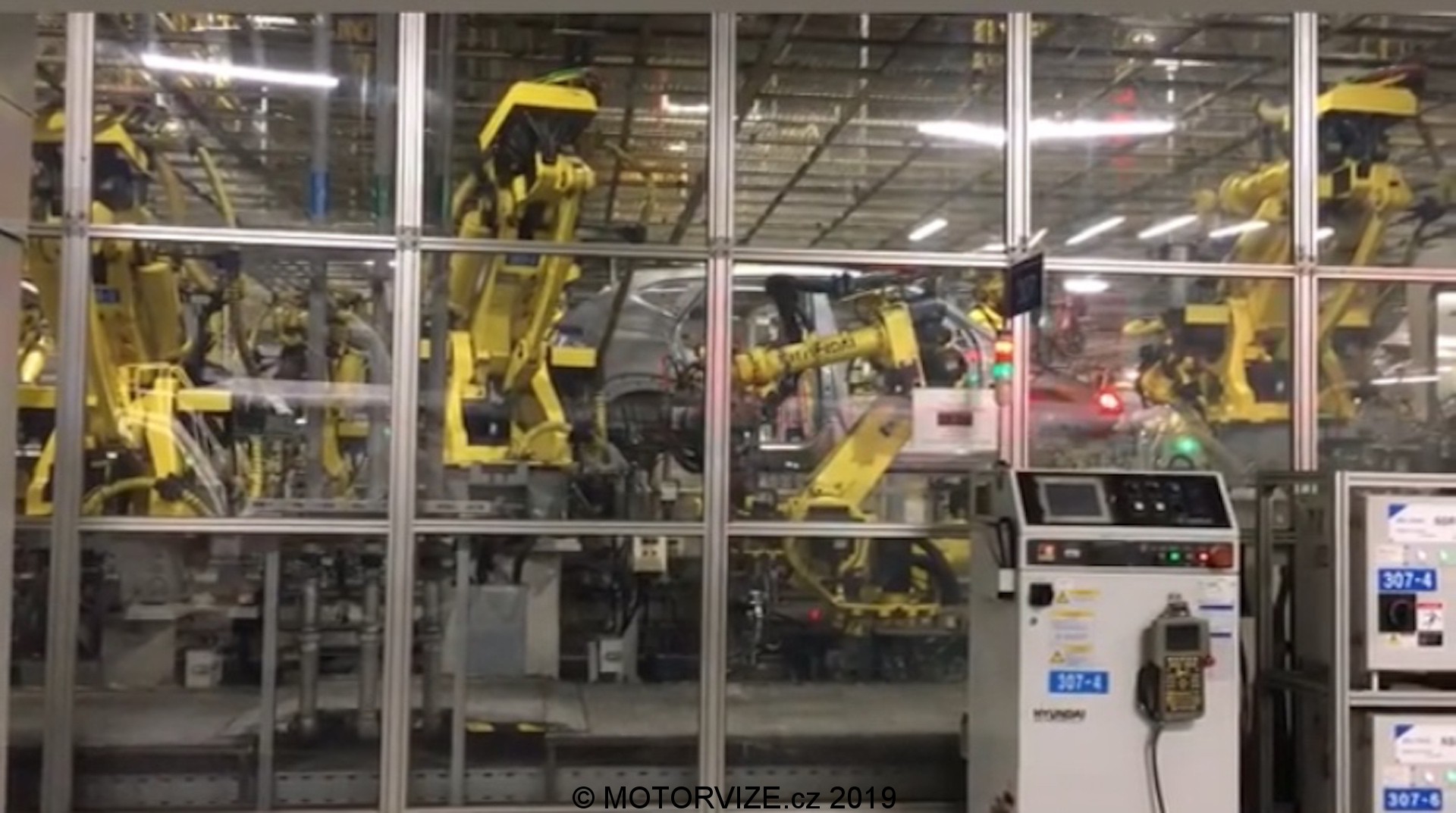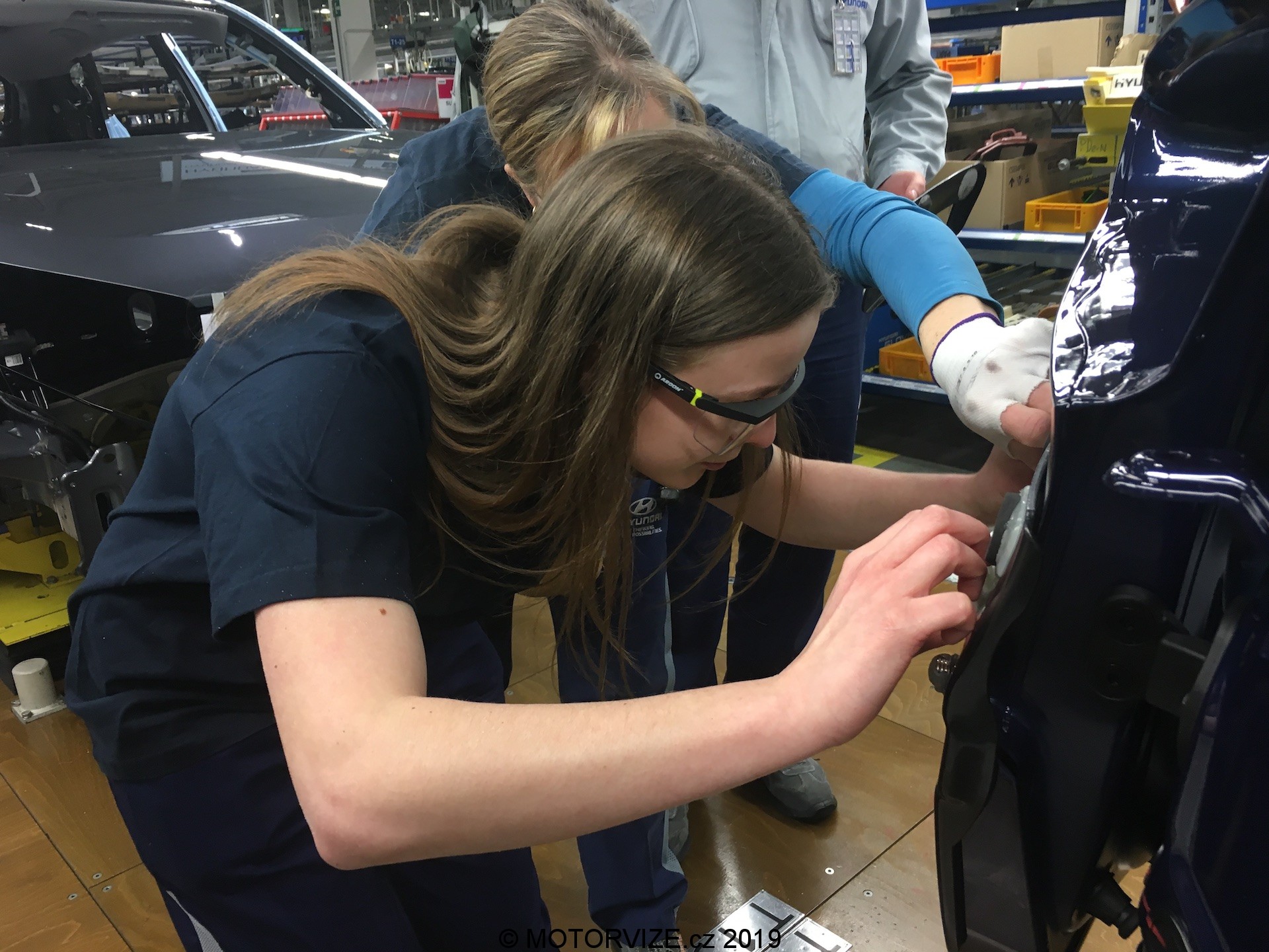 Po projížďce kolem všech možných robotů jsme zavítali do místnosti, kde se na vozidlech provádějí emisní kontroly. Každé auto je pod odborným dohledem kontrolováno z hlediska emisních hodnot a je takřka nemožné, aby bylo na trh uvedeno takové, které by emisní podmínky nesplňovalo. Na řadě je také komora, ve které automobil zažije extrémní teploty, a to jak vysoké, tak nízké. Tento test se provádí z důvodu zajištění odolnosti a také například schopnosti startování v mrazivých podmínkách. Do komory jsme měli možnost vstoupit, když byla zahřátá na 40° C. Po této zkušenosti přišel další, naprosto nový zážitek. Pod zkušenými pracovníky, kteří nám vše vysvětlili a dohlíželi na nás, jsme měli možnost, vyzkoušet si pár úkonů spojených s výrobou automobilu. Já osobně jsem lepila znak Hyundai na zadní dveře a nápis Tuscon a Hyundai do spodní části zadních dveří. Při lepení jsem byla opravdu nervózní, abych to nepokazila. Naštěstí mají pracovníci na tento úkol speciální rámečky, díky kterým nemůžete minout a nalepit nápis špatně. Toto avšak nebyla jediná úloha, kterou jsme měli na starosti. Dále jsem měla tu možnost vůbec poprvé nastartovat auto na výrobním pásu a tak vlastně jeho výrobu dokončit. Jelikož se v Nošovicích vyrábí automobily i pro britský trh, měla jsem volant na pravé straně. Trošku mě to vyděsilo, protože to byla opět moje premiéra. Vše jsem ale jsem zvládla a úspěšně dokončila výrobu jednoho konkrétního kusu Hyundai Tucson. Tímto přeji jeho majiteli hodně příjemných kilometrů – snad si na mě někdy vzpomene. ?