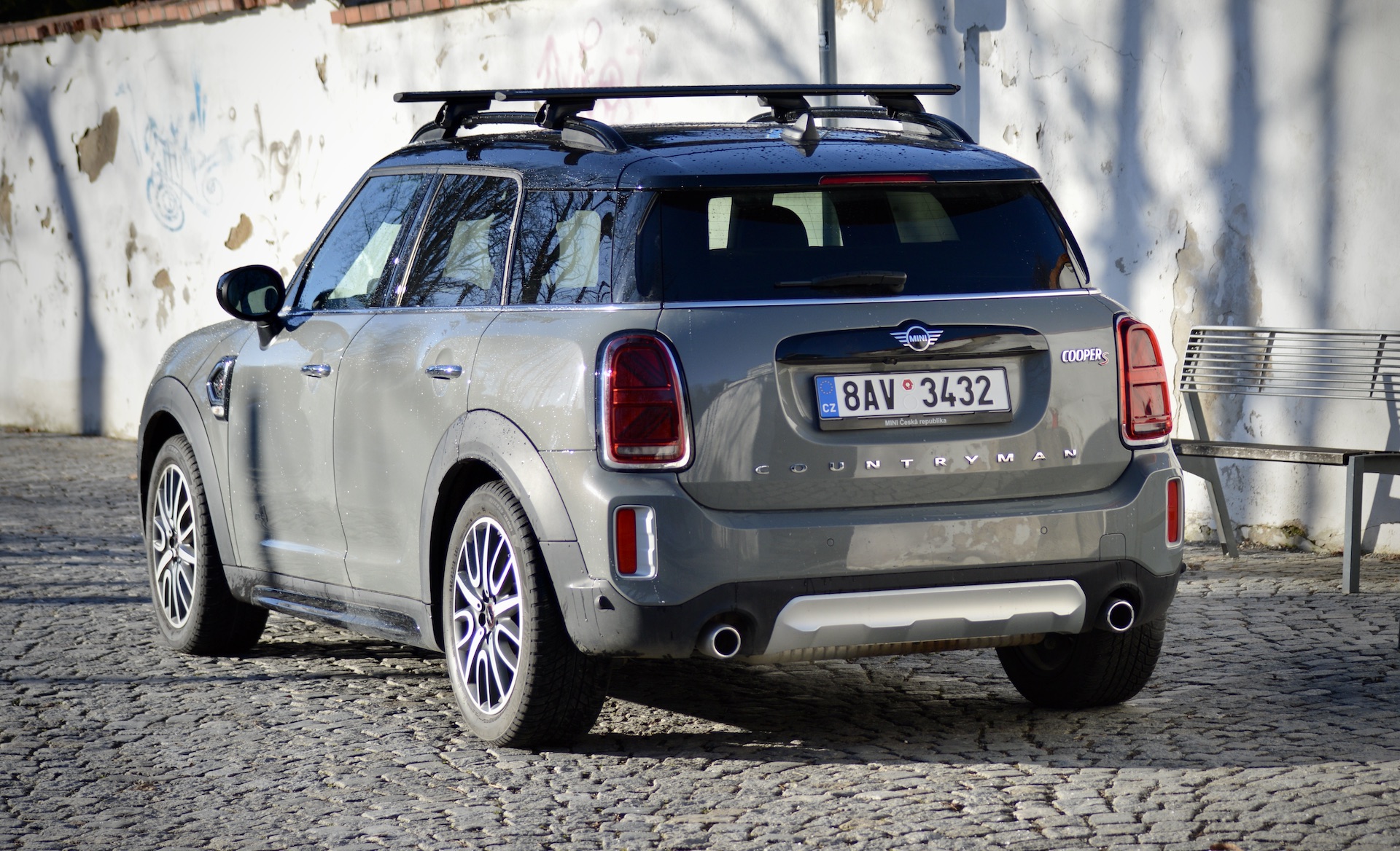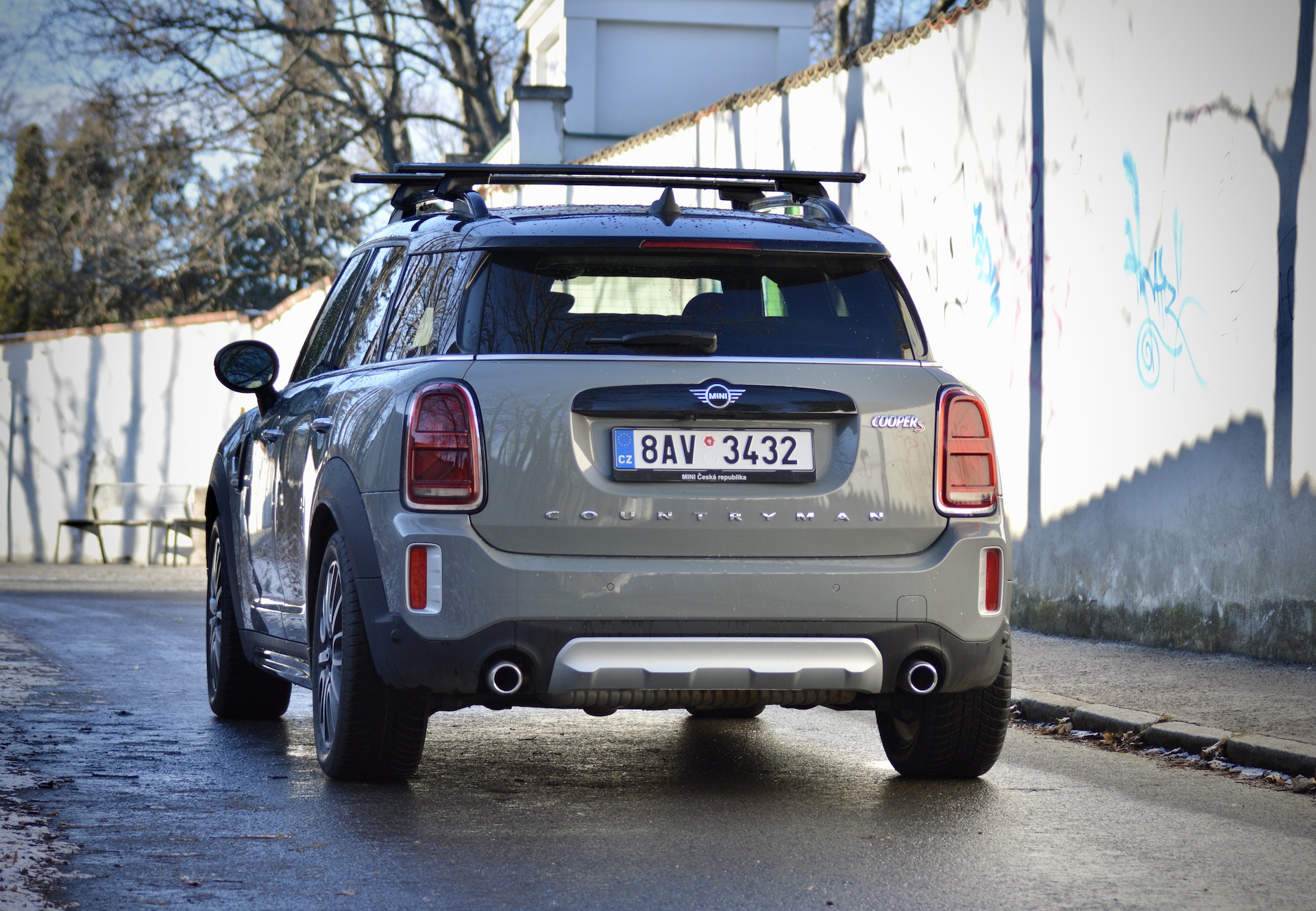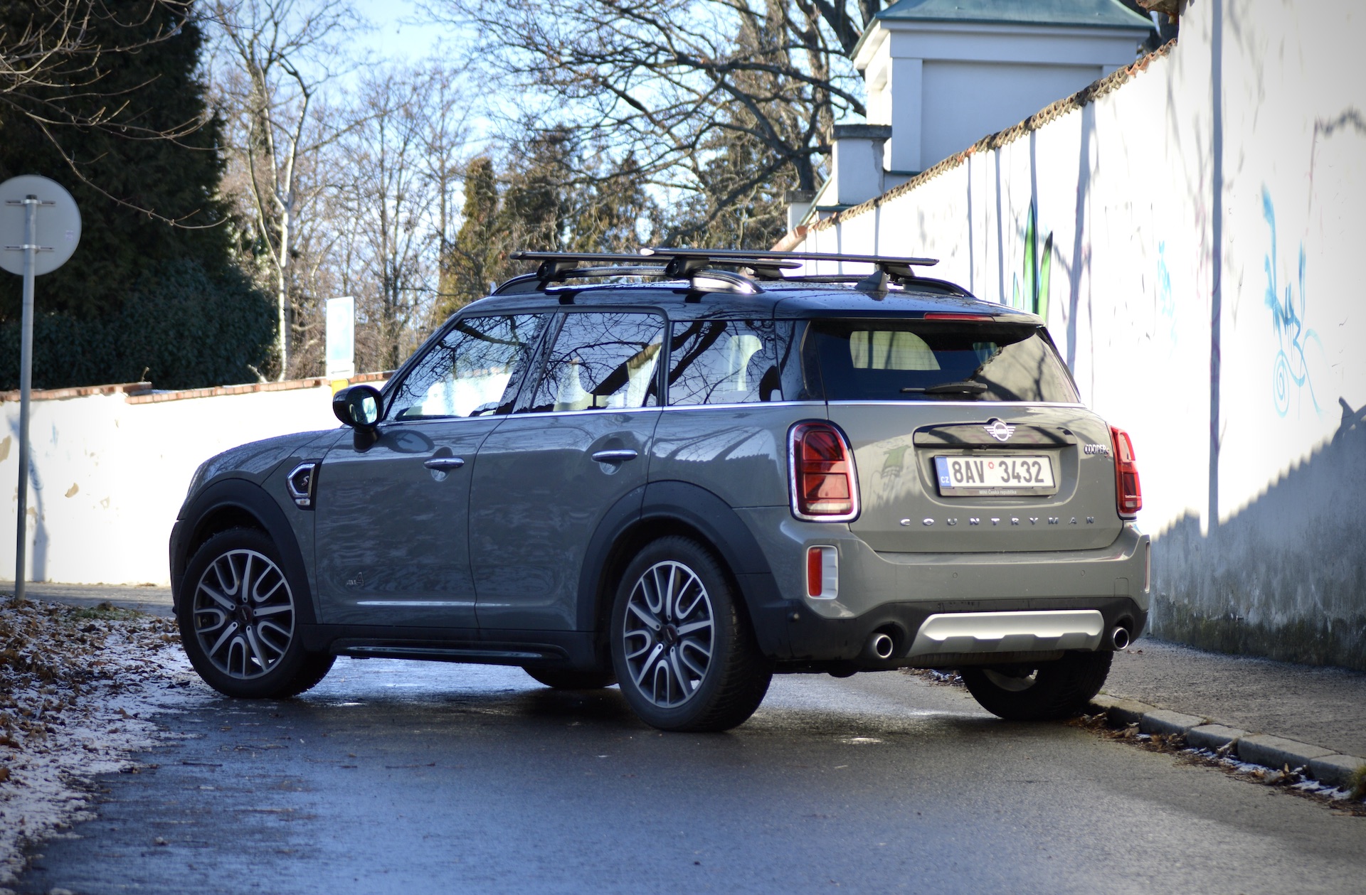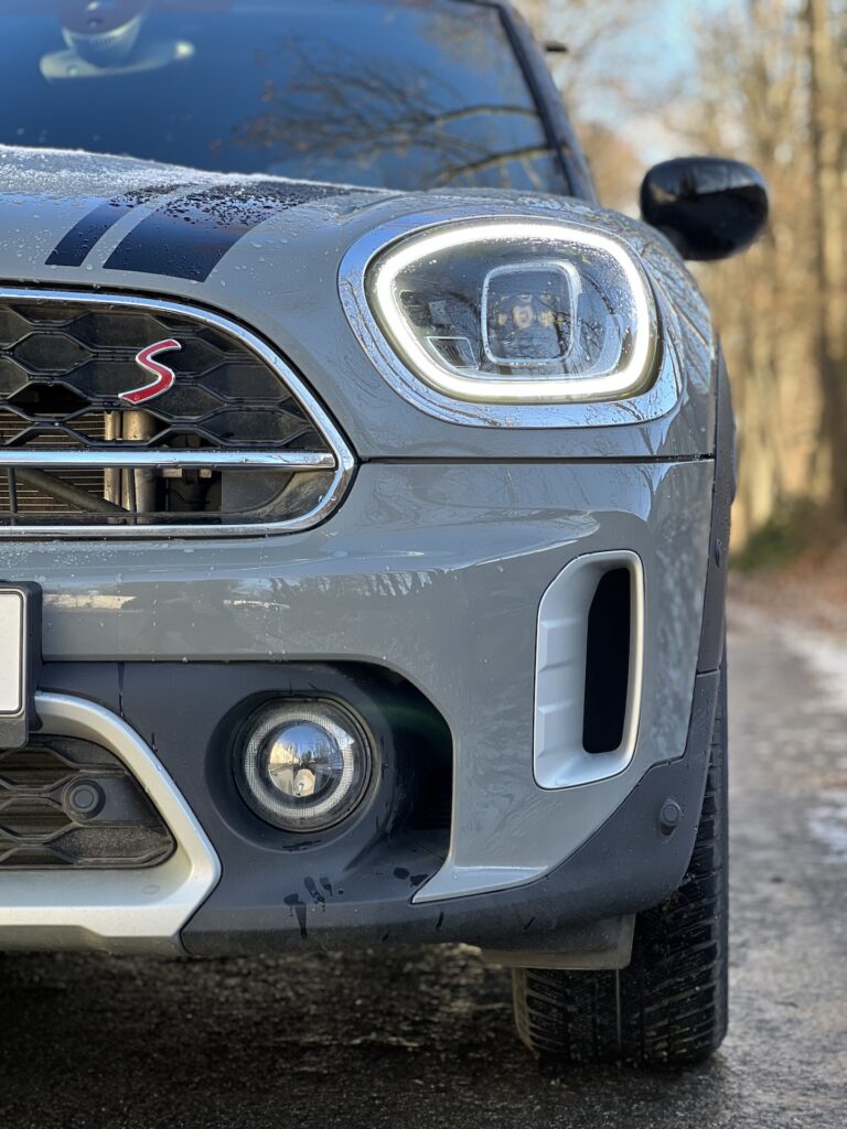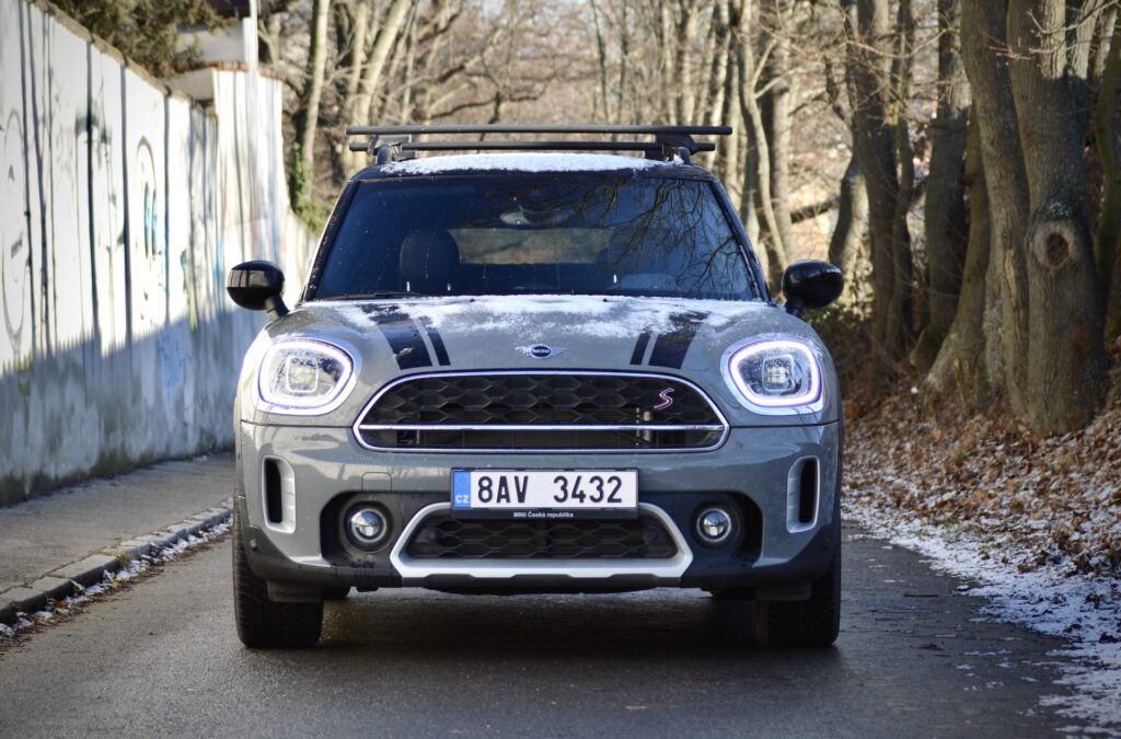 Velmi nerad bych se opakoval a pevně doufám, že už jsem to někde nenapsal, ale Mini je takové Porsche 911 mezi běžnějšími vozy. Myslím tím Mini jako značku a především klasické modely. Coutryman je samozřejmě vozem jiné kategorie, ale co se vnějšího vzhledu týká, do rodiny Mini patří na první pohled a těžko si ho spletete s autem jiné značky. Countryman je takovou Crossover/SUV verzí klasického Miníka. Díky tomu nabídne vyšší stavbu karoserie, pět dveří a taktéž slušnou míru praktičnosti pro vaši rodinku. Na testovaném voze mne osobně nejvíc zaujala přední část. Tak typická kulatá světla zde mají trochu zploštělý tvar, stále však jasně definují příslušnost svému „kmenu“. Na dnešní poměry potěší relativně malá mřížka chladiče, lemovaná chromovanou linkou, která ji zároveň rozděluje na dvě části. Ta vyšší s emblémem S, značícím druhou nejsilnější dostupnou motorizaci, je vyplněna černými mnohoúhelníky naprosto atypického tvaru. Je to něco, čeho si na první pohled možná ani nevšimnete, ale mě tento tvar zaujal i díky tomu, že se opět vyskytuje ve spodní části nárazníku. Mezi těmito dvěma nádechy je ještě relativně tenká linka bez složitých tvarů a právě tam dodává takový „naštvaný“ feeling. Přední část u tohoto sportovně konfigurovaného modelu vyniká svou „agresivitou“ a poměrně složitým tvarováním včetně průduchů na bocích nárazníku, které vedou vzduch přímo k brzdám. To je nejen pěkné, ale také funkční.