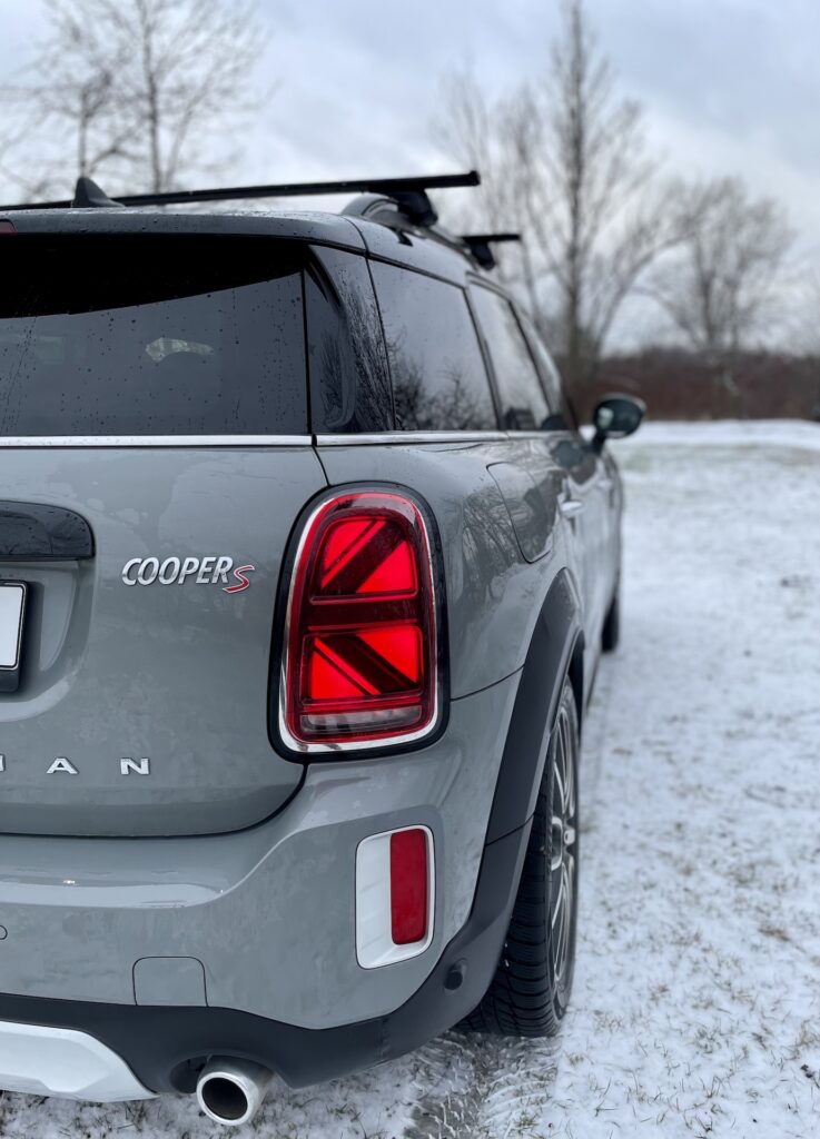 Zadní část vozu, podobně jako ta přední, se v drží originálu a tradic. Pokud Countrymana potkáte na silnici a uvidíte ho napřed před sebou, můžete mít relativně problém tento konkrétní model správně zařadit. Samozřejmě je celkově trochu větší, než jeho menší bráškové, ale ten tvar, ten natolik odpovídá zbytku modelové řady, že bez nápisu Countryman přes celou šířku víka kufru bych si ho snad spletl sám. V každém případě potěší dvě koncovky výfuku, elegantní kulaté tvary a moje oko především zbožňuje grafiku koncových světel. Jde prakticky o britskou vlajku na výšku, rozdělenou „na půl“ a pro mě osobně je to ten nejkrásnější detail při pohledu z venku. I když už je Mini přes 20 let „německé“, hlásí se ke svému původu a to jak „konceptem“, tak právě takovými detaily. Mám moderní Mini rád právě za to, že se úplně neodvrátilo od svých kořenů, právě jako třeba ta na začátku zmíněná 911.