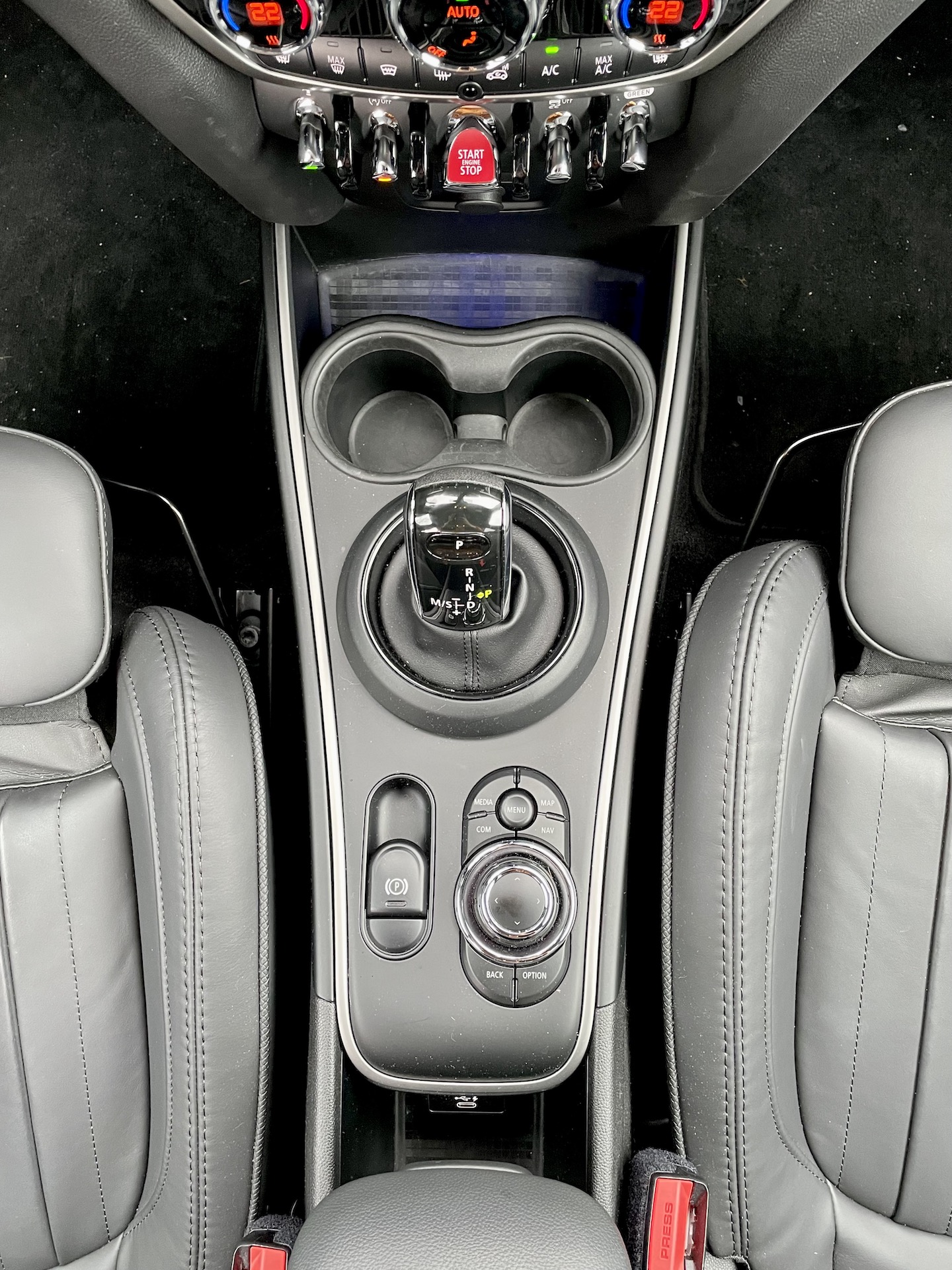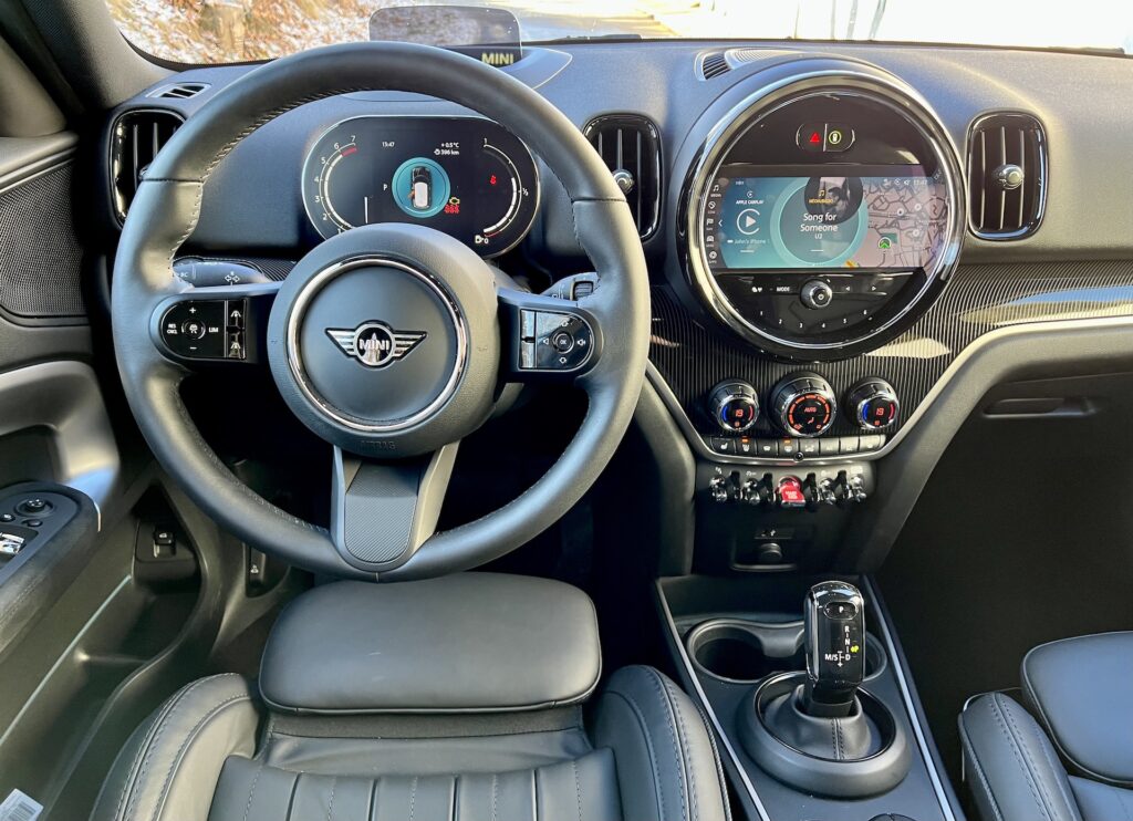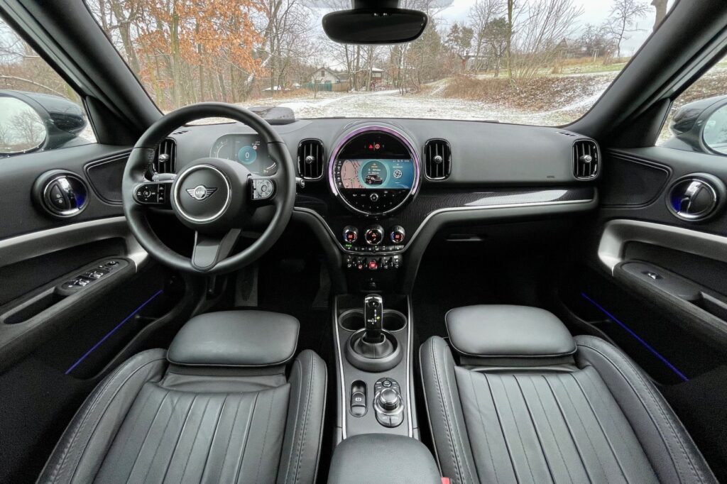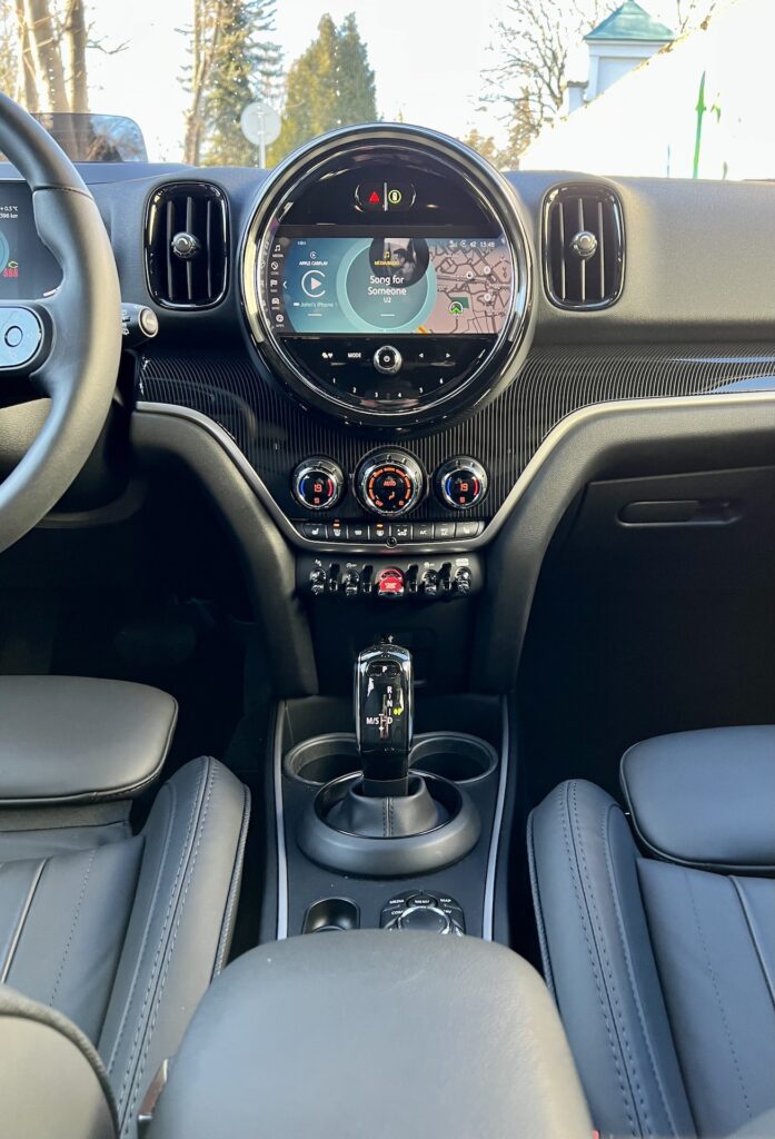 Upřímně, původní Mini se uvnitř hledá relativně těžko. Doba se nezadržitelně žene kupředu. I přes to tady ale jakási paralela přetrvává – ať už původní vůz nebo jeho „moderní“ reinkarnace ze začátku druhého tisíciletí. Mluvím o středové kapličce, která neobsahuje rychloměr, ale dotykový multimediální systém. Ten nabízí veškerou současnou konektivitu a v neposlední řadě i informace o voze. Díky bohu zde zůstalo dostatek funkčních tlačítek, například ovládání klimatizace, jízdních režimů, vyhřívání sedaček a dalších milých drobností. Dotykové displeje mi nevadí, ale funkční „zkratky“ vítám. Navíc všechny ovládací prvky odpovídají prémiovému segmentu, do kterého Mini jednoduše patří. V podstatě speciálně u ovládacích prvků je Mini nadprůměrem svého segmentu a v jednotlivých detailech překonává i věhlasnější značky. Oni jsou totiž jednotlivé přepínače „kovové“. Nebo možná nejsou, ale jejich finální povrch a zpracování je tak precizní, že působí nesmrtelným dojmem a díky jejich „páčkovitému“ ovládání připomínají kokpit letadla.