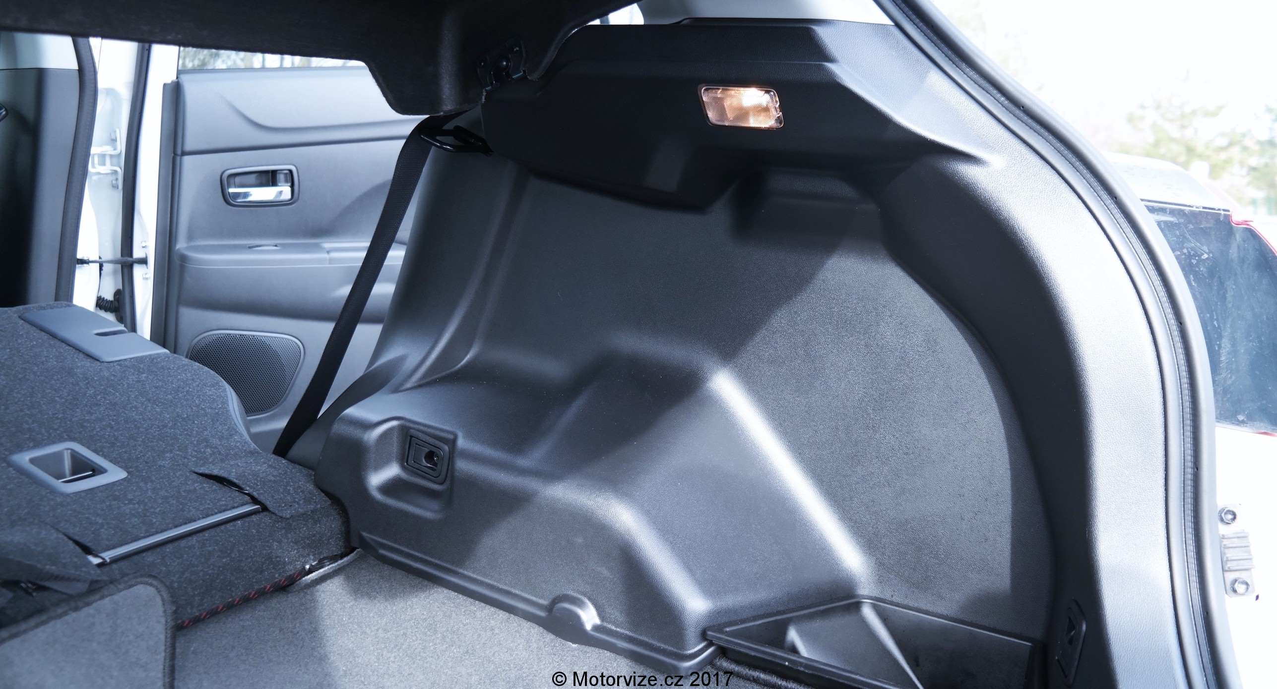Zde naváži na předchozí kapitolu. To, co mě v tomto autě bylo příjemné, byla ergonomie. Ať už za volantem, na pozici řidiče, kde jsem měl vše příjemně na dosah – polohování volantu, sedačky a řadičky, tak i například vzadu, kde jsem si užíval dostatek místa pro hlavu i nohy. Ideální byla pro mě osobně i výška oken a výhled z nich. Co až tak ideální nebylo a po čem jsem si postesknul, byla absence dostatečně velkých dveřových kapes na láhev vepředu, respektive jejich totální absence u spolujezdců vzadu. Ty vpředu pojmou maximálně půl a tři/čtvrtě litrovou láhev. Spolucestující vzadu se musí spokojit pouze s drobnými držáky, dostupnými jen po vyklopení středové loketní opěrky. Pokud jedu v SUV (respektive v naší specifikaci spíše v crossoveru), čekal bych větší variabilitu a maximální praktičnost. Pro leckoho může toto být zanedbatelné. Já bych však při výběru takového druhu auta tento detail nepřehlížel. Každopádně, co se týče prostornosti jako takové, platí pro ASX „rčení“: jak zvenku působí poměrně drobně, tak uvnitř prostoru nabídne velkoryse. Líbily se mi obzvlášť některé praktické detaily, které bych stěží hledal u jiných automobilek. Například clipy na tužky či prostor pro uložení balíčku s kapesníky (viz galerie), aneb vše má své místo a svůj pořádek.
