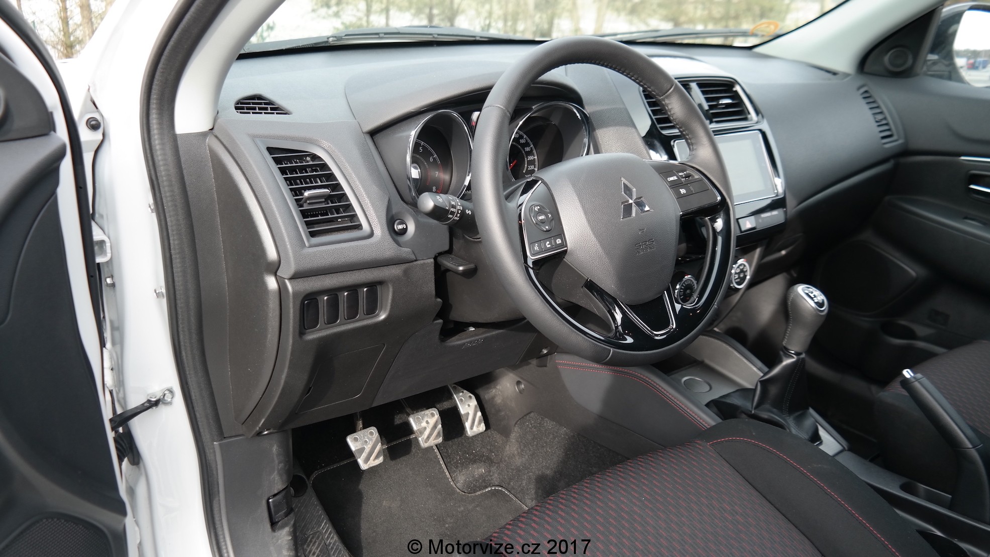 V mnou testované verzi byl uložen řadový atmosferický benzinový čtyřválec MIVEC – jednašestka, spřažen s 5-ti stupňovým manuálem. Klasická předokolka. Maximální točivý moment se dostavuje až při vyšších otáčkách, konkrétně ve 4 tisících. To se projevuje (ne)blaze i na spotřebě a pocitu z jízdy. O tom však až o kapitolu níže. Maximální výkon této benzínové jednotky pak činí při cca 6000 ot/min nevelkých 86 kW (117 koní). Naše auto bylo ve verzi Intense+, což znamená, že nabídne (oproti verzím Inform a Invite+) větší ráfky kol (18 palců), o něco větší šířku karoserie (1810 mm) i malinko větší hmotnost (1360 kg).
