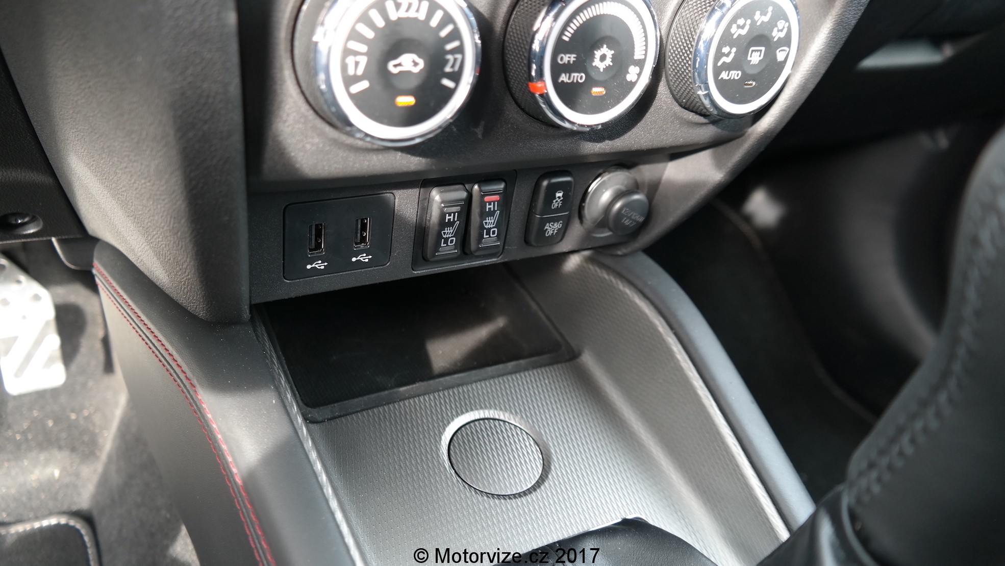 V interiéru nastalo změn snad ještě méně. Kromě přeskupení tlačítek pro vyhřívání předních sedadel ve spodu středového panelu (které bylo jistě ovlivněno nyní i přidáním dvou USB portů) a kromě toho, že již zcela vymizela fyzická tlačítka a regulátory z palubního displeje na vrchu středové konzole, je interiér více méně totožný s tím z loňského roku. Abych byl férový, ještě se hýbalo s úložnými prostory a přihrádkami mezi předními sedadly. Tak či tak, po usednutí za volant nebo na místo spolujezdce si budete připadat jako v plastovém království. Jen vrchní, nejvíce viditelné plastové díly jsou trochu měkčené a působí o něco kvalitněji…