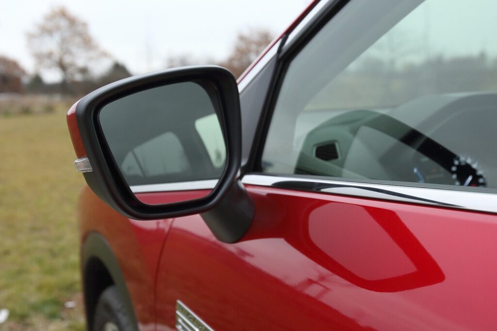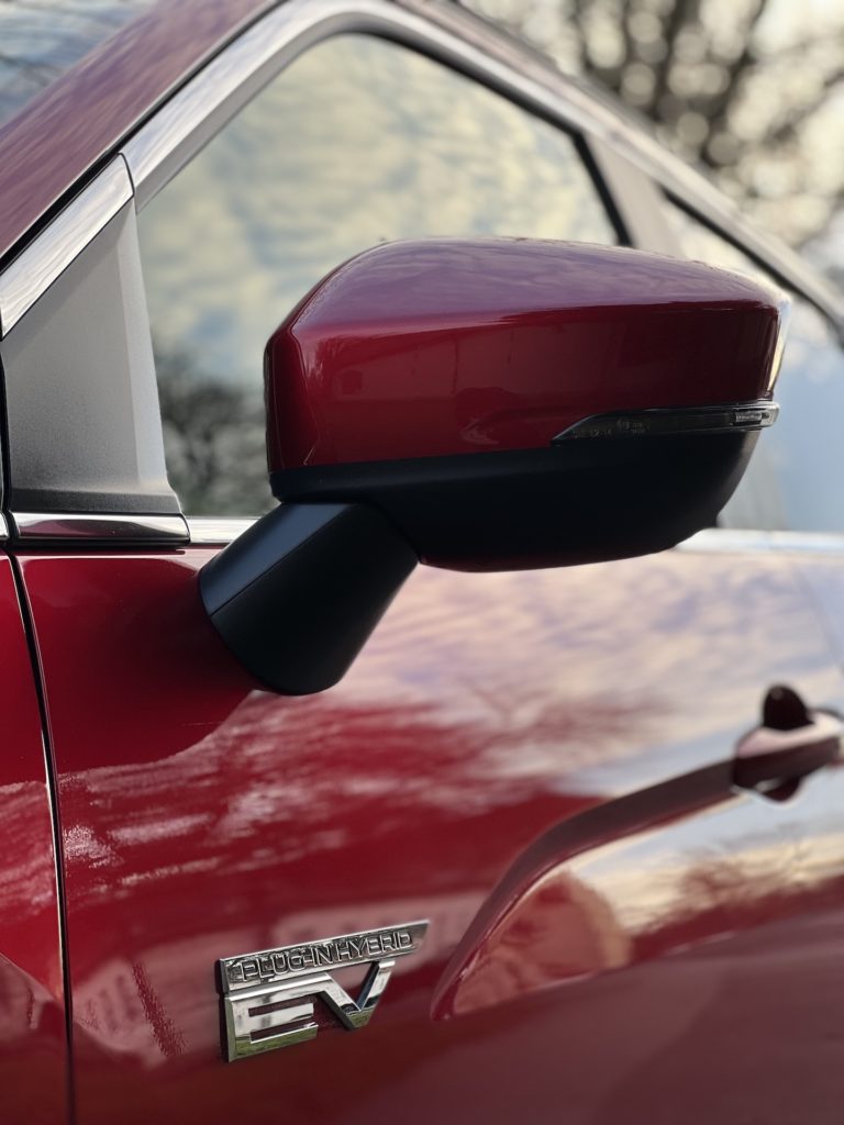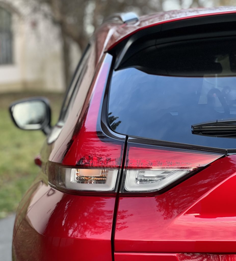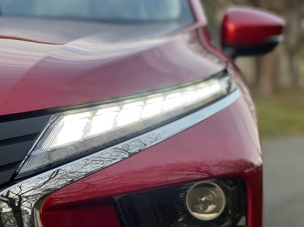 Na první pohled si u námi testovaného Eclipse Cross můžete všimnout krásné červené metalízy, které u Mitsubishi říkají Diamond Red. Vůz máme v „základní“ výbavě Intense+, která obsahuje téměř vše, co k dnešnímu životu v autě člověk potřebujete. Ve zkratce mohu vypsat: LED denní svícení, vyhřívaní sedadel i volantu, automatickou klimatizaci, bezklíčové odemykání a startování, zadní kameru a plnou nálož asistenčních systémů. Na první pohled je ještě zřetelné zvětšení vozu. Opravdu je Eclipse Cross po faceliftu delší o cca 14 cm, kdy jde o 10 cm pro zadní převis a 4 cm na přední. Díky tomu se trochu zvětšil i zavazadlový prostor, a to konkrétně na 471 l. Prodloužená karoserie upravená podle designové koncepce ‚Daring Grace‘ zaujme přepracovanou přední i zadní partií s elegantním a vytříbeným vzhledem, stejně tak jako vylepšenou dynamikou SUV při pohledu zpředu i zezadu. A co je zezadu také hodně důležité – změnil se tvar zadních dveří, kdy už zadní okno není rozdělené, a tak Eclipse nabídne i lepší výhled vzad. Pro Eclipse Cross charakteristická zadní světla s trojrozměrným efektem jsou nyní o něco výše, a tudíž i nápadnější a zároveň viditelnější z větší dálky. Design přídě završuje modernizované uspořádání světel s ostřejším sportovním vzhledem. Charakter SUV potvrzují ochranné kryty pod předním i zadním nárazníkem. Vyzdvihnout musím alespoň sám za sebe až dodávkově velká zpětná zrcátka. Úplně radost se do nich koukat.