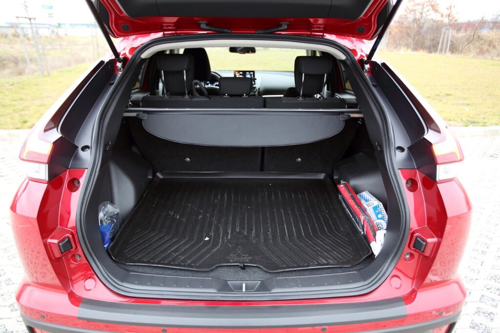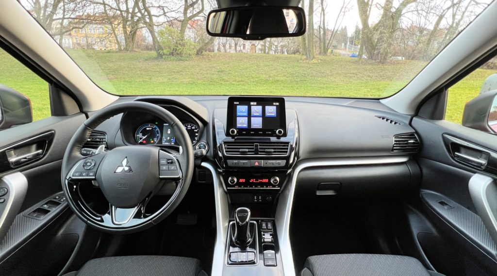 Právě tady si dovolím opět krátké poohlédnutí k roku 1999, kdy mi interiér Mitsubishi Galant přišel naprosto úžasný a snový. Teď je ovšem konec roku 2021 a už to taková bomba není. Interiér Eclipse Cross není vůbec ošklivý nebo nefunkční, ale je řekněme typicky Japonský. Volant nenadchne ani neurazí, sedadla jsou příjemná, ale ne špičková, a jakožto dekor nechybí ani „plastový karbon.“ Zpět k věci: moc nerozumím tomu. proč se Japonci ještě nenaučili ovládat palubní počítač třeba na volantu, ale stále si prosazují kolíček u kapličky. Naopak některá další opravdová tlačítka ocenit musím, vše se totiž nemusí ovládat pomocí dotykové obrazovky. Ne, že by tu žádná nebyla, vprostřed najdeme 8“ dotykový displej audiosystému, který je skvěle čitelný, grafiku má pěknou, ovládání funkční, a hlavně má rychlé reakce na dotyk. Poslední věc k interiéru a dostaneme se k technice vozu. Je velká škoda, že nový Eclipse Cross přisel o posuvnou zadní lavici. Jde hlavně o to, že i přes nárůst objemu zavazadlového prostoru nejde o vyloženě přebytek litrů, navíc musíte počítat s tím, že pořád s sebou vozíte nabíjecí kabely.
