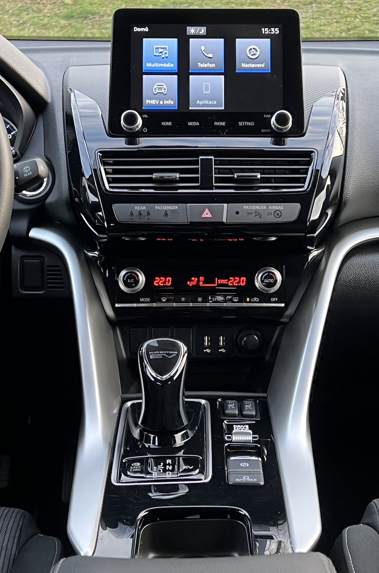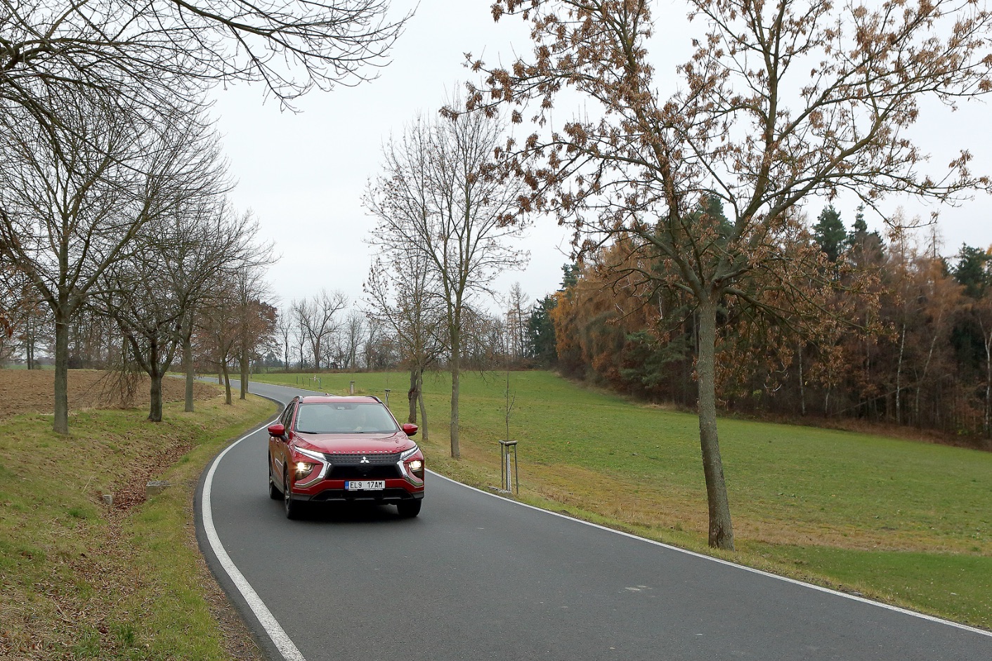 Startujeme a vyrážíme vstříc novým zážitkům. Start, jak už jsme zvyklí, nelze vůbec pocítit, jako by se nic nedělo. Po sešlápnutí plynu se naprosto plynule rozjíždíme. Není slyšet vůbec nic, jenom slabé bzučení. První dojem je perfektní, cítím krásně tuhý podvozek, nízké těžiště díky bateriím, a i na typických „českých“ silnicích auto filtruje nerovnosti. Jízda přes různé výmoly nebo zpomalovací prahy je jak na obláčku. To se opravdu povedlo. Po většinu cesty se ani spalovací motor nezapne. Když už na něj dojde, přeci jen je trochu slyšet, ale není to nic, co by vás snad jenom trochu rušilo z klidné jízdy. Elektřinu můžete také rekuperovat. Síla rekuperace lze nastavit v 6 stupních tedy od B0 po B5, kdy v režimu B0 v podstatě plachtíme a v B5 se vůz dá ovládat pouze jedním, a to plynovým pedálem. Jakmile na něj přestanete šlapat, Eclipse výrazně brzdí. Tyto stupně ovládáme pomocí páček pod volantem v podobné logice jako u přeřazování automatické převodovky u jiných vozů. Páčky jsou velmi příjemné na dotek, poctivě hliníkové, žádný plast. Vše krásně funguje přesně do doby, než klesne kapacita baterie pod 30 %, nebo dokud nepřekročíte rychlost 135 km/h. V tomto případě se rozběhne benzínový motor, jenž pohání přední kola a stále dobíjí baterie. Zde je znát pouze 72 kW čtyřválcového motoru, který má přeci jenom s téměř dvoutunovým vozem trochu problémy. Po zastavení a připojení vozu na rychlonabíječku, které naštěstí jsou již dnes standardem u každého většího nákupního areálu, můžete Eclipse nabít na 80 % zhruba za 25 minut. To je mimochodem velká přednost řešení Mitsubishi. Jediný, kdo u plug-in hybridu nabízí rychlonabíjení typu DC, je snad Mercedes-Benz, a to jsme o jednu až dvě třídy jinde. Snad jen škoda, že se Mitsubishi stále spoléhá na v Evropě dnes už postupně opouštěný konektor CHAdeMO. Po Praze se pak dá za pomocí častého dobíjení jezdit se spotřebou 17-19 kWh na 100 km a za 0 l benzínu. Pokud ovšem nebudete nabíjet a spolehnete se na vyrábění elektřiny spalovacím motorem, můžete počítat se spotřebou i 10 l na 100 km, a to úplně pozitivně hodnotit nejde. Má spotřeba byla někde kolem 14 kWh/100 km a 3 l benzínu na 100 km, což už určitý smysl dává. Zkrátka a jednoduše v tomto případě platí zcela na 100 %, že čím více dobíjíte, tím zajímavější (ekonomičtější a ekologičtější) provoz Eclipse je. Škoda jen, že to dálniční tempo (předpisových 130 km/h) není žádnou hitparádou, uměl bych si představit o trochu vyšší (akustický) komfort a nižší spotřebu. To je ale zapříčiněno primárně tím, že elektřina už v takových chvílích příliš pomoct nedokáže. Jako vhodné prostředí pro Eclipse tak vidím primárně město a jeho okolí, občasné výlety po dálnici samozřejmě zvládne. Pro více takových cest třeba i s vyšší vzdáleností do cíle by přeci jen byla stále lepší volbou standardní benzínová jednotka, která ale v rámci modernizace z nabídky zcela zmizela.