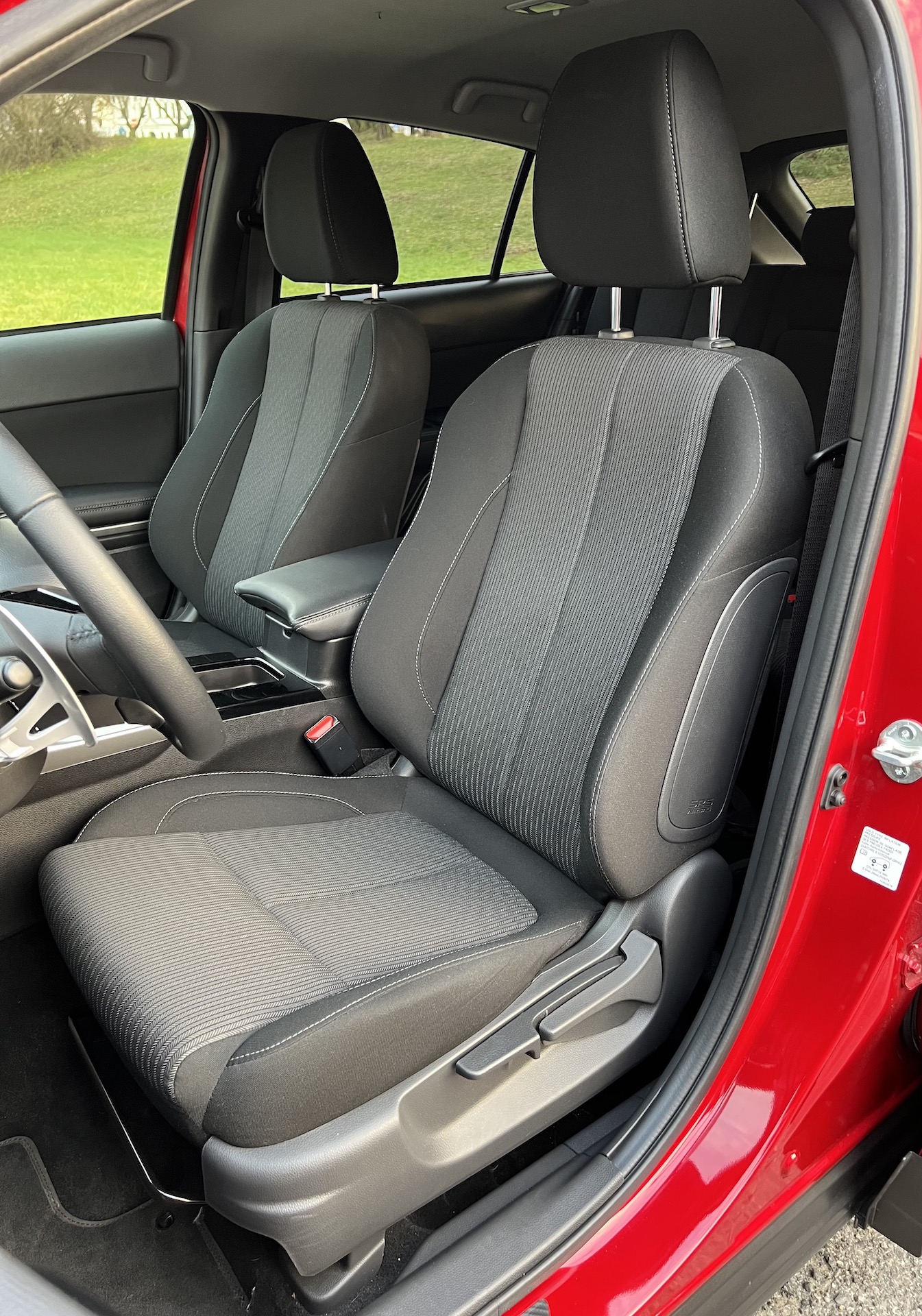Na první pohled si u námi testovaného Eclipse Cross můžete všimnout krásné červené metalízy, které u Mitsubishi říkají Diamond Red. Vůz máme v „základní“ výbavě Intense+, která obsahuje téměř vše, co k dnešnímu životu v autě člověk potřebujete. Ve zkratce mohu vypsat: LED denní svícení, vyhřívaní sedadel i volantu, automatickou klimatizaci, bezklíčové odemykání a startování, zadní kameru a plnou nálož asistenčních systémů. Na první pohled je ještě zřetelné zvětšení vozu. Opravdu je Eclipse Cross po faceliftu delší o cca 14 cm, kdy jde o 10 cm pro zadní převis a 4 cm na přední. Díky tomu se trochu zvětšil i zavazadlový prostor, a to konkrétně na 471 l. Prodloužená karoserie upravená podle designové koncepce ‚Daring Grace‘ zaujme přepracovanou přední i zadní partií s elegantním a vytříbeným vzhledem, stejně tak jako vylepšenou dynamikou SUV při pohledu zpředu i zezadu. A co je zezadu také hodně důležité – změnil se tvar zadních dveří, kdy už zadní okno není rozdělené, a tak Eclipse nabídne i lepší výhled vzad. Pro Eclipse Cross charakteristická zadní světla s trojrozměrným efektem jsou nyní o něco výše, a tudíž i nápadnější a zároveň viditelnější z větší dálky. Design přídě završuje modernizované uspořádání světel s ostřejším sportovním vzhledem. Charakter SUV potvrzují ochranné kryty pod předním i zadním nárazníkem. Vyzdvihnout musím alespoň sám za sebe až dodávkově velká zpětná zrcátka. Úplně radost se do nich koukat.