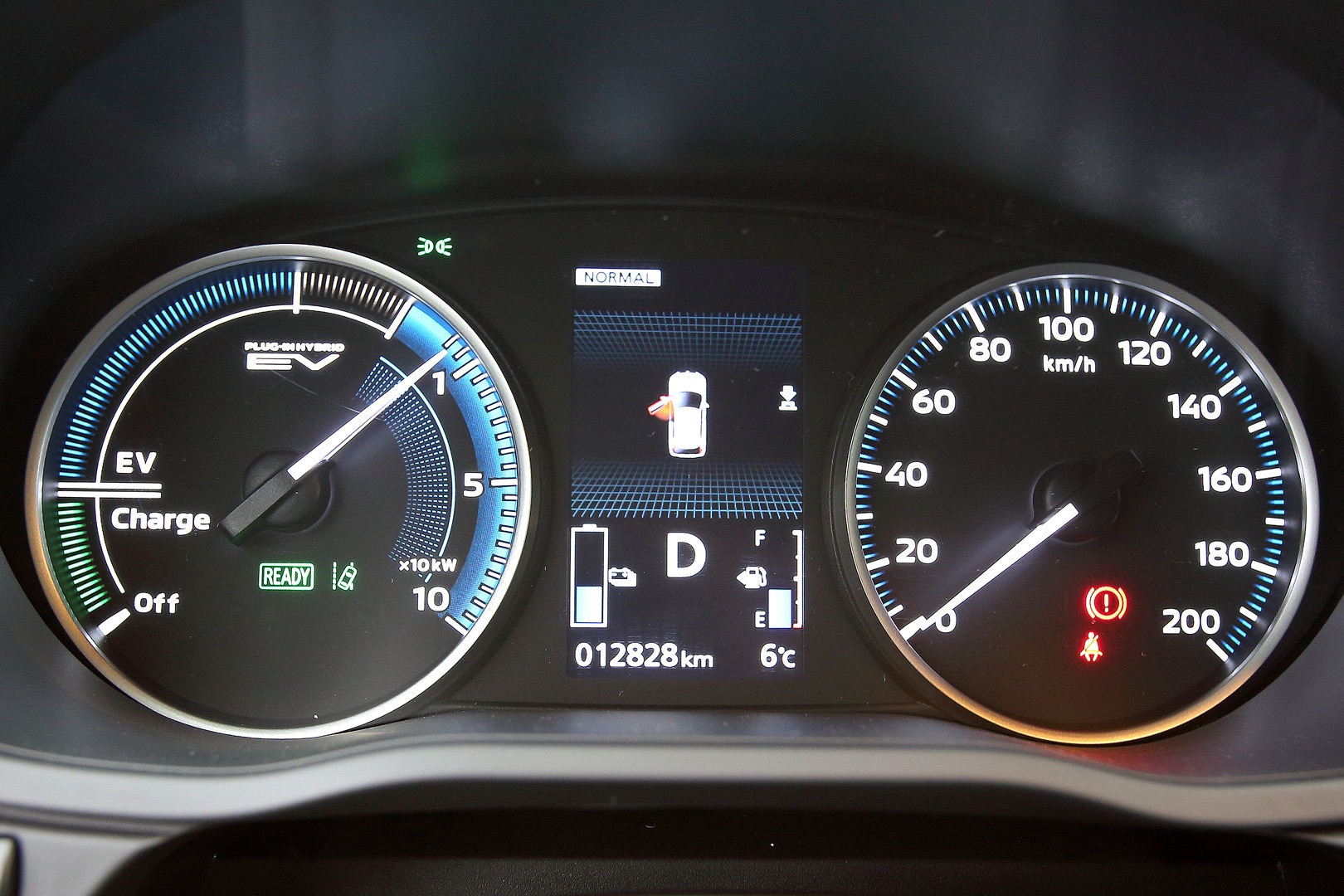 Začalo to před deseti lety s Mitsubishi Outlander, tehdy prvním opravdovým plug-in hybridem od Mitsubishi. Dnes se ovšem díky potřebě snižovat emise dávají tyto systémy i do čím dál menších vozů. Hybridní ústrojí vozu čítá celkem 3 motory – v Atkinsonově cyklu pracující atmosféricky plněný zážehový čtyřválec 2,4 litru a k tomu dva elektromotory. Ty jsou osazeny na přední a zadní nápravě. Co se týče výkonu, papírově se může zdát, že to není žádná sláva, ale svezení vás z této mylné představy vyvede. V číslech to tedy je 2,4 L benzín 72 kW a 193 Nm, přední elektromotor 60 kW a zadní 70 kW, maximální systémový výkon pak činí 138 kW. To je mimochodem o 17 kW a 18 Nm méně než ve zmiňovaném Outlenderu. Elektromotory čerpají energii z pod podlahou ukrytého akumulátoru s maximální kapacitou 13,8 kWh. Díky tomuto řešení se nachází poměrně nízko těžiště vozu a rozdělení váhy na nápravy je téměř ideální, tedy v poměru 55 % na přední a 45 % na zadní nápravu. S vozem můžete jezdit většinu času čistě na baterii – čistě elektrický režim. Dojezd na jedno nabití se pak pohybuje mezi 50 a 60 km, kdy opravdu není problém dojet do práce a zpět a nabíjet vždy přes noc. Musíte ovšem počítat s tím, že v tomto režimu si nezatopíte a trochu nelogicky je nutné oželet i tempomat, který je jinak do města naprosto ideálním partnerem. „Doplňkem“ jsou dva hybridní režimy – hybridní sériový, kdy benzínový agregát slouží jako dobíjení akumulátoru a poslední – hybridní paralelní, kdy zejména při vyšších rychlostech se benzínový motor připojí k předním kolům a pohání je napřímo. V tomto režimu může i dobíjet baterie, ty ovšem bude využívat pouze zadní elektromotor.