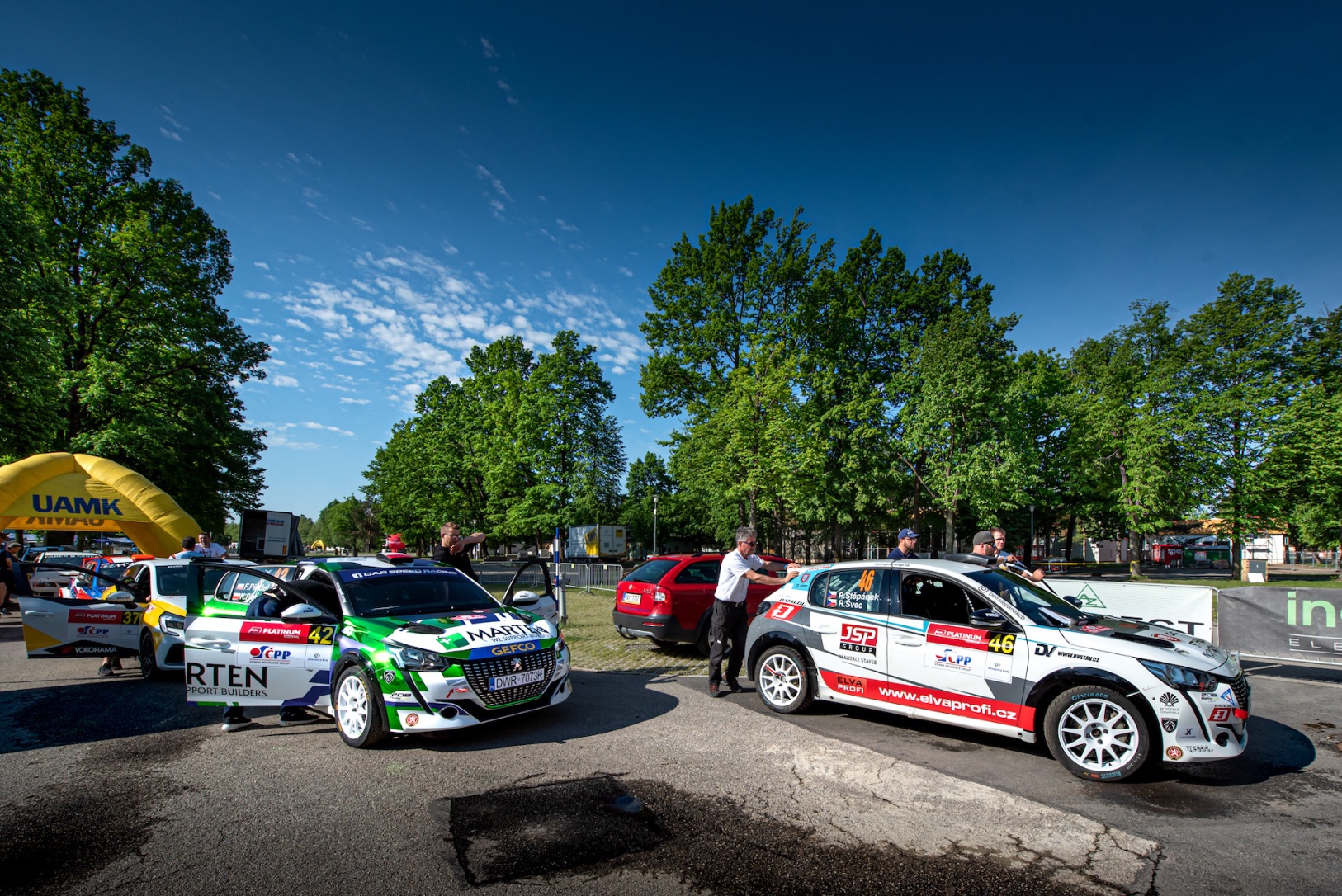 Poprvé v historii Peugeot Rally Cupu přesáhl počet vozů Peugeot 208 v provedení Rally4 původní specifikaci R2, a to v poměru 4:1. Největším favoritem byl pochopitelně Jaromír Tarabus, který společně s Danielem Trunkátem zvítězil na Šumavě. Letos poprvé se v rámci cupu představila také posádka David Štefan – Ondřej Vichtora. Tato dvojice se letos objeví pouze na několika domácích podnicích, protože se soustředí především na zahraniční starty. 49. Rallye Český Krumlov lákala na „kompaktní“ dvoudenní formát, zahrnující dvě etapy, 13 rychlostních zkoušek a celkem 155 ostrých kilometrů. Start byl naplánován na pátek krátce po 17:00 hodině, a to v prostředí divácky velmi atraktivní zkoušky přímo na českobudějovickém výstavišti. Shodou okolností právě zde byl naměřen teplotní rekord, kdy teplota ve stínu překročila 30 stupňů celsia. My a samozřejmě i závodníci jsme to podstatně pocítili. Teď už ale pojďme zpět k posádkám Peugeot Rally Cupu a k tomu, jak se jim o uplynulém víkendu dařilo.