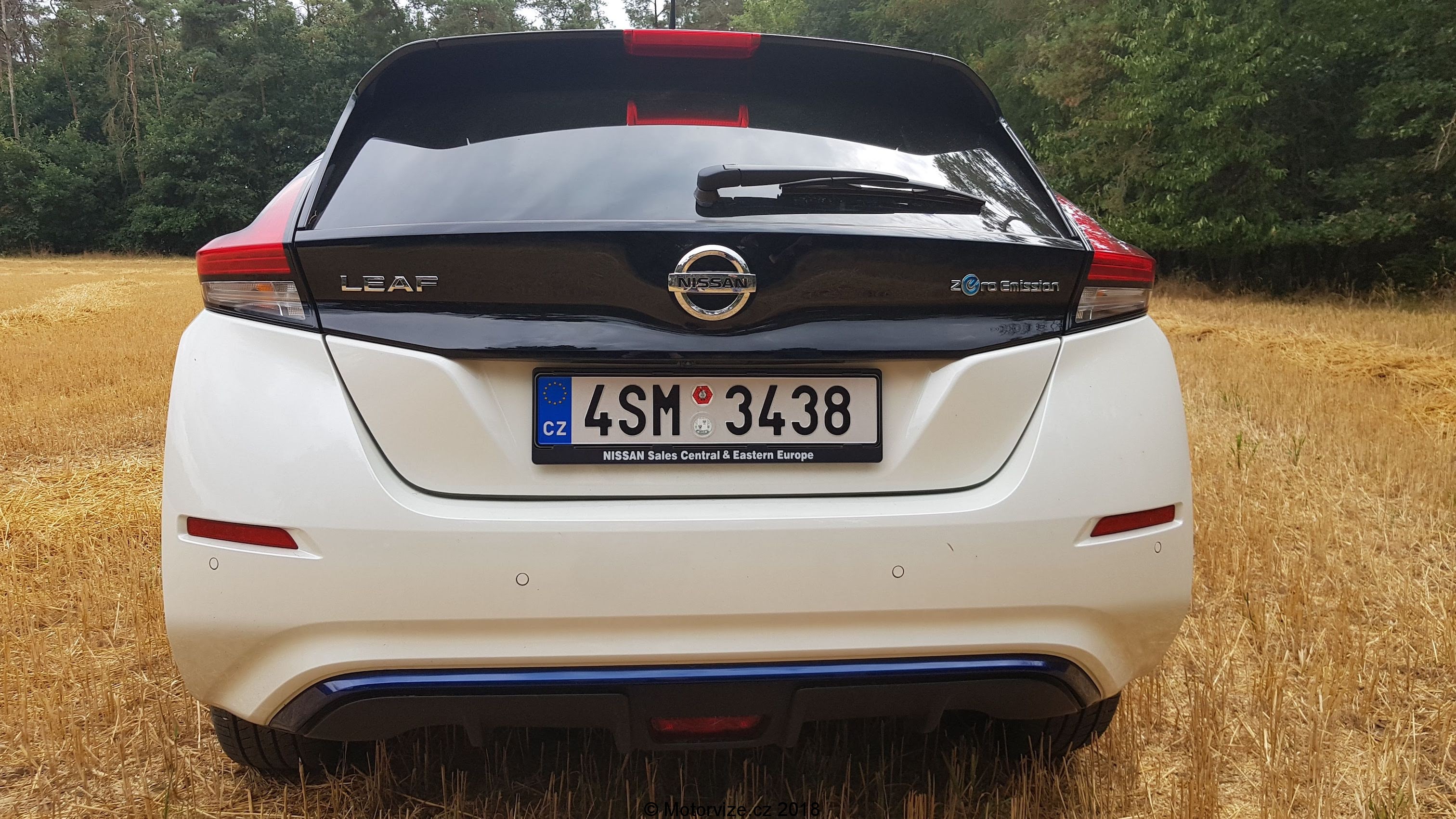 Nebudu se zde rozepisovat detailně o designu exteriéru, ten mi přijde jako by navazoval křivkami spíše na Nissan Pulsar, který již u nás není dostupný, než že by se nový Leaf snažil být evolucí první generace. Většina elektromobilů se snaží vystoupit z řady a být něčím extravagantní, druhá generace Leafa mi ale spíše připadá, že se chce schovat mezi ostatní hatchbacky se spalovacími motory. Jediné, co ho prozrazuje, je nápis zero emissions. Celkově musím říci, že barevná kombinace bílé karoserie s černou střechou a modrými doplňky vypadá na Leafu velmi pěkně. Mírně zvýšená stavba karoserie na mě působí, jako by měl být Leaf umístěn někde mezi crossoverem a hatchbackem. Od designu se ale postupně přesuneme i k praktickým vlastnostem auta, jak nový Leaf obstojí? Lze jej považovat za plnohodnotné druhé auto do rodiny?