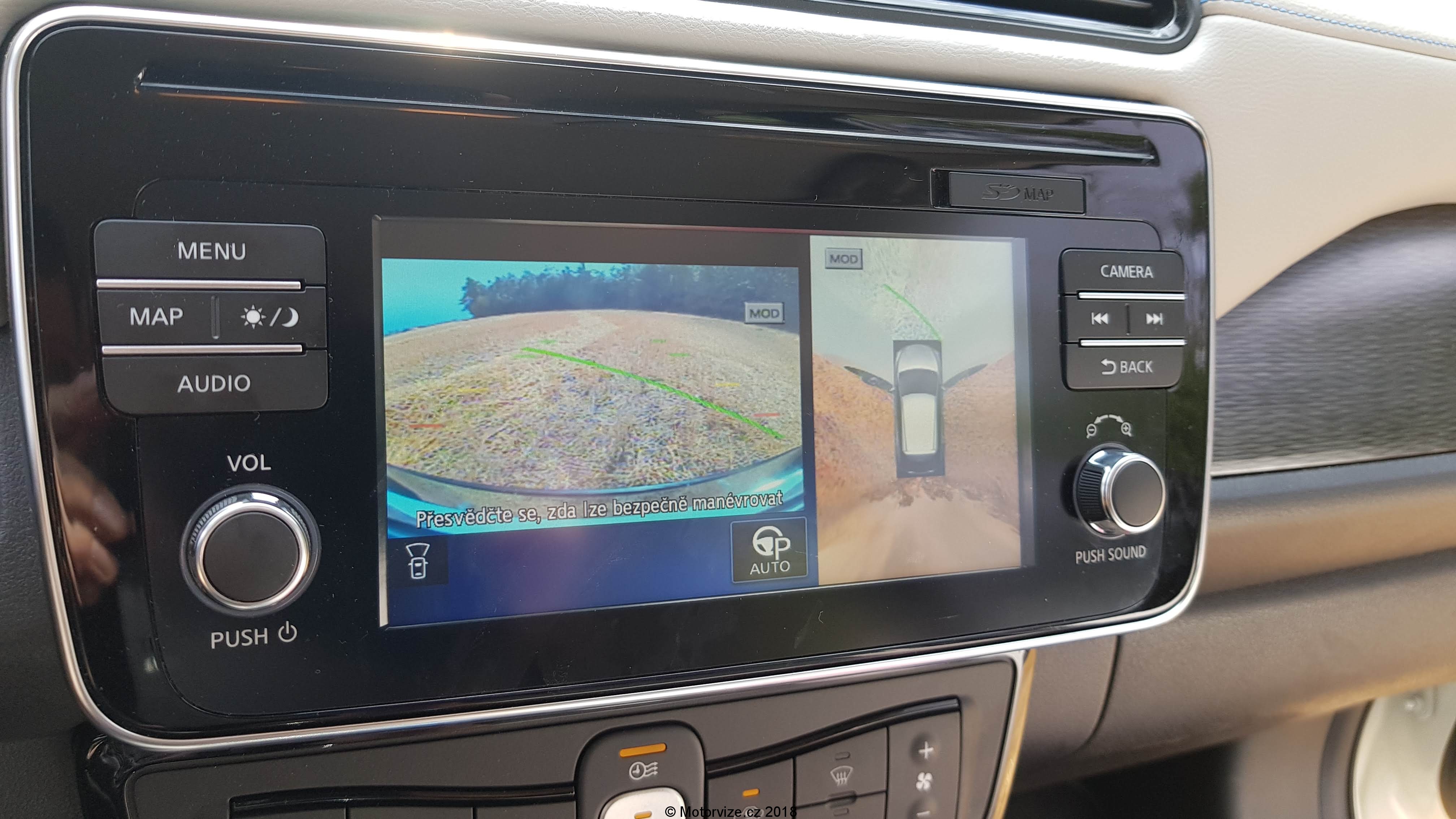 Vyzkoušel jsem si i výdobytky moderních technologií, které Leaf nabízí s označením ProPilot. Jde především o systém, který vás udrží v pruhu, sleduje mrtvé úhly a podle potřeby zrychluje, zpomaluje či úplně zastaví. Asistent jízdních pruhů fungoval velmi dobře, nezasahoval mi do řízení, ale při každém nechtěném přejetí pruhu zavibroval volant, což jsem ze začátku vnímal jako zajímavou funkci, ale velice brzy jsem začel zkoumat, jak to vypnout, protože jsem se častých a nepříjemných vibrací neuměl vyvarovat. Někdy dokonce nemuselo jít ani o reálnou čáru na silnici.Stačilo, aby na silnici byl jinak barevný pruh asfaltu a volant začal „vrčet“. Na dálnici ve zúžení, kde bylo několik čar přes sebe, jsem měl pocit, že chce volant vystoupit. Nakonec jsem asistenta opravdu vypnul, protože se mi nepodařilo najít volbu zapnutého „line asistenta“ bez vibrací. Leaf dokáže i sám parkovat. Pokročilý parkovací asistent umí dostat Leafa i do vcelku malé mezery (na rozdíl od jiných značek, co jsem zkoušel),je ale to dost zdlouhavé, protože po tom, co vůz najde místo, kam se vleze, musí řidič pomocí obdélníku a šipek vybrat na displeji přesné umístění, kam chce Leafa zaparkovat. Pokud je místo vybrané, stačí už jen držet tlačítko parkování a Leaf zajede na místo. Než se ale toto vše stane, průměrně zdatný řidič zaparkuje asi 2x rychleji.