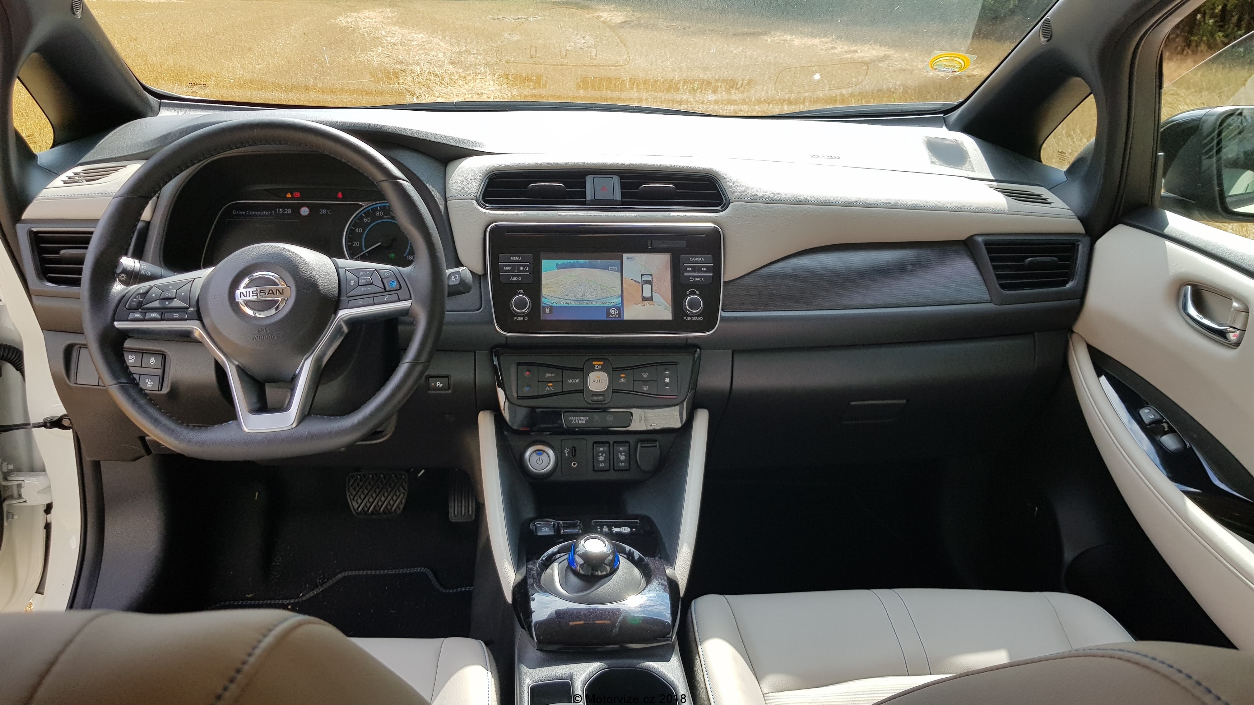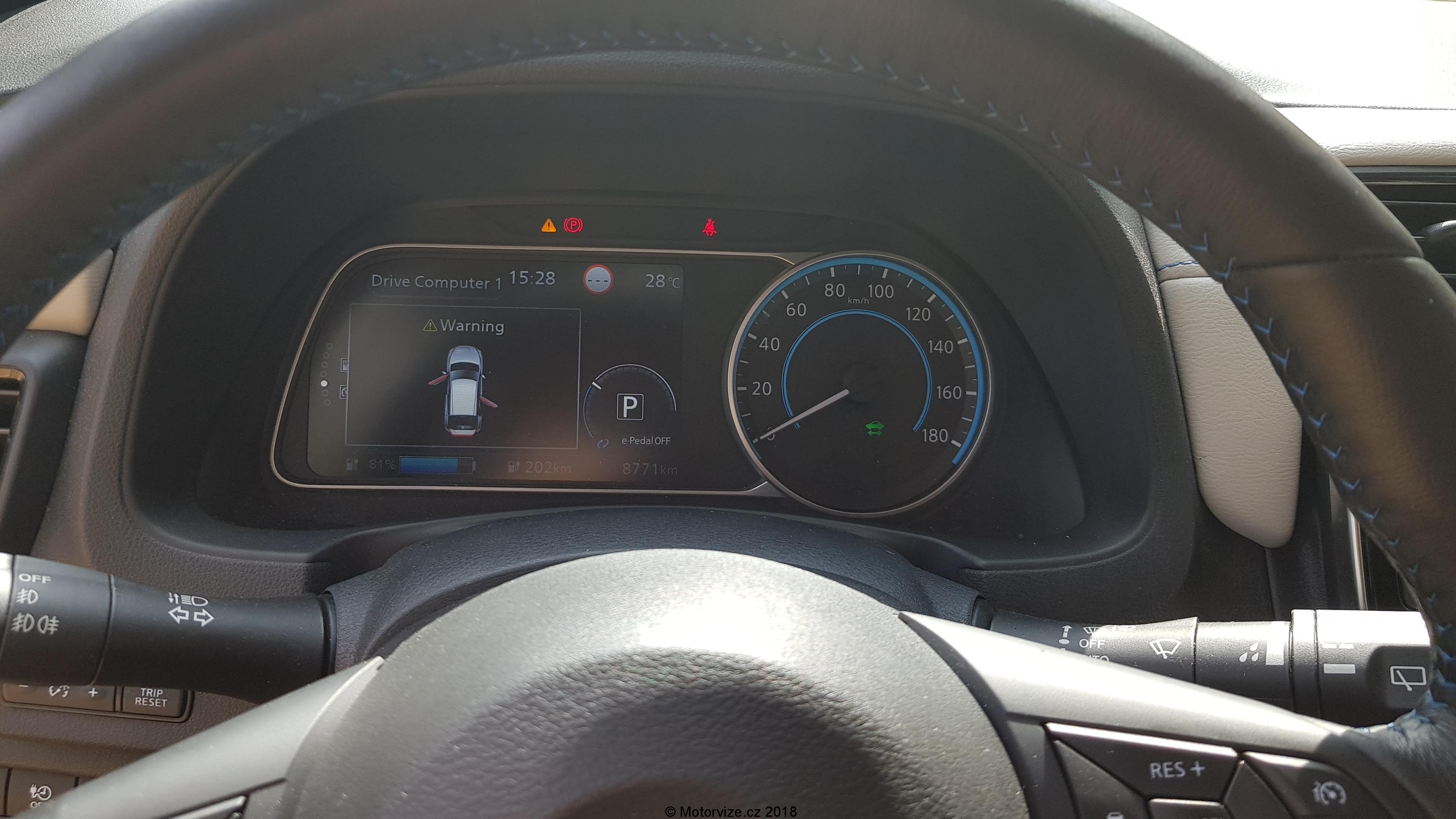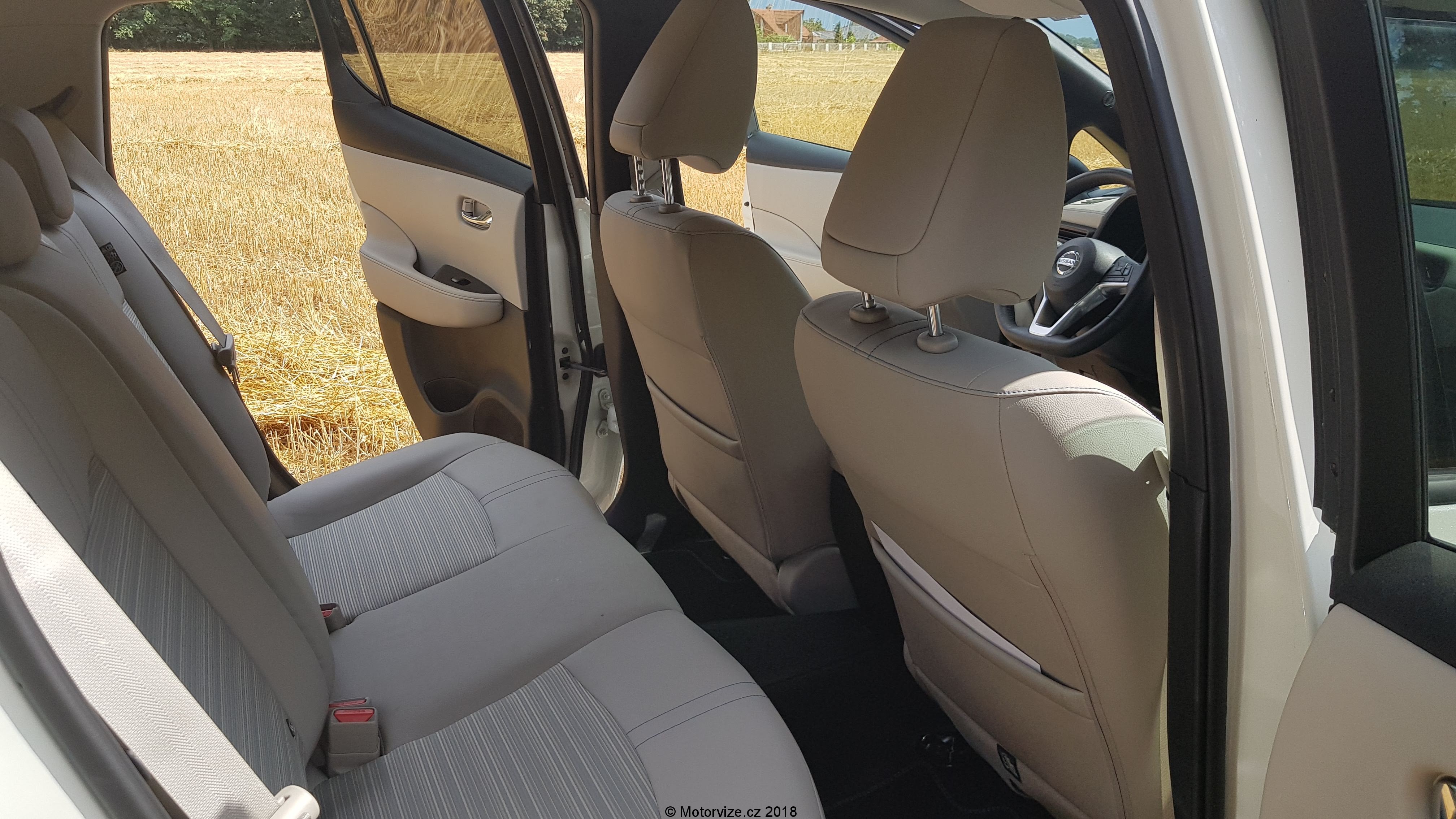 Interiér je prostorný a místa je všude více než dostatek, ne však pro všechny typy postav. Já jsem si bohužel nedokázal za celou dobu najít to správné místo za volantem a viník je právě onen zmíněný volant. Jeho podélné i výškové nastavení je poněkud omezené a pro moje potřeby nejde dostatečně vytáhnout a ani zvednout.To ve spojení s vyšším posazem znamená, že dlouháni musí být blíže k volantu a obouchávají si o něj kolena ze všech stran. Další drobný problém pro pohodlí řidiče bych viděl v umístění a velikosti pevné loketní opěrky. Ta je hodně krátká a umístěna příliš vzadu. Mě to vlastně vcelku vyhovovalo, ale naopak pro menší postavy, které si musí posunout sedadlo více dopředu, je opěrka až za jejich zády. Moje drobounká žena měla sice za volantem plné pohodlí, ale právě o loketku se opřít nemohla. Celkové zpracování interiéru je ve standardu Nissanu, vše dobře zpasováno. Převládají však tvrdší plasty, což bych u této cenové kategorie nečekal. Naopak mile překvapí koženě (koženkově) čalouněná palubní deska. Polokožená sedadla s mírně zvýšeným posazem mají dostatečné boční vedení a jsou pohodlná i na delší cesty. Potěší i isofix na sedadle spolujezdce. Hned jsem jej využil pro jednu dětskou sedačku. Na zadních sedadlech je také dostatek místa ve všech směrech, jen je snad hůře vidět dopředu přes mohutné hlavové opěrky. Pod kapličkou přístrojů je jeden analogový budík ukazující rychlost. Ostatní informace se zobrazují na velkém digitálním displeji. Ten je přesně dělaný pro takové hračičky, jako jsem já. Pomocí ovládání na volantu si řidič může zobrazit velké množství informací o aktuálním stavu Leafa. Různých obrazovek s informacemi je nepřeberné množství. I přes to, že je Leaf našlapaný technologiemi, co se ovládání týká, je konzervativní a zanechal nejen u ventilace, ale i u velké části informačního systému klasická tlačítka (děkuji Nissane). Ta jsou dostatečně velká a intuitivní. Zavazadlový prostor je vcelku velký, nicméně s drobnými chybkami. Na podlaze je umístěn zesilovač (či subwoofer) sound systému, který překáží při posunování předmětů po podlaze. Navíc jsem nenašel žádný box na nabíjecí kabely, které si sebou Leaf musí vozit, teda alespoň ty pro veřejné nabíjecí stanice. Osobně si myslím, že by si auto zasloužilo dvojitou podlahu, pod kterou by se dalo schovat ledasco. Při cestování s dětmi s sebou musím vozit mnoho věcí, jako je kočárek, případně odrážedlo a podobně. Zavazadlový prostor je dostatečně veliký a po vyjmutí krytu kufru jsem neměl problém naložit vše potřebné. A zde je další drobnost, kterou jsem musel řešit, a to je „co udělat s vyjmutým krytem“?. No nic, nechal jsem ho doma.