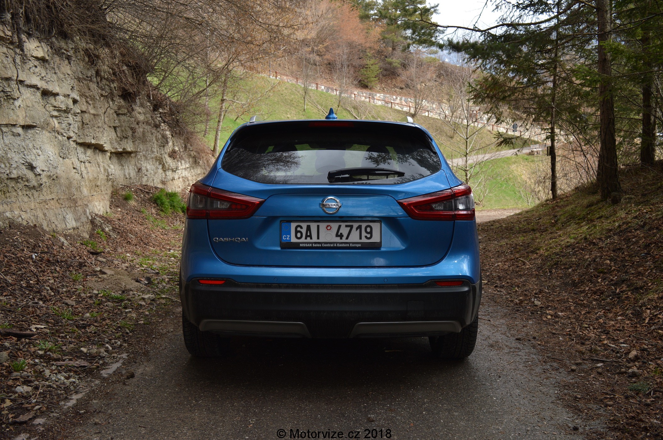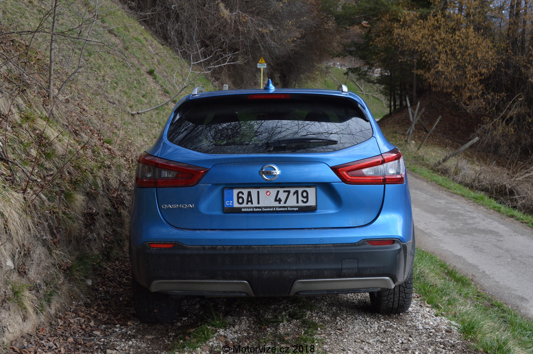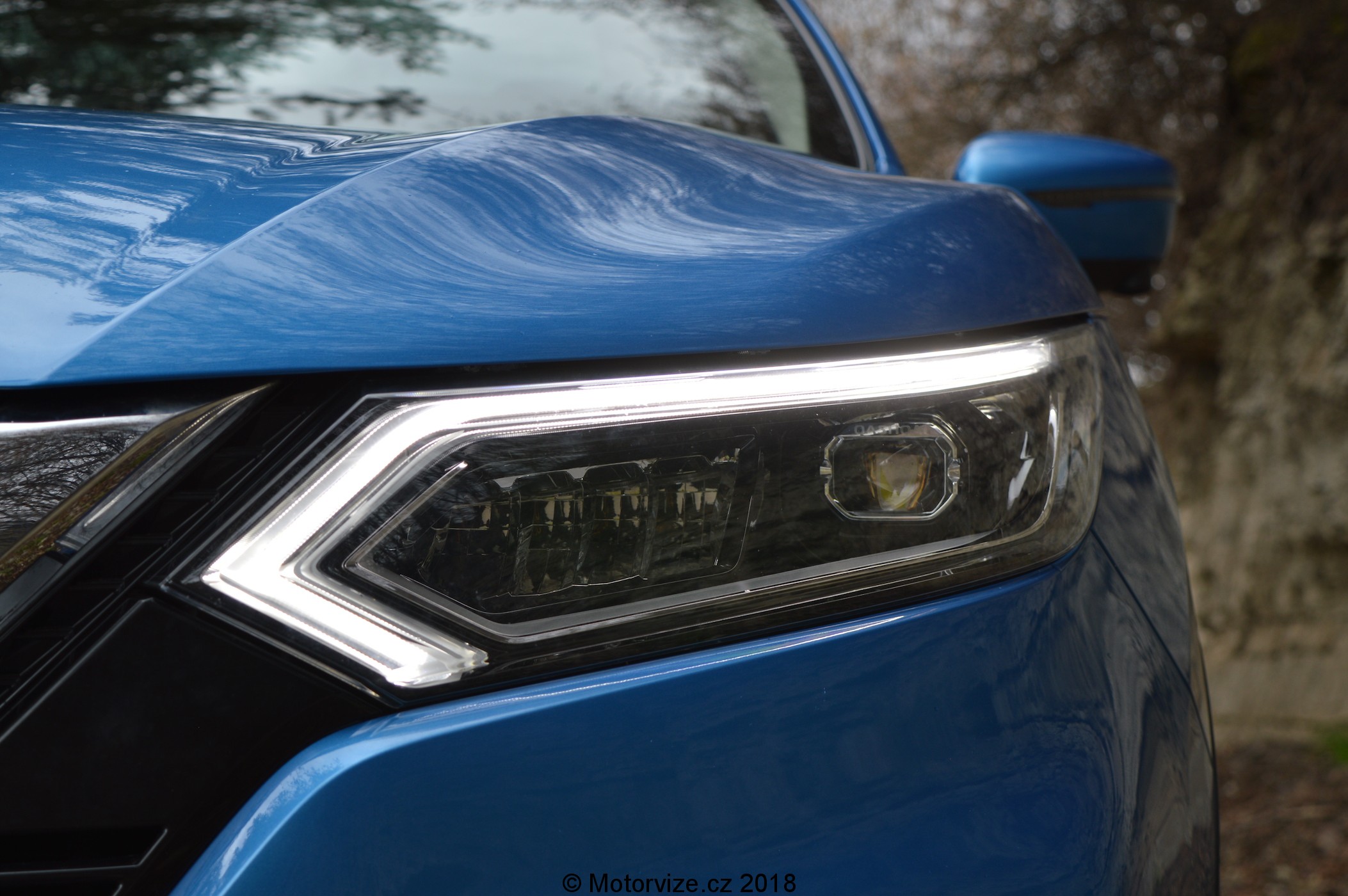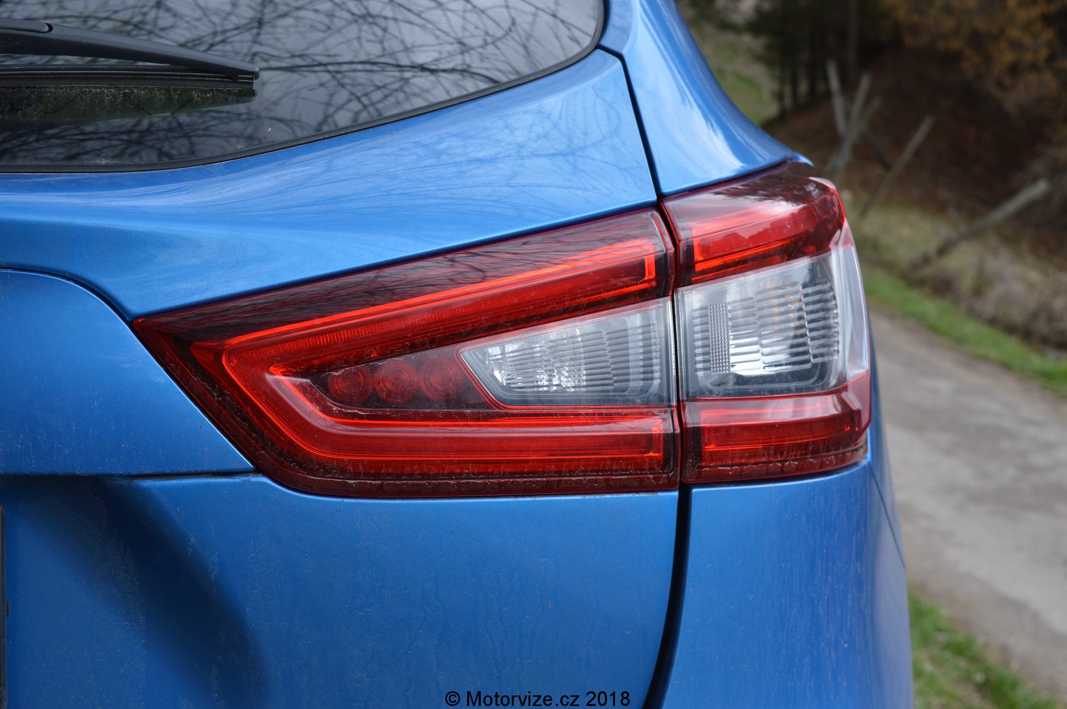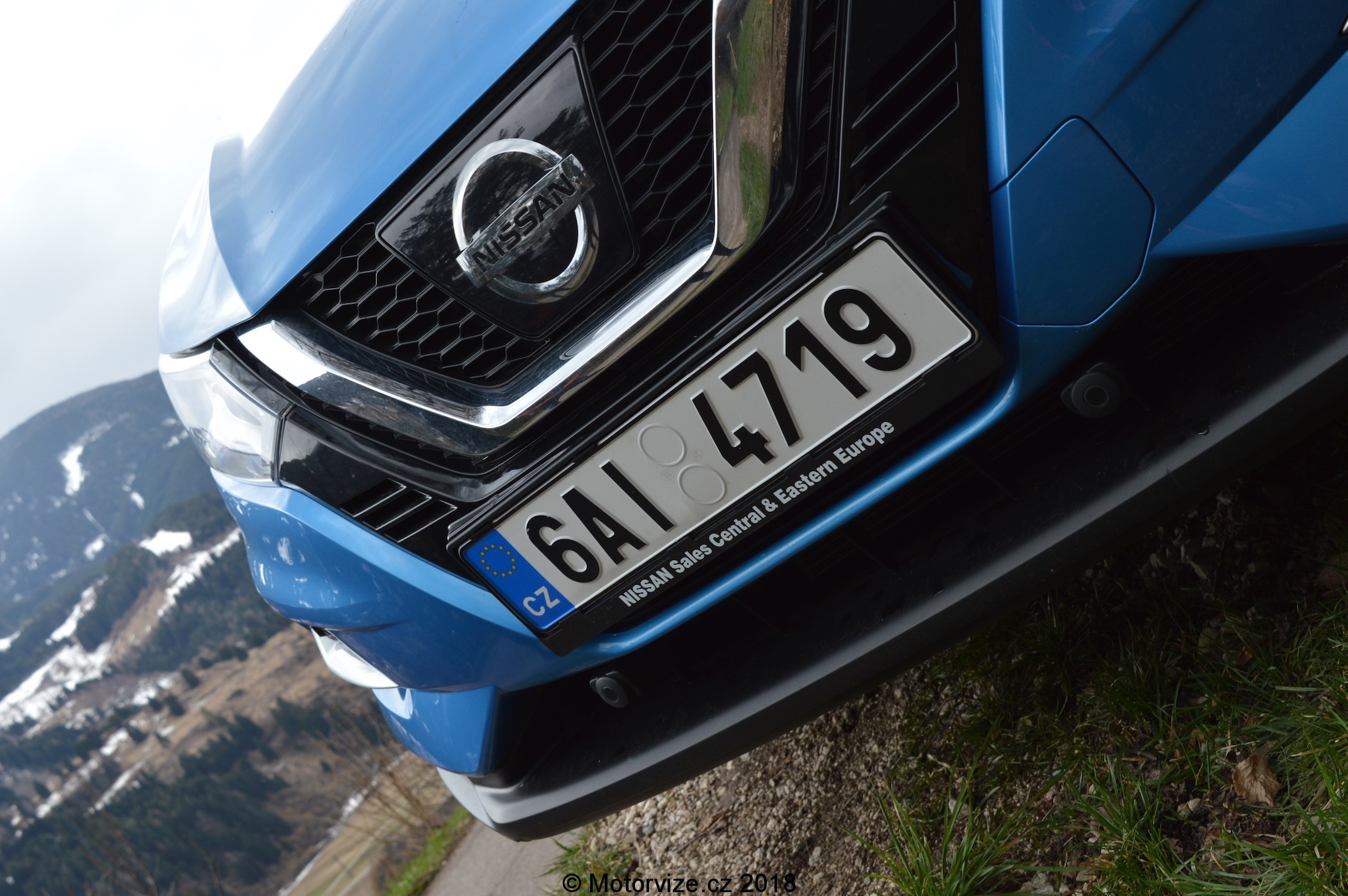 První setkání s vozem mi vytvořilo úsměv na tváři. Ráno v den přebírání vozu jsem se probudil s vědomím, že dnes máme na testování právě Qashqaie, který je bohužel často označován jako šedá myška v provozu. Opak byl ale pravdou. Před autosalonem na nás čekal krásný „Kaškaj“ v zářivě modré barvě, která tomuto vozu náramně sluší. Od prvního momentu jsem věděl, že zde na mě nečeká žádná šedá myška, ale velké modré překvapení. Tudíž jsem hned řekl kolegovi, že by si zasloužil nějaké oslovení. Začal jsem mu říkat „Kašík“. Na první pohled mě zaujaly ostré rysy auta. Druhá generace po modernizaci získala sportovnější a dynamičtější look. Kašík nám narostl o 5 cm do délky, ale zároveň se i rozšířil a o kousek se přiblížil rozkopanému asfaltu v Kobylisích na Praze 8. Přední masce dominují velké moderní LED světlomety s denním svícením. LEDky zároveň zajišťují i funkci směrovek. Plynule na ně navazují jasně agresivní hrany podtrhující celý výraz automobilu. Naopak zadní část auta působí klidněji, elegantně a věřím, že tak všem uživatelům dělá radost zvednout páté dveře i přes absenci bezdotykového otevírání.
