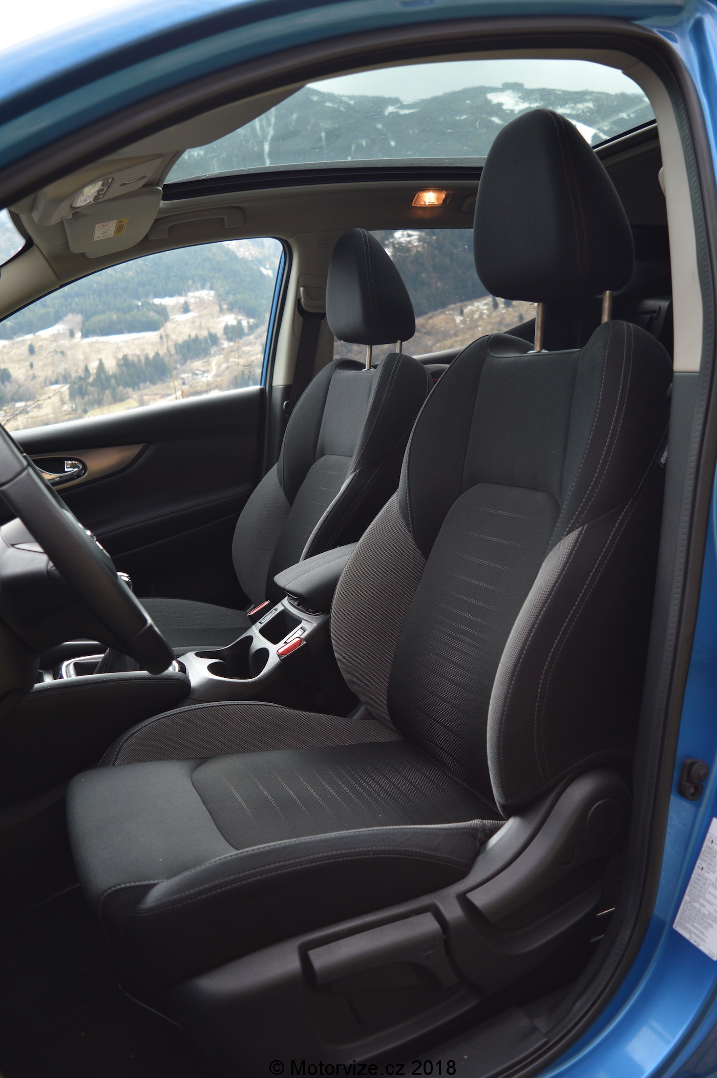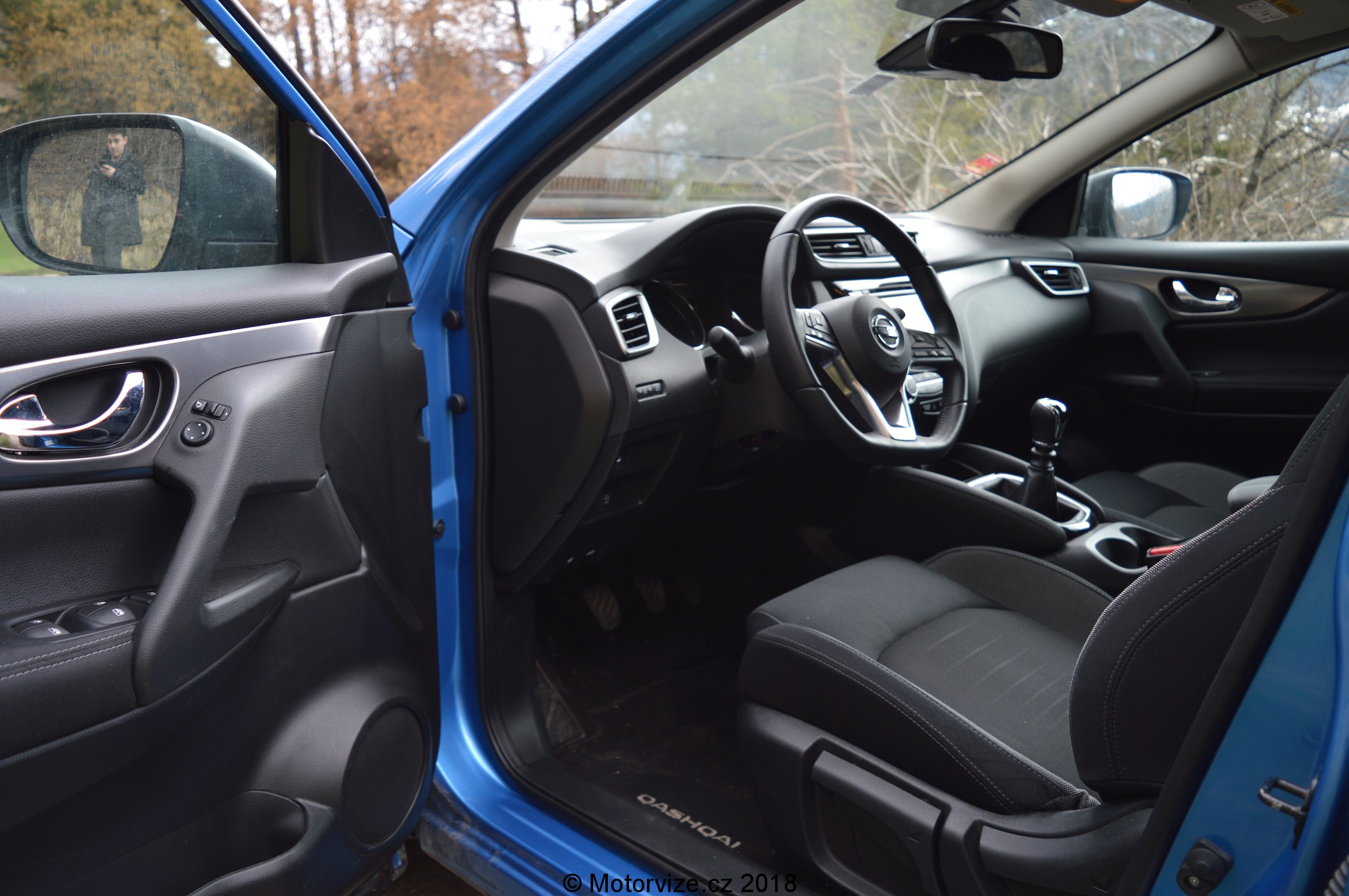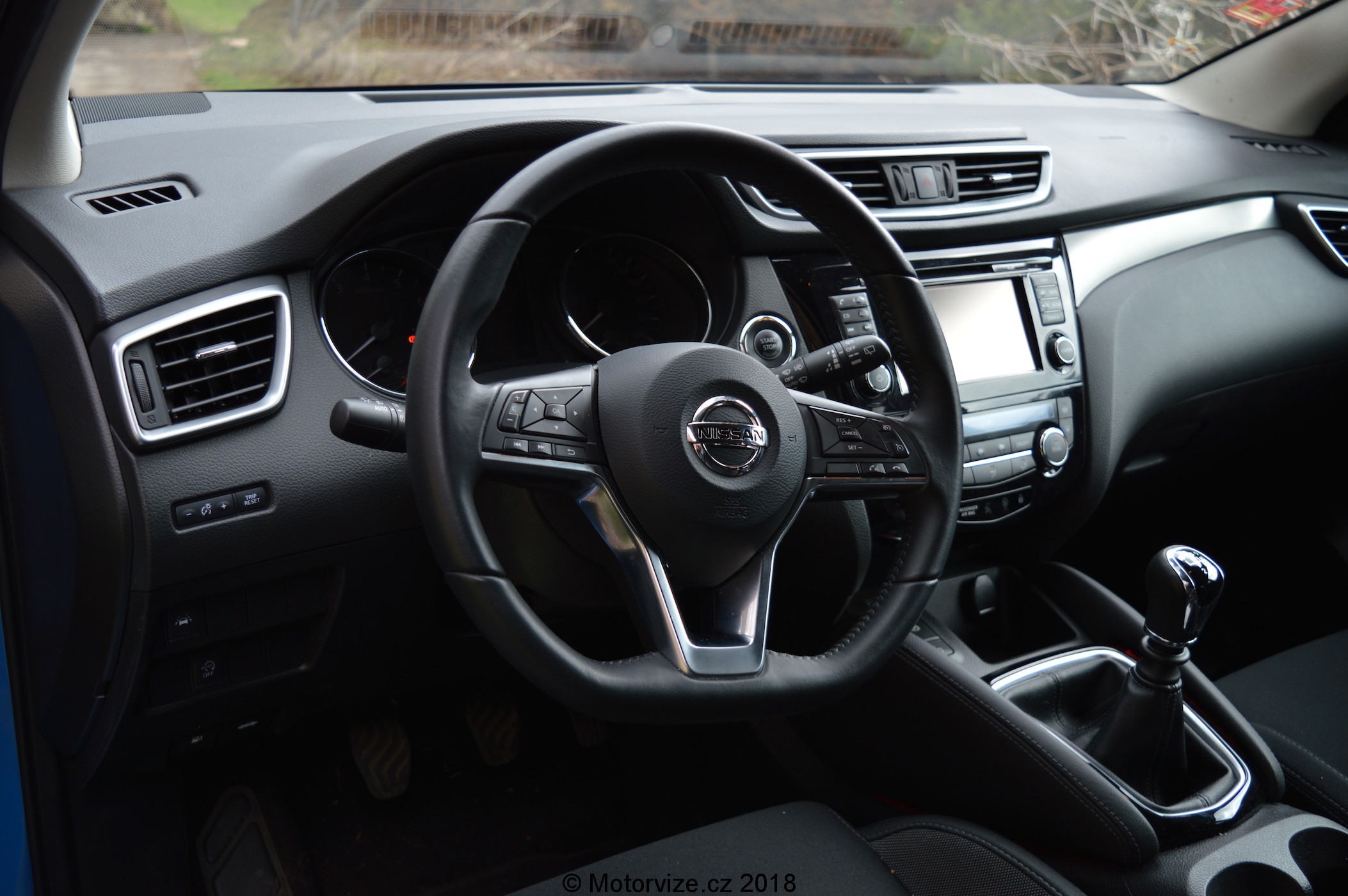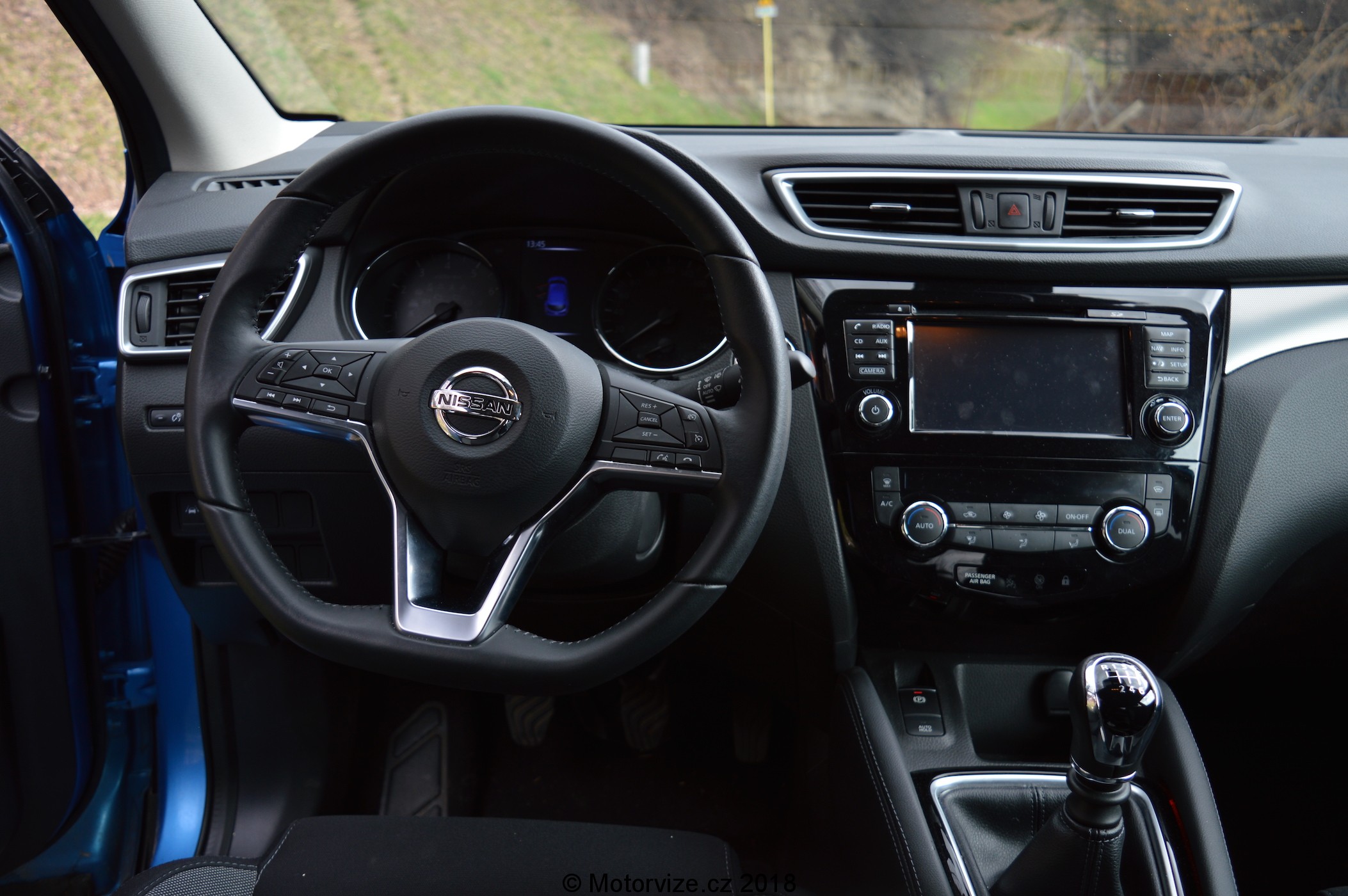 Při otevření dveří na mě dýchla vůně nového vozu spojená s nadmíru příjemným pohledem do interiéru. Hned na první dobrou vás oslní použité materiály a celkové zpracování. Máte pocit, že sedíte v autě minimálně o půl třídy výše. Posed za multifunkčním volantem je pohodlný, sedačky mají výborné boční vedení a i přes vyšší posed máte skvělý pohled na budíky. Na druhou stranu v rámci materiálů jednu skulinku přeci jen najdete. Lehce nepříjemný, a to hlavně na delší cesty, je o plastový díl středového panelu zmenšený prostor pro pravé koleno. Díky zmíněnému vyššímu posedu získáváte příjemný výhled na předek i okolí vozu, zároveň pocit většího bezpečí a jistoty za volantem. Celá palubní deska působí moderním dojmem v hlavní roli s lesklým rámováním palubního počítače, který sdílí se svým větším bráškou X-Trailem společně s madly dveří a tlačítky ovládání elektrických oken. Ta bohužel působí levně a jejich chod je poněkud „plastový“, avšak samotné vyjíždění a zajíždění oken je rychlé a příjemně tiché. Výborně řešené jsou odkládací prostory, kterých je tu opravdu dostatek. Do dveřních přihrádek se bezproblémově vejde i větší nádoba s pitím a pod ovládáním klimatizace najdeme dostatek prostoru i pro dva velké smartphony. Jelikož jsem zastánce fyzických, mechanických „čudlíků a točítek“, které při jízdě nemusíte složitě hledat kdesi v nastavení softwaru, musím dát Kašíkovi pár bodů navíc za řešení ovládání klimatizace a infotainmentu. Nechybí ani přihrádka nad koleny spolujezdce a úložný prostor pod loketní opěrkou, jež je šikovně řešený do dvoupatrového systému. Před ním jsou navíc ještě dvě pozice na láhve s pitím. Důležitým aspektem pro segment zákazníků, na které Nissan s Kašíkem útočí, je bezesporu i dostatek místa na zadních sedadlech. S autem jsme měli možnost projezdit velkou část jižních Čech, kdy po celou dobu jízdy byli na zadních sedadlech dva urostlí kolegové. Oba si pohodlí i prostor vzadu chválili. Zavazadlový prostor se svými 410 litry neohromí, ale je plně dostačující.