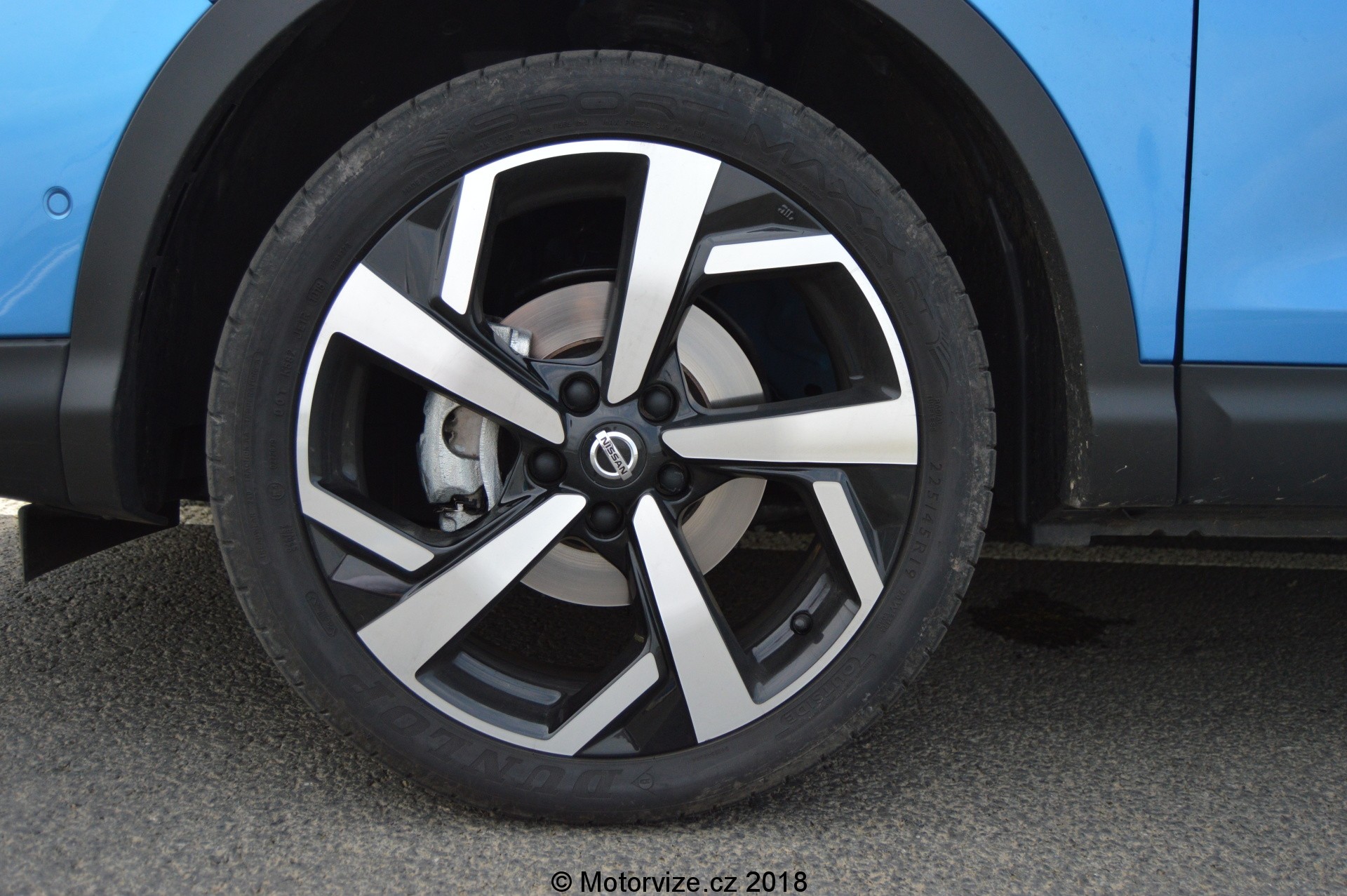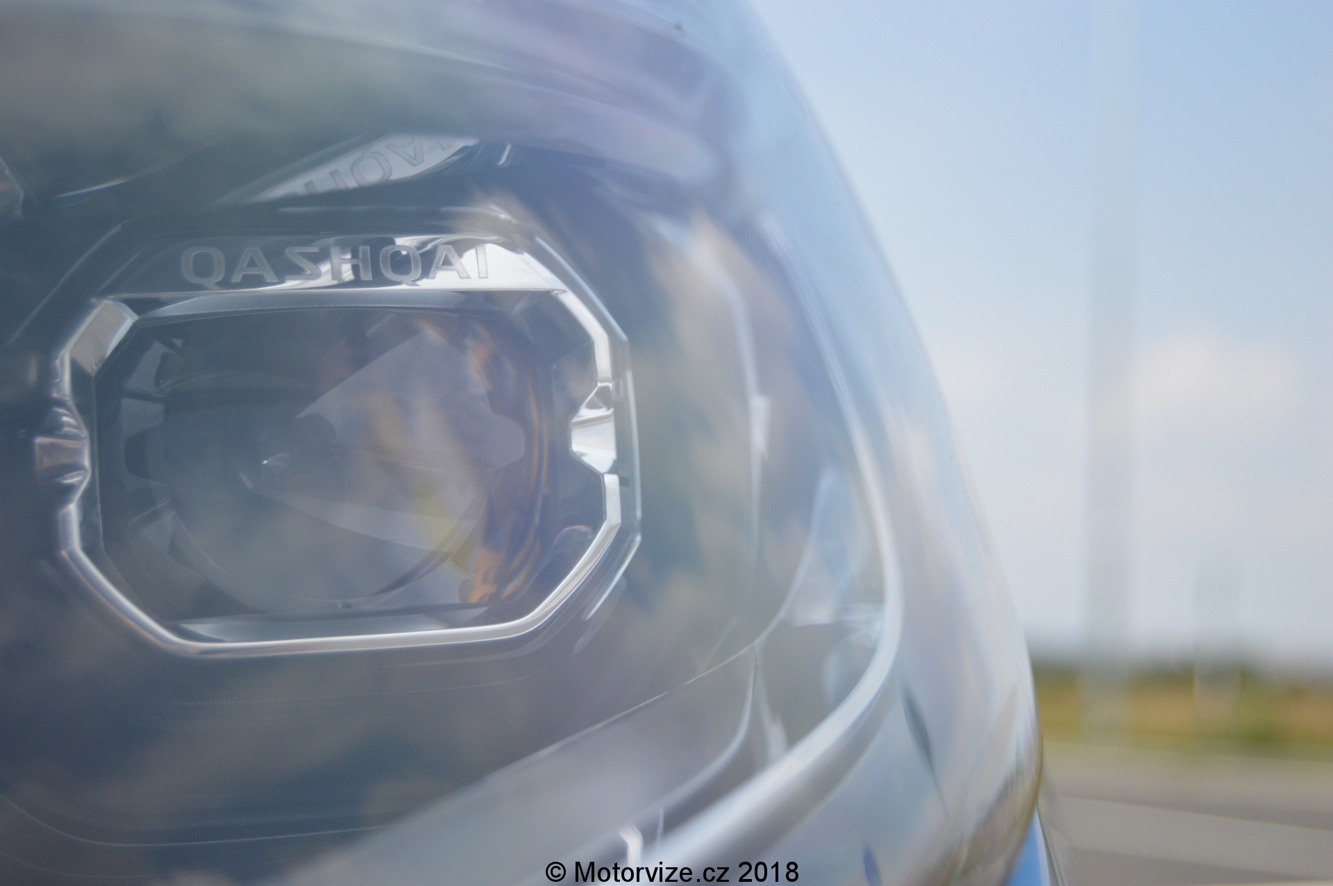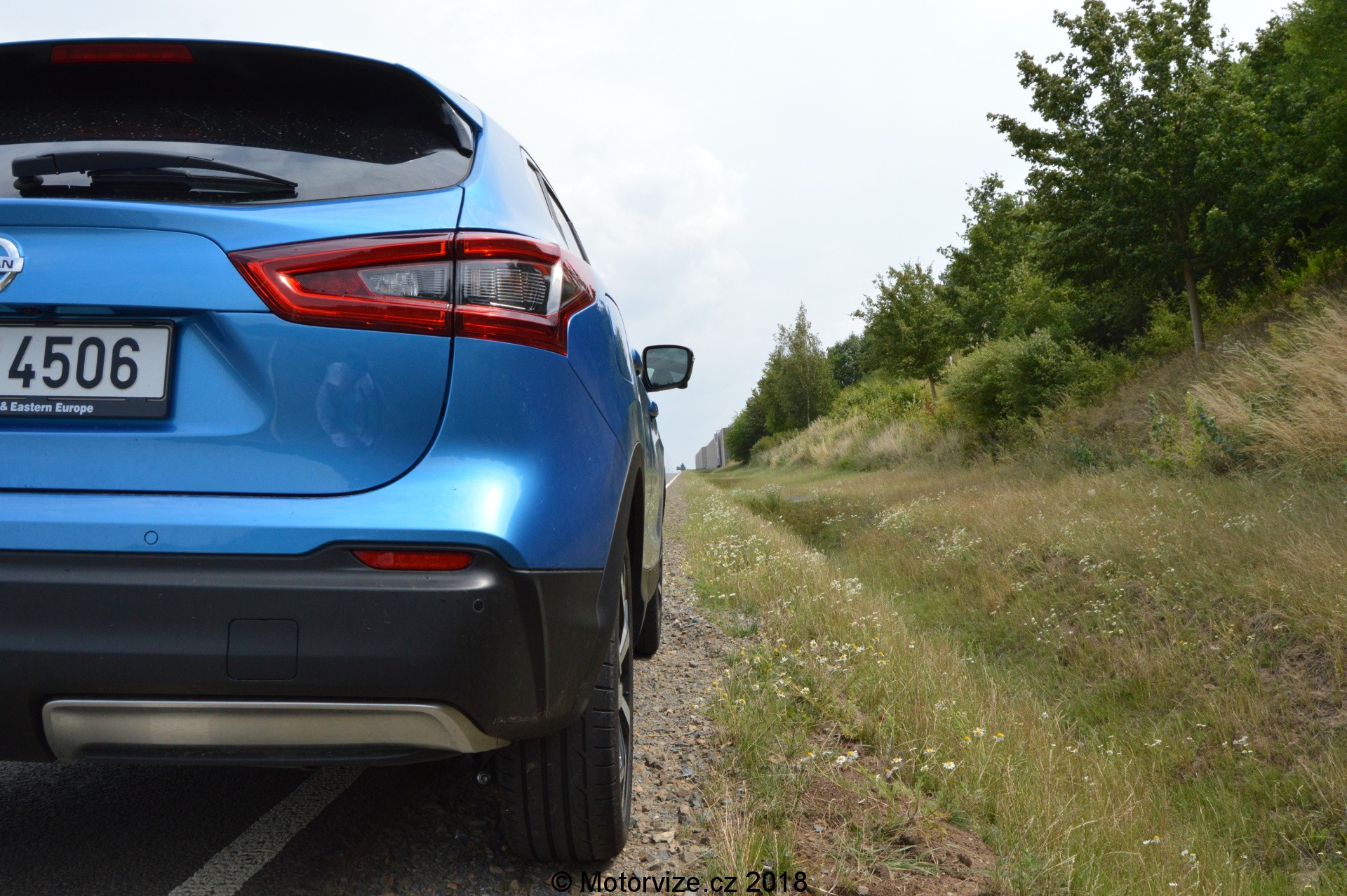 V úvodu jsem zmínil, že je Qashqai relativně nenápadné auto – to však neplatí o kusu ve světle modré barvě, ve které jsem měl vůz zapůjčený já. Ta vyčnívá z davu a pěkně vytáhne ty správné křivky, zrcátka jsou pak lakována do stříbrné barvy, ladící s doplňky masky, ohraničením oken, střešními lyžinami i pěknými 19” koly. Zajímavě je řešené přední logo vozu, které není plastické, ale pouze kruhové – nejspíše zde bude umístěn radar ProPilotu, tedy adaptivního tempomatu v kombinaci s aktivním vedením v pruhu.
