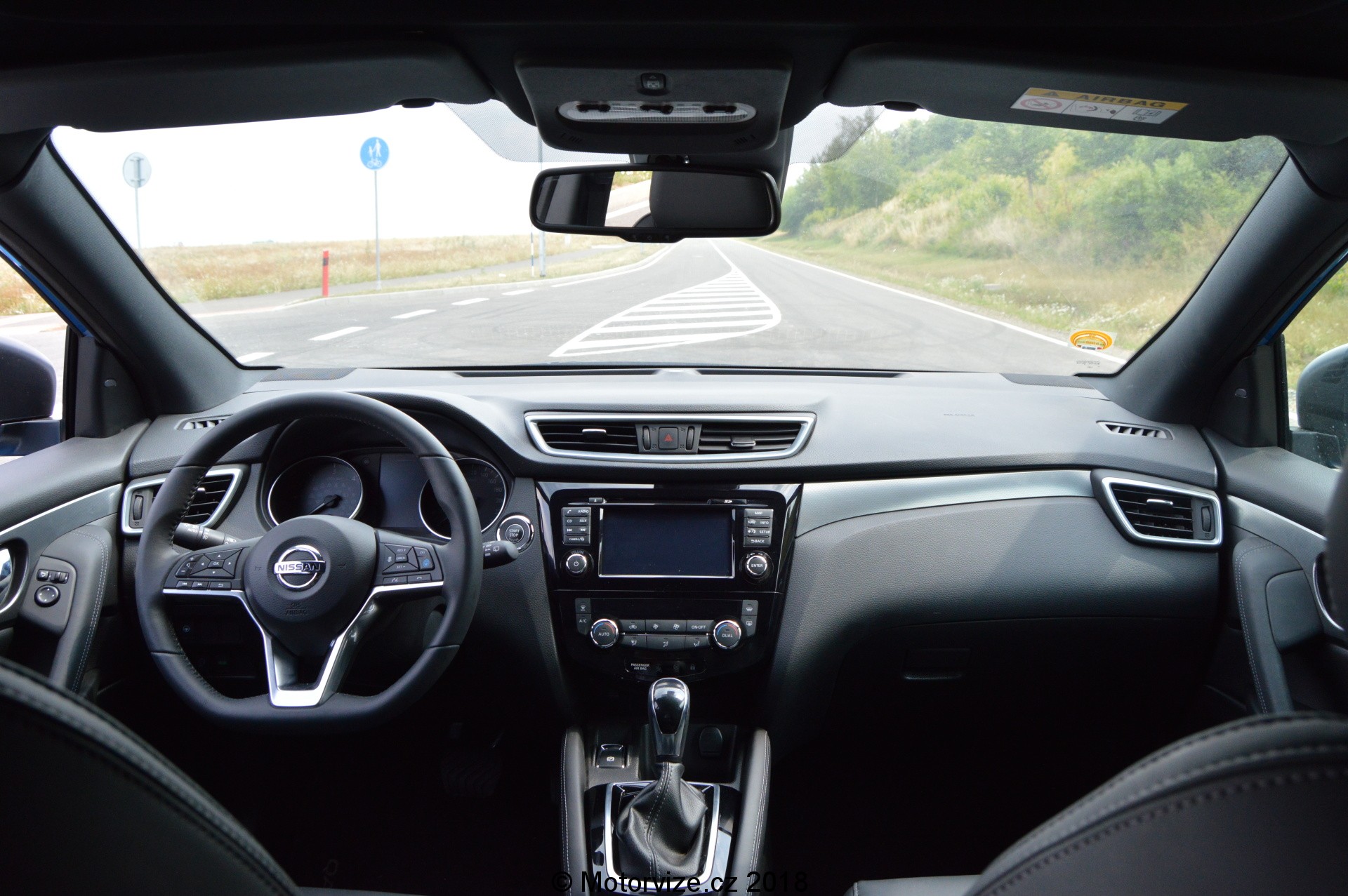 Největší překvapení Qashqai schovává v interiéru. Ten je totiž nejen pěkný, ale používá i kvalitní materiály a nabízí i velkou dávku praktičnosti. Dominantou interiéru je pěkně tvarovaný volant s ovládáním infotainmentu i ProPilota, navíc doplněný o designové chromované prvky. Zvláštní kapitolou by mohla být pohodlná sedadla s 3D polstrováním, která jsou již součástí výbavy Tekna a Tekna +. Nechybí samozřejmě jak jejich vyhřívání, tak i paměťová funkce nastavení, důraz na komfort je u Qashqaie znát ve všech ohledech. I úložných prostorů je zde hodně – do dveří se vejde velká láhev a loketní opěrka nabízí přihrádku tak hlubokou, že je téměř problém dosáhnout na dno.