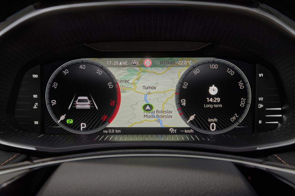 Poprvé je ve voze FABIA k dispozici na přání digitální přístrojový panel s 10,25″ displejem. Řidič může individuálně nastavit a volit mezi jednotlivými režimy zobrazení. K dispozici je klasický layout, který vychází ze standardních analogových kruhových ukazatelů, moderní uspořádání, redukované, rozšířené zobrazení a také sportovní režim s otáčkoměrem uprostřed, které je součástí na přání dostupného sportovního paketu. Tzv. „virtuální kokpit“ také zobrazuje loga rádiových stanic, obaly hudebních alb a uložené fotografie volajících. Dále je možné na displeji zobrazit mapu navigace s lištou pro přiblížení. FABIA je standardně vybavena analogovým kokpitem s trojrozměrnými ciferníky, dodatečnými kruhovými ukazateli teploty chladicí kapaliny a aktuálního stavu nádrže a Maxi DOT displejem, který zobrazuje také navigaci a rozpoznané dopravní značky. Čtvrtá generace modelu FABIA nabízí také poprvé dvouzónovou klimatizaci Climatronic a výdechy ventilace na zadní straně středové konzoly pro klimatizaci zadních sedadel.