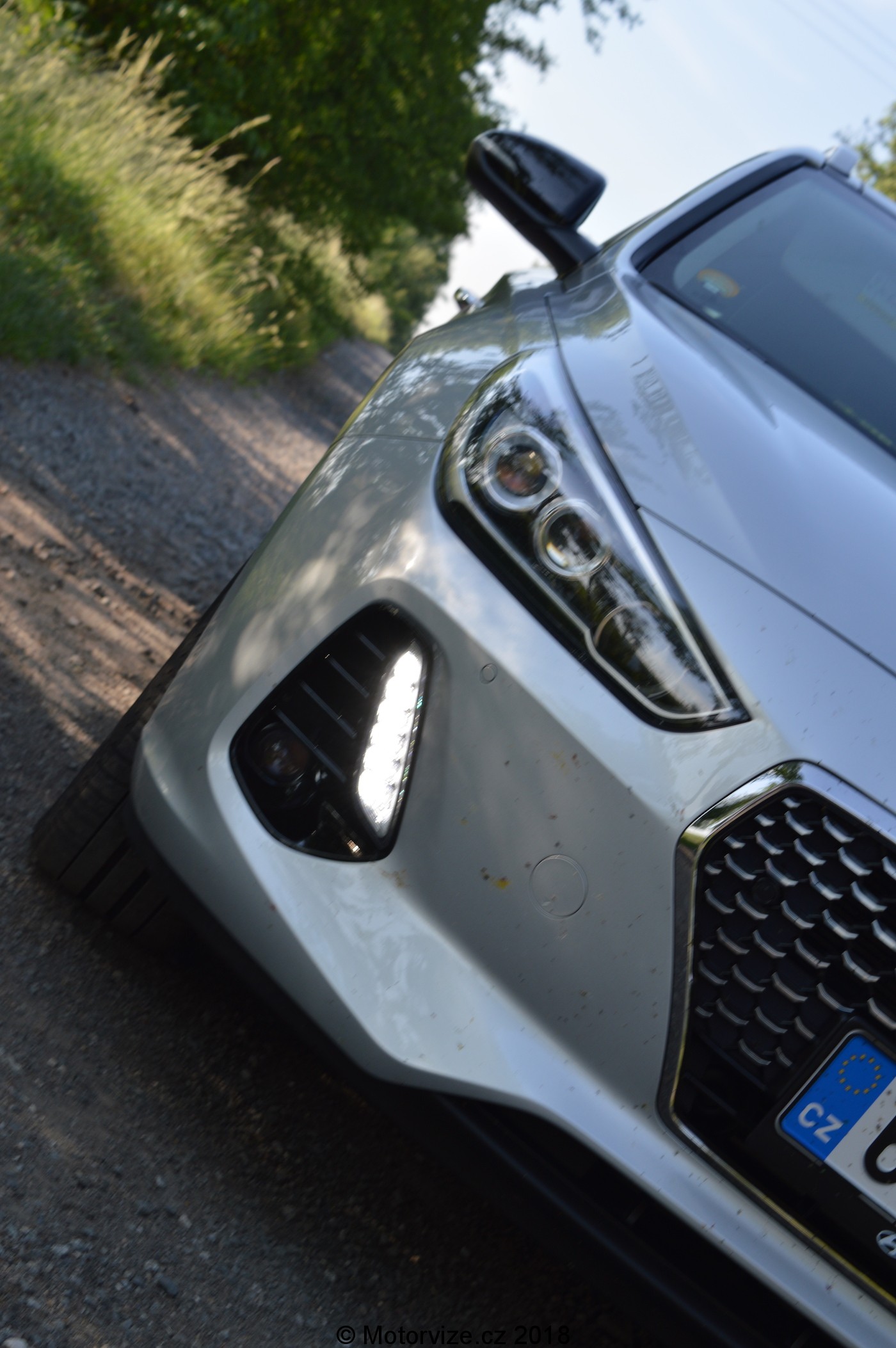 Hned, jak přicházím k autu, již z dálky zaujme jeho nápadný široký posez a nízký vzhled. Úzké zadní světlomety a nízké zadní okno to jen podtrhují. I30 třetí generace více odskakuje z našeho pohledu od svých asijských konkurentů, Kia či Mazda, a dále rozvíjí -dnes už unikátní- designový podpis automobilů této značky. Nová generace na nás působí vytříbeněji, elegantněji a o poznání dravěji než předchůdce. V metalíze „Platinum Silver“ u námi testovaného kusu působí tak trochu odměřeně, jakoby záhadně, ale zároveň prémiově. K tomuto dojmu přepychu pomáhají i vkusně použité chromové linie na boku, zvýrazňující horní hranu oken, ližiny na střeše, kliky dveří a v přední části vozu lemování poměrně masivního výřezu masky. Na subjektivní notu, tato stříbrná metalýza je dle našeho názoru jedna z nejlepé se hodících k tomuto autu (mnohem lepší než například taková červená barva „Engine Red“ nebo jednoduchá bílá „Polar White“, které dost možná utopí veškerou pomyslnou noblesu nového designu).¨
