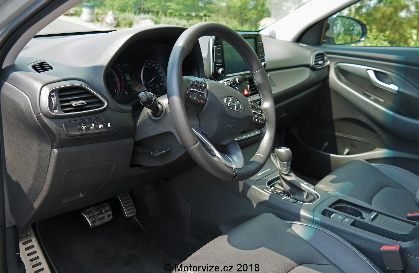 Po usednutí do vozu, za volant, nás přepadne v prvních chvílích pocit sterility a zvláštního, byť ne nepříjemného „chladu“, který jsme prve dostali i u jiných nových vozů této značky. Osobně to přisuzuji hojnému, přebujelému použití tmavého plastu s převážně monotónní povrchovou úpravou. I přesto ale Hyunadi zvládl vyladit vzhled kokpitu tak, že vše působí moderně, jestli ne přímo nadčasově (v rámci tohoto segmentu), a to je pozitivní zpráva. O interiéru si však povíme více hned za chvíli…