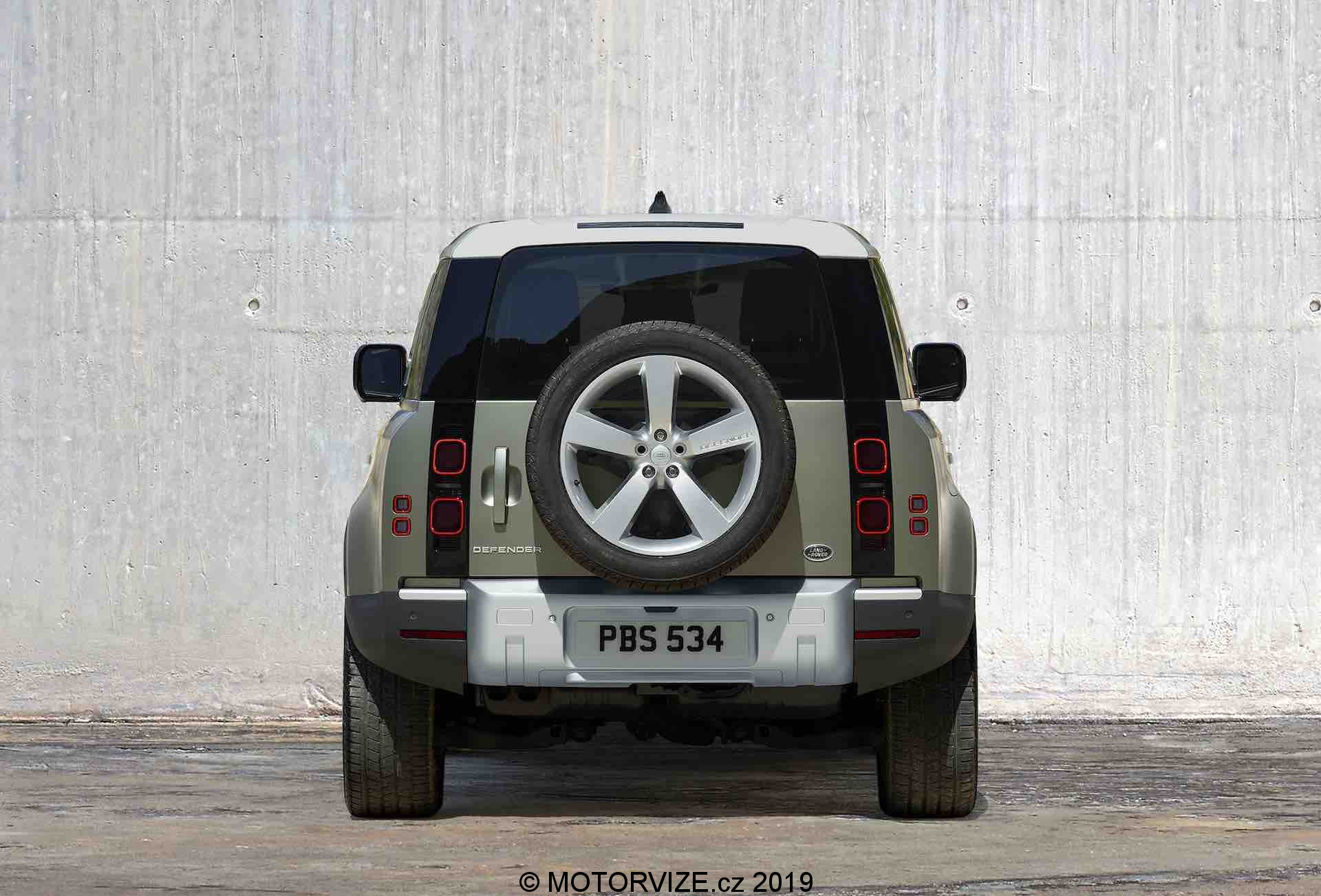 Díky působivé siluetě zůstává nový Defender jasně rozpoznatelný. Minimální převis karoserie vpředu i vzadu poskytuje výborné nájezdové úhly. Designéři značky Land Rover transformovali prvky typické pro původní Defender do 21. století. Jde například o malá okna na bocích střechy, zadní dveře otevírané do strany nebo o rezervu umístěnou na nich, která byla pro originál tak typická.