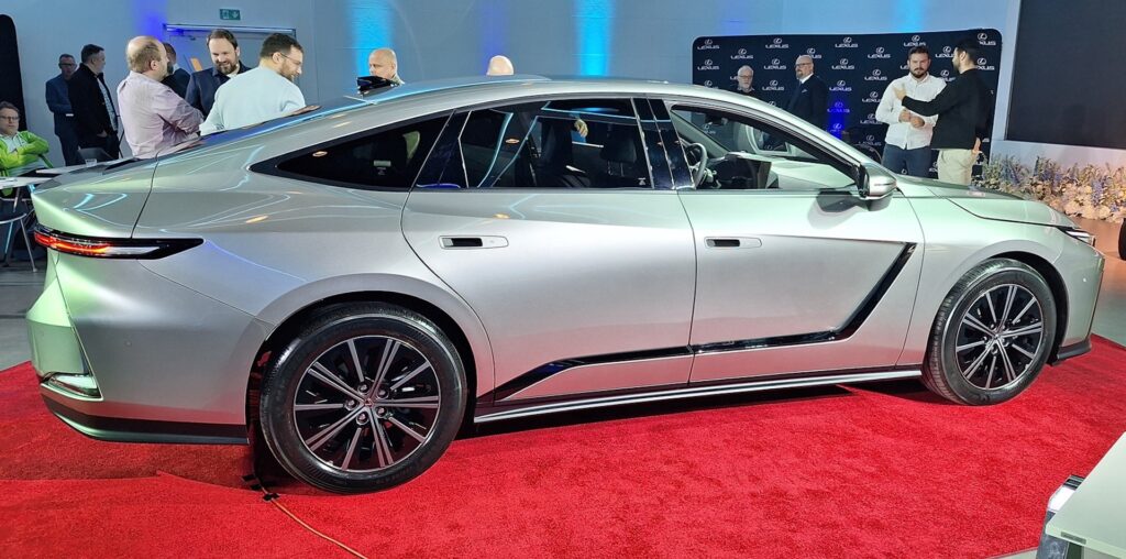 Ačkoli silueta nového Lexusu ES se svou splývavou zádí může na první pohled evokovat fastback, stále jde o čistokrevný sedan. Konstruktérům se navíc podařilo umístit trakční baterii do podlahy, čímž dosáhli hned dvou efektů – snížení těžiště a zároveň světlé výšky 200 mm. Posaz je tak někde mezi klasickým sedanem a SUV.
