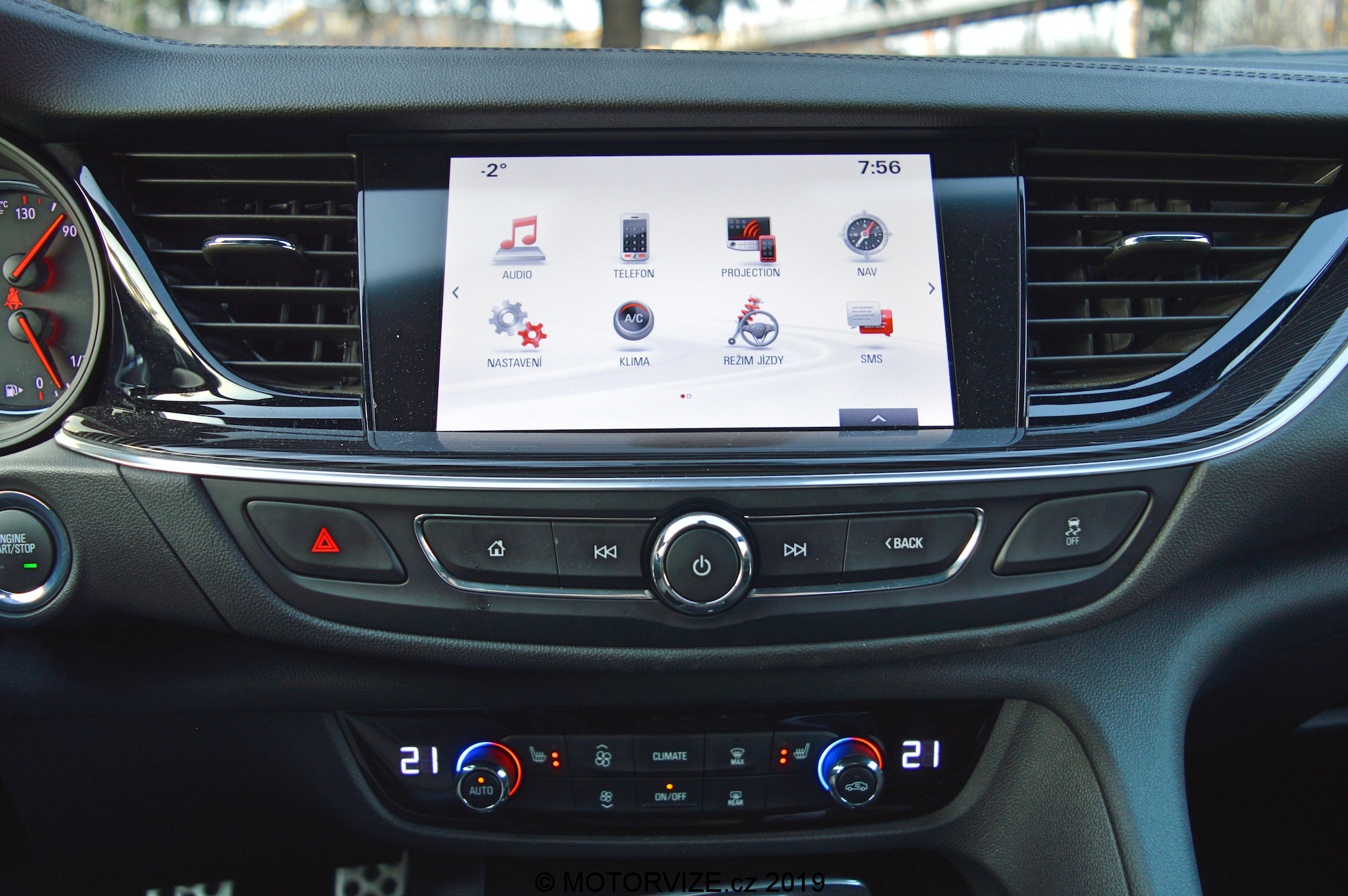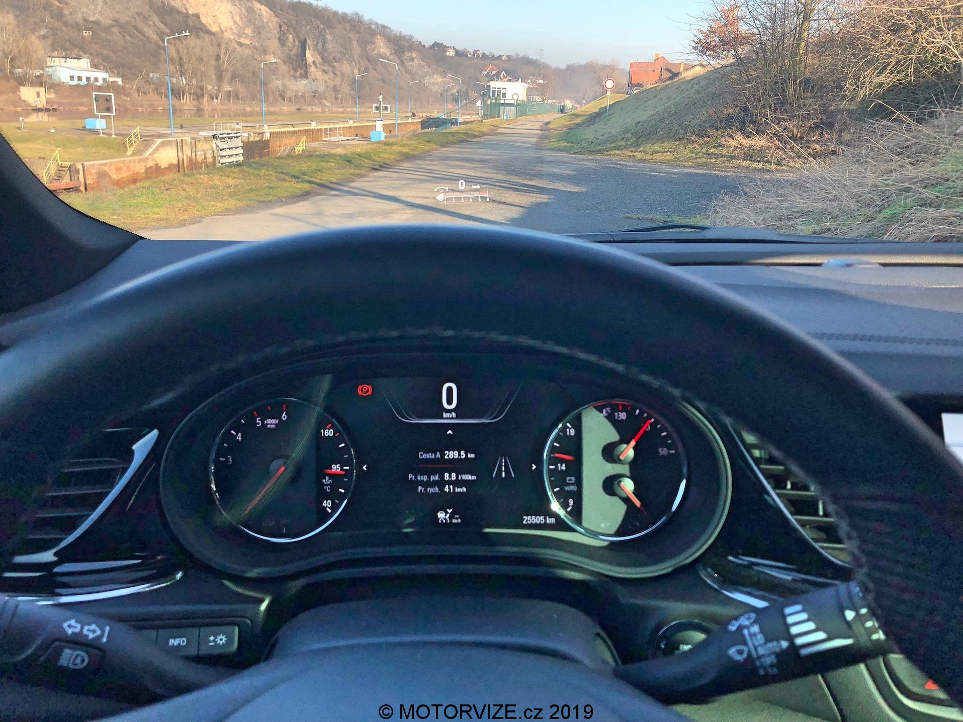 První start přes tlačítko a začíná má osobní procedura po usednutí do nového auta. Vypnutí start/stopu, vypnutí varování před kolizí, naštěstí nemusím hledat teplotu oleje, jelikož v Opelu dali teploměr oleje přímo vedle otáčkoměru, toto mi udělalo po dlouhé době u auta obrovskou radost. Zařadím tedy za 1, jelikož jsme dostali manuál, a rozjíždím se. Musím říci, že mi poloha spojky a kulisa řadící páky na komfortní jízdu opravdu vyhovovala. Spotřeba je u tohoto vozu příjemná a pohybuje se v rozmezí 5 až 8 l/100 km, na větší jsem se nedostal ani při větším snažení, což oceňuji. V rámci testu jsem se vydal taky na jeden výlet. Navštívil jsem server Čech a spíše jsem se zamýšlel, jak auto správně otestovat. Po cestě jsem si všiml polní cesty, která byla trochu zablácená a říkal jsem si, že by toto mohl být ten pravý povrch pro oplastovanou Insignii. Auto se s tím „popralo“, jako by šlo o rovnou asfaltovou cestu. Pohon 4×4 funguje v Insignii parádně a ve spojení s manuální převodovkou se s ním dají dělat divy. Po cestě od kolegy Honzy si říkám „aha tlačítko SPORT, ale v takovém voze?“ No uvidíme. Stlačím tedy SPORT a nestačím se divit, volant ztuhne, a to razantně, ztuhne i řízení a podvozek tak opravdu moc pěkně drží. Mám svůj kus silnice, nebudu říkat, na jakém místě, kde si každé auto zkouším z pohledu jízdních vlastností v zatáčkách a rychlou jízdou. Opel se na ní držel opravdu úctyhodně, takto povedený podvozek jsem nezažil ani u Volkswagenu Passat se nastavitelným podvozkem. Jízdu jsem si doslova užil. Vozidlo se tak dá považovat za povedené z více pohledů, nikoliv z „country“ úhlu. Vraťme se ale k mnou opěvované jízdě na režim „COMFORT“. Poslední večer jsem přemýšlel, jak si toto auto ještě užít. Řekl jsem si, že vyrazím na projížďku po Praze. Kde jinde také otestovat komfort auta, že? Jel jsem směrem od Dejvic, přes centrum, kde jsem po projetí pár uliček najel na 5. května. Dojel jsem nakonec až ke sjezdu na Chodov, kde jsem se obrátil a jel zpět. Výsledkem této cesty a komfortu je takový, že jsem si nevšiml žádné výrazné nerovnosti, auto se chová opravdu jak na polštáři. Po dojetí zpět domů se mi také moc příjemně parkovalo s použitím parkovací kamery. Tuto dnes už za standard považovanou vychytávku velmi oceňuji u auta jako je toto – přeci jen nejde o žádného drobečka.
