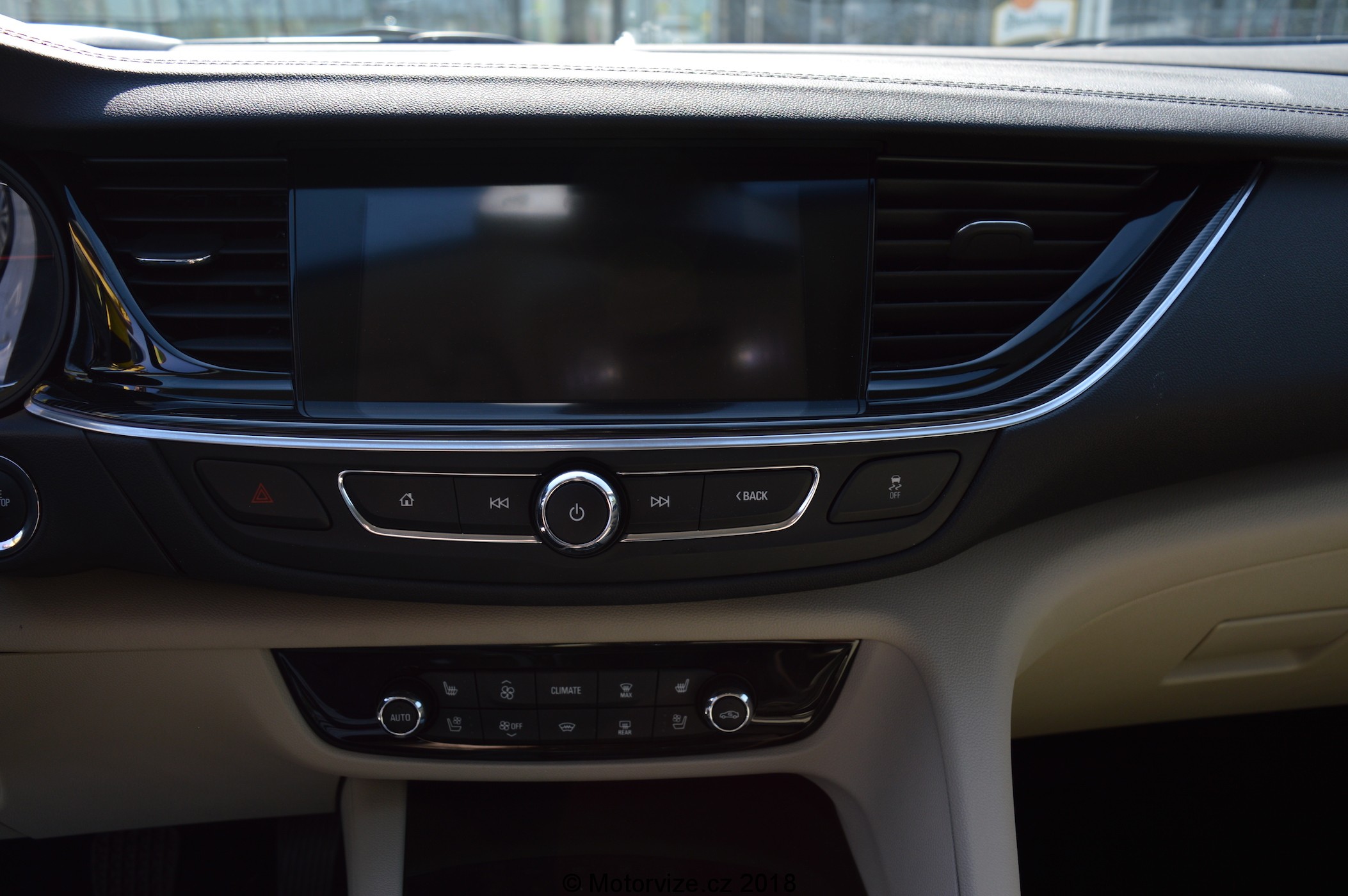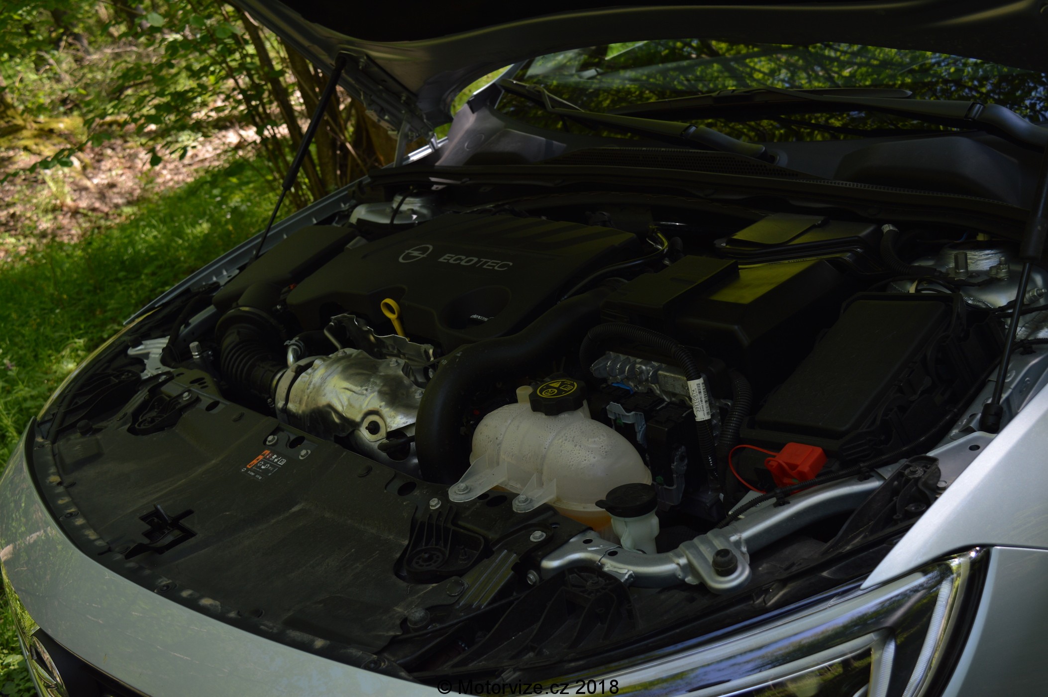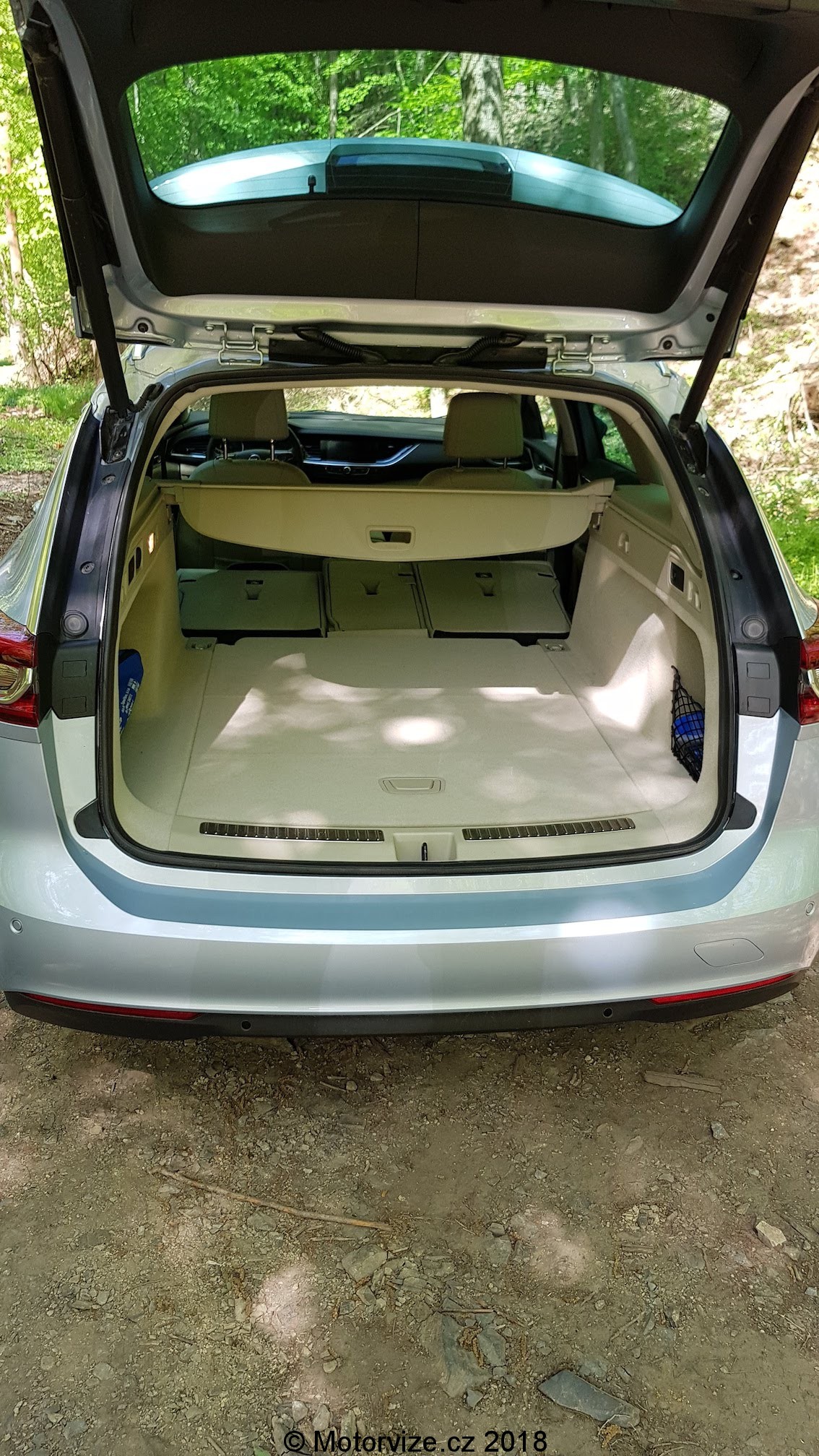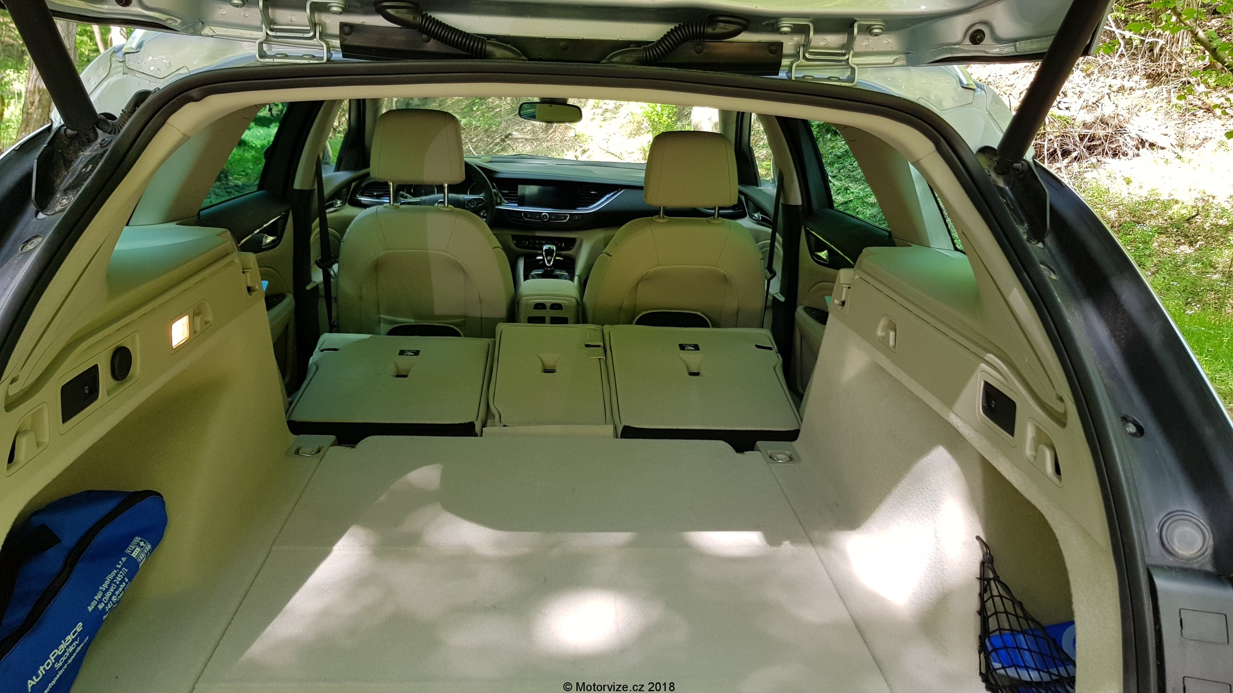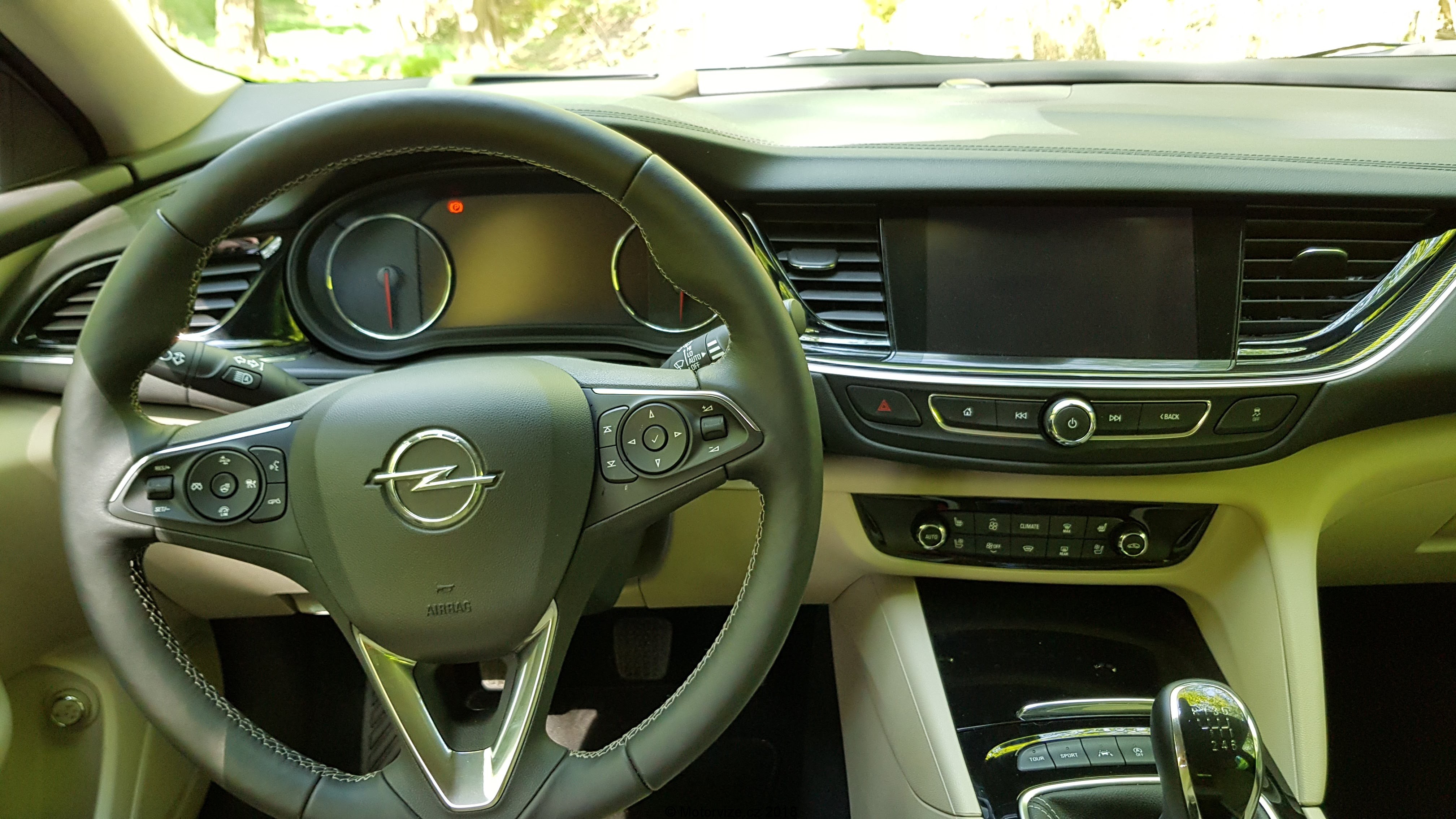Horní část palubní desky kopíruje optická linka vedoucí od výdechu ventilace na pravé straně, přes celou šířku interiéru, pak se zvedá nad kapličku s přístroji a končí opět ve výdechu klimatizace, tentokrát na levé straně. Interiér testované Insignie kombinuje světlé a tmavé obložení v kombinaci se světlou kůží na obložení dveří a na sedadlech. Jak je již dnes zvykem a u vozu této kategorie i nutností, interiéru dominuje velký dotykový 8“ displej vsazený mezi výdechy ventilace. Pod displejem jsou opět v chromovaném rámečku tlačítka na ovládání infotaimentu. Celá tato část je obložena tmavým kvalitním plastem. Středový panel postupně přechází k masivnímu tunelu, který je mírně natočený na řidiče. Vrchní část tunelu, okolo řadící páky, je obložena lesklým černým materiálem, pod kterým se ukrývají různé odkládací schránky. Před řadící pákou jsou ještě další tlačítka na nastavení jízdních režimů a parkování. Hlavice řadící páky je vcelku krátká a mohutná do ruky, což třeba mě osobně vyhovuje. Ruční brzda je zde elektronická, jak je tomu v dnešní době běžné. Dále je pod loketní opěrkou umístěna schránka s bezdrátovou nabíječkou na mobilní telefon a jeden z konektorů USB. U nové Insignie si může zákazník připlatit za digitální přístrojový štít, jímž byl testovaný vůz vybaven. Ten kombinuje digitální displej a ručičkové přístroje v jednom. Celek má velmi dobré rozložení a přehlednou grafiku. Digitální část je z velké části převzata z předchozí generace, je nově doplněna o 2 digitální přístroje, které překrývá chromovaný rámeček. Grafiku centrálního displeje lze přepnout do dvou rozhraní – kulatý sportovní ručičkový rychloměr a druhý, označený Opelem jako TOUR, ukazuje v horní části rychlost a potom vše ostatní v prostoru pod rychlostí. Ovládání informací na displeji je umístěné na volantu ve tvaru kolečka se šipkami a potvrzovacím tlačítkem uprostřed. Nová Insignia narostla na rozvoru o 92 mm a díky tomu a drobnému přeuspořádání interiéru, je vzadu na kolena až o 10cm více místa. Obecně posezení v nové Insignii patří k těm nižším. Testovaný vůz byl navíc vybaven masážními sedadly s certifikací AGR a nastavitelnou délkou sedáku. Za volantem se mi sedělo jako v bavlnce. Jediné, co bych předním sedadlům vytknul, je krátké opěradlo. Vzadu jsou 2 plnohodnotná sedadla a jedno spíše nouzové. Každé z nich však jde samostatně sklopit. V opěradle prostředního sedadla je umístěna široká a pohodlná opěrka s integrovaným držákem dvou nápojů. I zadní sedadla jsou trošku kratší, a to jak na délku, tak na výšku. Prostoru je na nich ale dost. Poslední pohled upřeme do kufru, který mezigeneračně narostl do délky a do šířky. Bohužel je trošku omezená výška mezi podlahou a roletou kufru. I tak má zavazadlový prostor základní objem 560l a po sklopení všech zadních sedaček naroste na úctyhodných 1665 l, což patří k nadprůměru ve střední třídě. Zatahovací roleta je vybavena pružinou pro dokonalé napnutí a lze ji jedním pohybem stáhnout anebo pouze zvednout do vyšší polohy pro lepší nakládání nákladu. I vyjmutí samostatné rolety je velmi jednoduché, ale bohužel jsem v Insignii nenašel místo, kam ji uložit pro případ, když není potřeba. Pod podlahou kufru se skrývá odkládací prostor na drobnosti a pod ním je uložena dojezdová rezerva včetně nářadí.