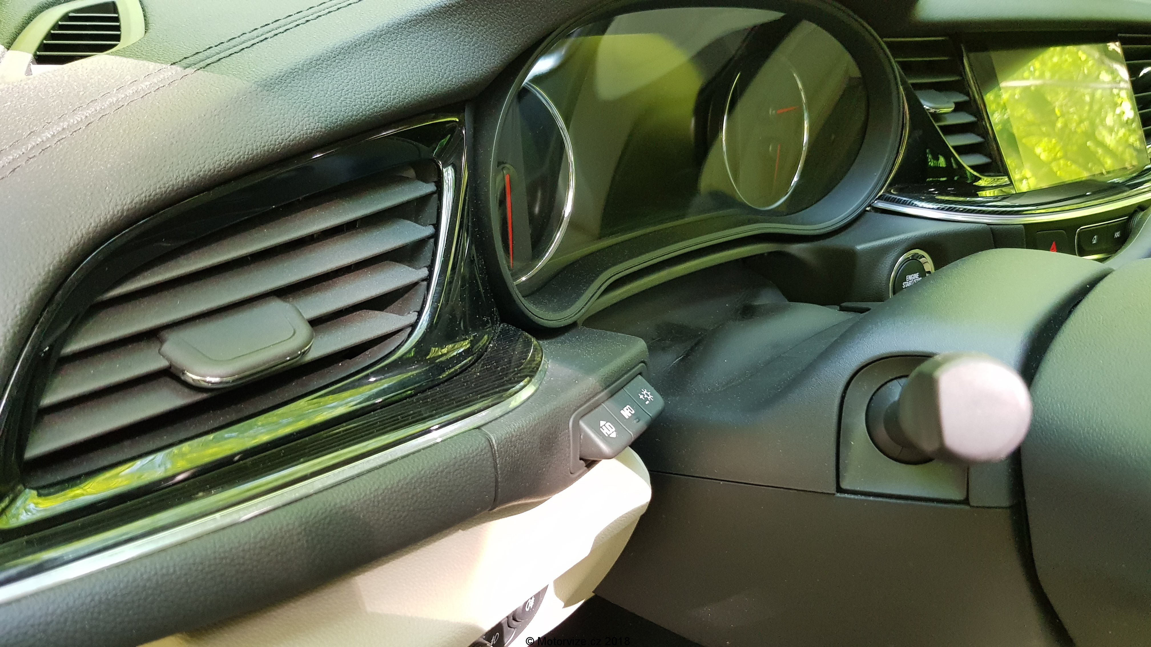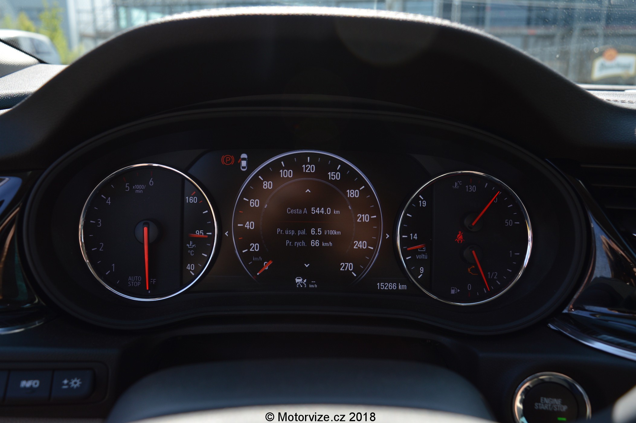 S Insignií jsem najel bezmála 800 km, z toho převážnou část po dálnici a asi 150 km po okreskách nebo po městě. Dálnice, to je přesně ta silnice, pro kterou je Insignie stavěná. Dlouhý kombík střední třídy vybavený adaptivními tlumiči polykal kilometry jedna báseň, a to i na našich vcelku nerovných dálnicích. Místy jsem si připadal, že nejedu, ale letím cca 1cm nad zemí. Insignie má velmi slušné odhlučnění interiéru, motor o sobě dá znát až ve vysokých otáčkách. Testovaný exemplář byl navíc vybaven dvojitými skly, pro ještě lepší odhlučnění, takže ani valivý hluk od kol nebo aerodynamický hluk z venku nebyl téměř slyšet. Adaptivní podvozek je možné přepnout mezi třemi režimy, a to Normal, Sport a Tour. Normal je nastavení pro běžné ježdění a Insignia je už v tomto režimu velmi komfortní a tlumí veškeré nerovnosti na silnici. Režim Tour pak ještě tento komfort lehce navýší. Naopak v režimu Sport tlumení hodně přituhne, minimalizují se boční náklony a ještě se zlepší již v základu velmi svižná reakce na plynový pedál, ztuhne také posilovač řízení. Právě v tomto režimu se mi na okreskách občas stalo, že jsem zapomněl, že řídím pětimetrový kombík střední třídy vážící více jak 1600 kilo. Řízení Insignie je velmi přesné, má dobrou odezvu, vůz se v zatáčkách hrne za koly jako zběsilý bez větší známky nedotáčivosti. Při ladění podvozku a řízení odvedli inženýři Opelu nadmíru dobrou práci. Po několikadenním ježdění s Insignií mě samozřejmě zajímala i spotřeba nejsilnějšího, jednou přeplňovaného dieselu, spojeného s manuálem. Ta se ve finále ustálila na 6,2 litru na 100 km, a to musím podotknout, že jsem Insignii v žádném případě nešetřil. Systém vozu je nastaven tak, aby vedl řidiče k co nejnižší spotřebě, a tak zobrazuje rady na přeřazení na jiný rychlostní stupeň. Je tu ale i věc, kterou bych Insignii potažmo Opelu chtěl opravdu vytknout, a to je systém start/stop. Ten mě asi třikrát doslova „vypekl“, protože nastartoval až po několikátém sešlápnutí spojky. Začínám být díky Opelu členem skupiny těch, co tuhle superekologickou vychytávku vypínají ihned po nastartování.