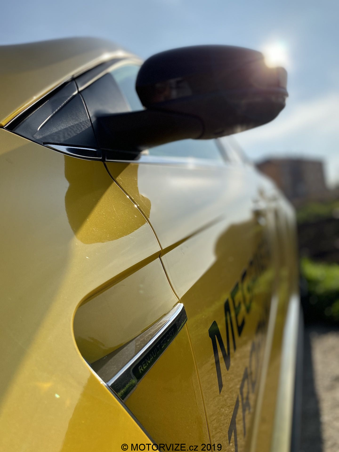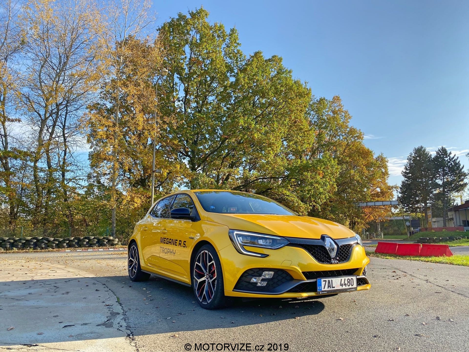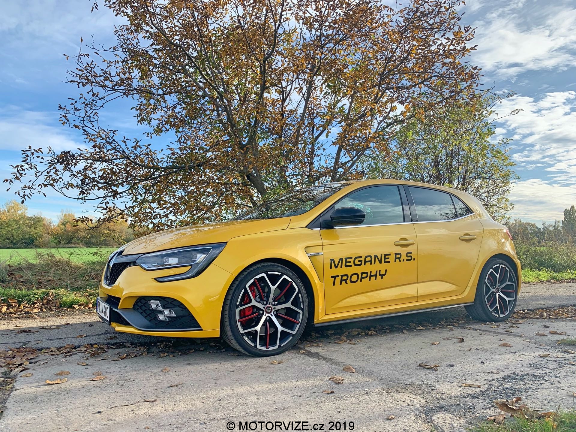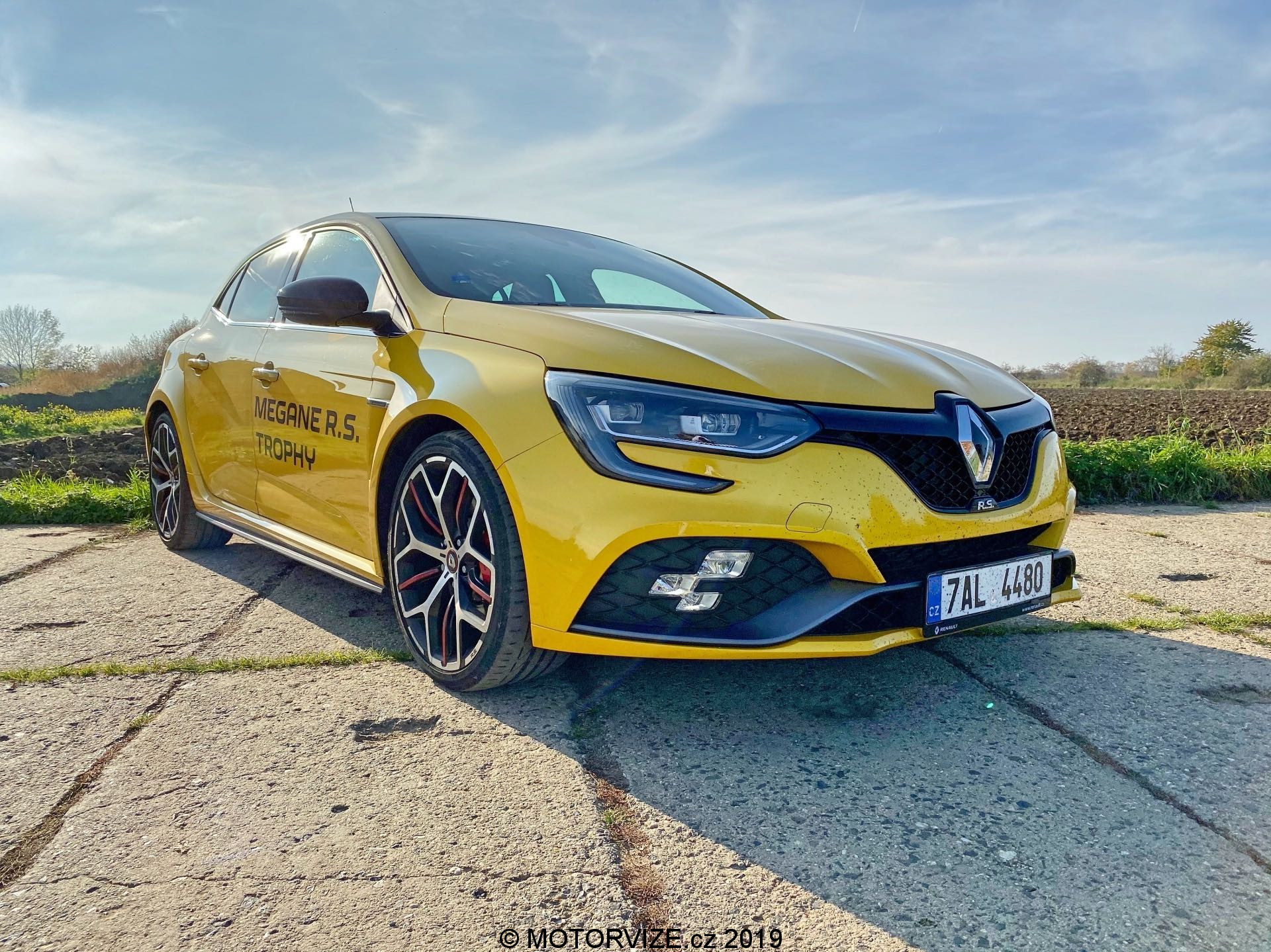 Renault Megane R.S. Trophy na to jde úplně jinak. Samozřejmě můžete jeho „první dojem“ lehce zmírnit volbou jiné barvy, než právě žlutou Sirius, ale upřímně řečeno, pokud si vyberete tento model (a v téhle verzi), nevím, proč by to kdo dělal. Tady je všechno přesně naopak a Renault velmi úspěšně a přímočaře dává najevo svůj přístup a zaměření. Agresivní nárazníky, mohutné rozšíření karoserie a právě výrazné lakování nenechají nikoho na pochybách, že jde právě o model R.S.