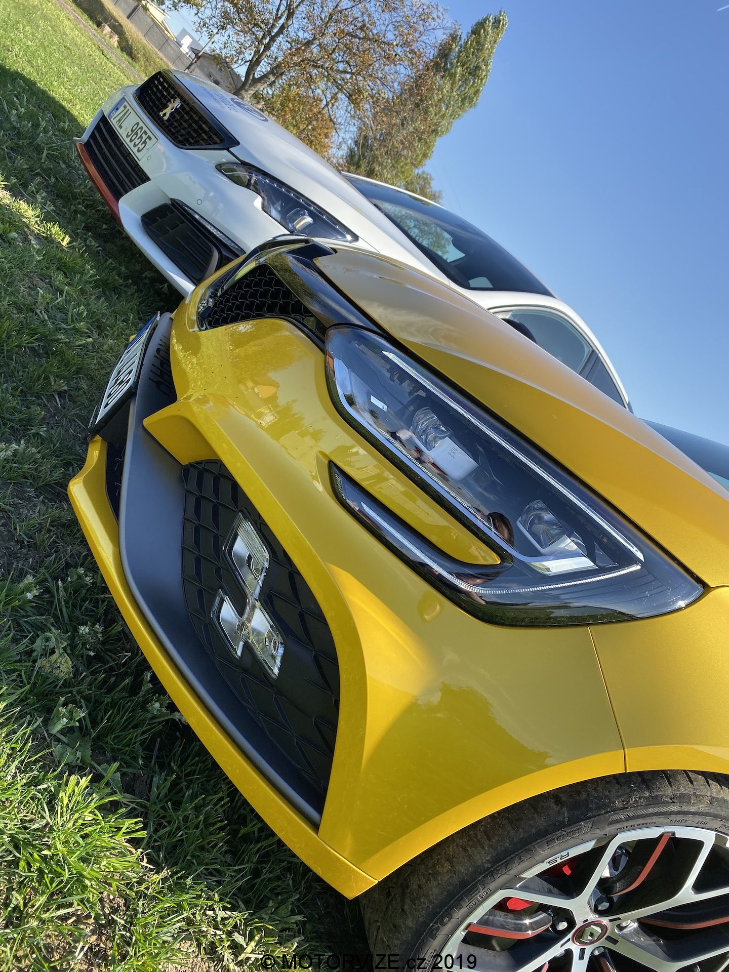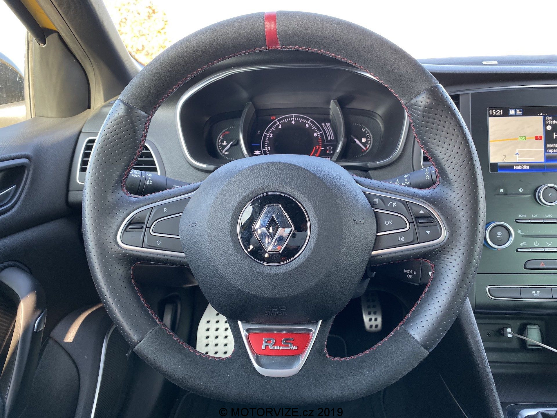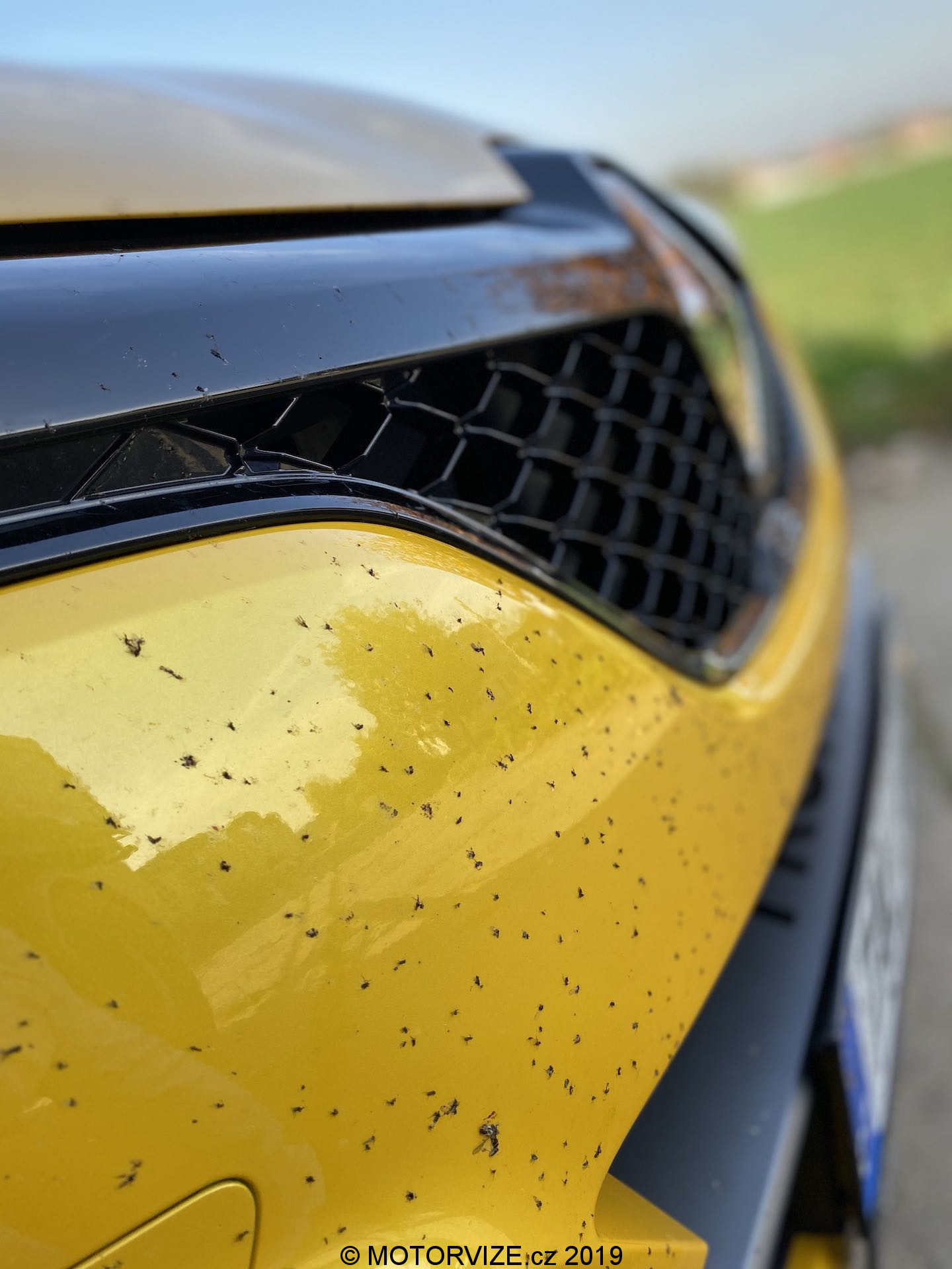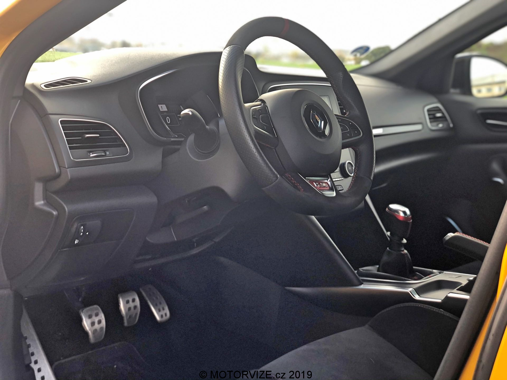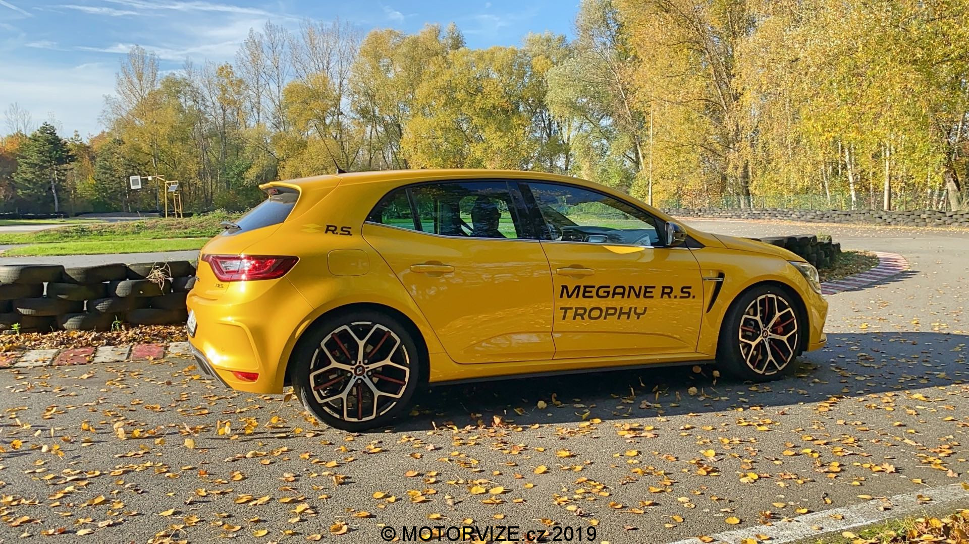 Renault Megane R.S. Trophy na to jde úplně jinak. Samozřejmě můžete jeho „první dojem“ lehce zmírnit volbou jiné barvy, než právě žlutou Sirius, ale upřímně řečeno, pokud si vyberete tento model (a v téhle verzi), nevím, proč by to kdo dělal. Tady je všechno přesně naopak a Renault velmi úspěšně a přímočaře dává najevo svůj přístup a zaměření. Agresivní nárazníky, mohutné rozšíření karoserie a právě výrazné lakování nenechají nikoho na pochybách, že jde právě o model R.S.