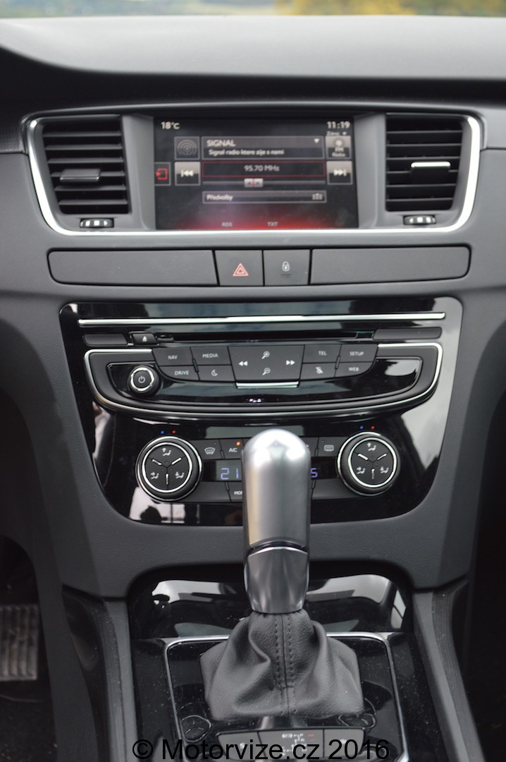 Budete překvapeni, že ani v interiéru nebudu příliš šetřit s optimismem. Pár nedostatků by se zde samozřejmě našlo, ale ty si nechám až na konec. Nemůžu si totiž odpustit několik komentářů k prvkům, které mě vyloženě potěšily. Jistě už dobře víte, že si opravdu hodně potrpím na sedadla a téměř v každém testu přirovnávám sezení k samotné špičce – AGR sedadlům Opelu, Mercedesu a jen pár dalších vybraných. Kdybych porovnával zde, opět bych nebyl velmi vzdálen. Manuálně prodloužitelný podsedák, elektricky přifukovatelná bederní opěrka, ve velkém spektru nastavitelná hlavová opěrka a obecně dobrý rozsah nastavení ve všech směrech dělají ze sezení skvělý pocit bez bolesti zad. První bod je tedy splněn, bezesporu si už teď dovolím říci, že na polykání velkých porcí kilometrů je tohle auto jako stvořené. Když si navíc vzpomenete na náš poslední test etalonu této třídy, domácího Superbu, odhalíte, že kolega Petr Bahenský nebyl se sezením úplně spokojen. Dále můžete být spokojeni s volantem, který je typicky Peugeoťácky optimálně velký nebo chcete-li spíše malý. Esteticky dobře působící jsou i všechny displeje. Na hlavním, středovém displeji můžete dokonce měnit vlastní barevné motivy, palubní je zas přiměřeně velký a najdeme na něm všechny potřebné informace a head-up displej je stále high-tech luxusním prvkem, který potěší ale jen do té doby než začnete hledat jeho nastavení. Přiznám se, že stejně jako vypínání systému start-stop, který my novináři prostě nemáme úplně v lásce, jsem musel i ovládání head-up displeje hledat v obsáhlém manuálu. Do něj mimochodem rozhodně nekoukám tak často jako běžný český důchodce do jednoho nejmenovaného bulvárního deníku. Abych neodbíhal od tématu, tak doteď je pro mě až nevěřícně ovládání těchto dvou důležitých funkcí umístěno u levého kolene, v ukryté schránce pod tlačítkem startování motoru. Narazil jsem na další záhadně umístěné tlačítko, na startovací kolečko vlevo si asi jen tak nezvyknu. Obecně bych tento nedostatek shrnul v kolikrát opravdu zmatenou ergonomii ovládacích prvků. Po vestavbě dotykového displeje, která přišla s faceliftem, se trošku zapomnělo na držák nápojů. Váš oblíbený nápoj se totiž díky Peugeotu může stát kolikrát i nepřítelem, když se přes něj prostě k dotykovému displeji nedostanete. Ani standardně se k němu ale nedostanete nejlíp, je prostě o něco dále než by měl být. Mohl bych pokračovat nespočtem tlačítek na volantu, ale asi bych celkovou ergonomii neviděl jako úplný nedostatek. Auto je zkrátka v interiéru pro někoho nového dost složité a musí si na něj zvyknout. Na druhou stranu nabízí opravdu skvělý komfort všemi směry a na ovládání základních funkcí si zvykne každý za pár dní. Abych nezapomněl, i prostor pro zadní cestující je na dobré úrovni. Se Superbem jej samozřejmě porovnávat nemůžeme, ale řekl bych, že Peugeot boduje o něco více než třeba jmenovaná Insignia. Kde by pak Peugeot bodoval o hodně více než Opel je zavazadlový prostor.