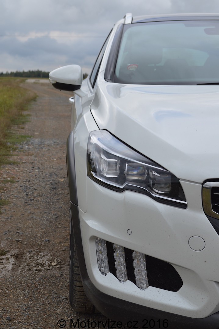 Začínat vzhledem u manažerského auta asi není tou nejběžnější cestou. Na druhou stranu, já nejsem úplně běžný uživatel a od auta za zhruba milion korun už očekávám trošku více než jen strohou a nudnou kvalitu, na kterou sází většina renomovaných německých výrobců. Dílenské zpracování samozřejmě nelze opominout, ale k tomu až za chvíli. Pojďme se vrhnout na první dojem, který nastává konkrétně u tohoto exempláře opravdu rychle. Především vás rychle dostane povedená kombinace bílého lakování, „terénního“ oplastování, lehce vyvýšené karoserie a výrazných LEDek. Ty jsou navíc použity i pro blinkry a pro denní svícení jsou uspořádány netradičně vertikálně ve 3 řadách místo mlhovek. Obecně auto působí stále hodně nadčasově a elegantně. Zde mohu poupravit své oblíbené označení „Nezaujme, ale ani nezarmoutí“ na „Zaujme, ale ani nezarmoutí“. Přeloženo do jazyka českého se jedná o auto, které svým vzhledem opravdu upoutá, ale zároveň ani nevzbuzuje žádný zásadní rozruch nebo pobouření u okolí. To se mi jako reálnému klientovi opravdu hodně líbí.