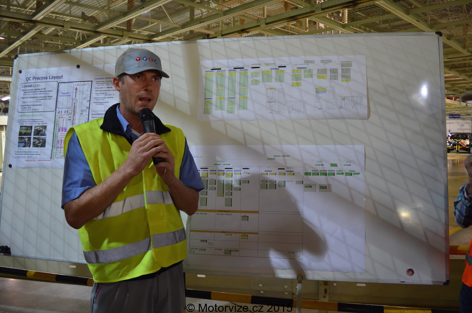 Na úvodu naší přednášky jsme se dozvěděli o dvou pilířích kontroly vozidla před opuštěním fabriky. Prvním z nich je samotná kontrola, tudíž veškeré testy, mezi které patří dešťový test (ověření těsnosti), test mechanických částí vozidla, zejména motoru a kontrola jeho výkonu, test elektronických částí a bezpečnostních systémů. Jak vysvětluje tiskový mluvčí, Marek Hovorka, základem je ale úplná transparentnost. Že nevíte co si pod ní v případě tohoto oddělení představit? Zejména jde o zpětnou vazbu sekce kontroly na jednotlivá stanoviště, která mohla udělat chybu a způsobit tak vadu na daném kusu či ojediněle v sérii vozů. Můžeme se bavit obecně o poučení z chyb již vykonaných, ale není tomu tak jednoduché. Celému rozklíčování nějaké vady vévodí důkladná analýza, pro kterou má TPCA utvořen speciální tým a dokonce jakousi tajnou místnost, do které jsme sice měli možnost nahlédnout, ale jen na krátkou chvíli a pochopitelně pod zákazem fotografování. Nejde ale jen o odhalení vad konkrétních automobilů, automobilka si sama určitý počet automobilů za každou směnu bere také na zvláštní testování, při kterém auto může projít dnes poměrně hodně diskutovaným testem emisí, důkladnější zkouškou těsnosti, bezpečnostních systémů, či dalšímu testování na zkušební dráze.