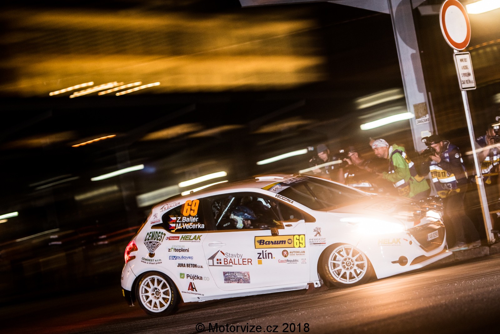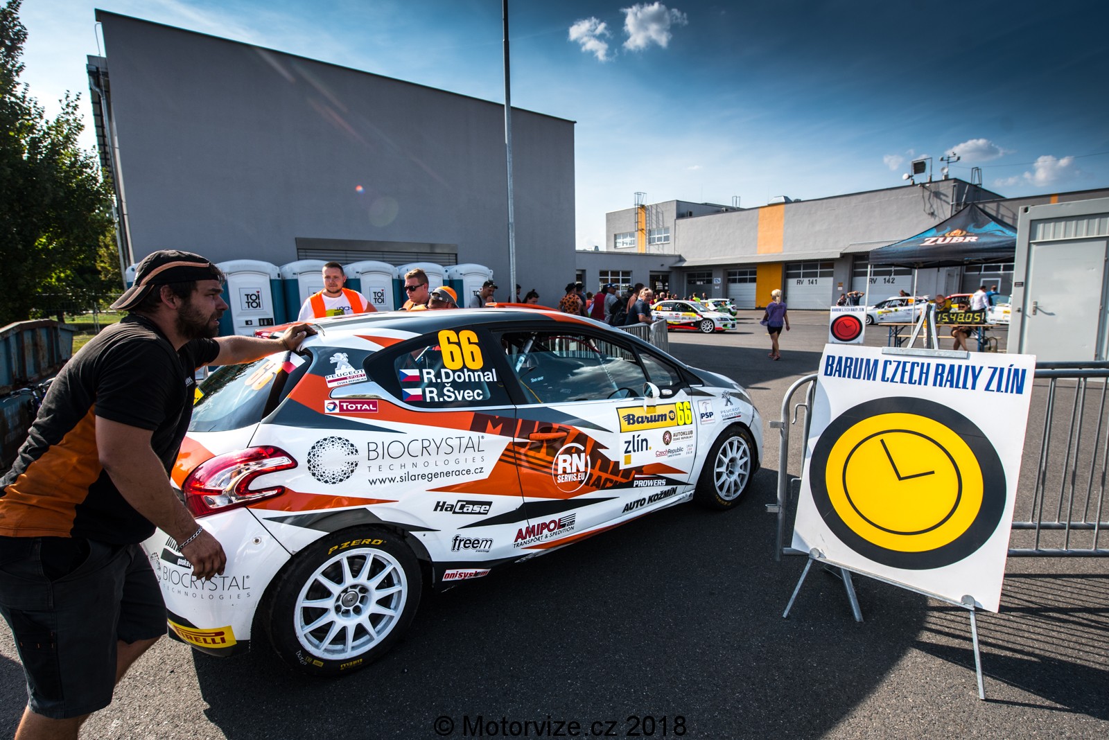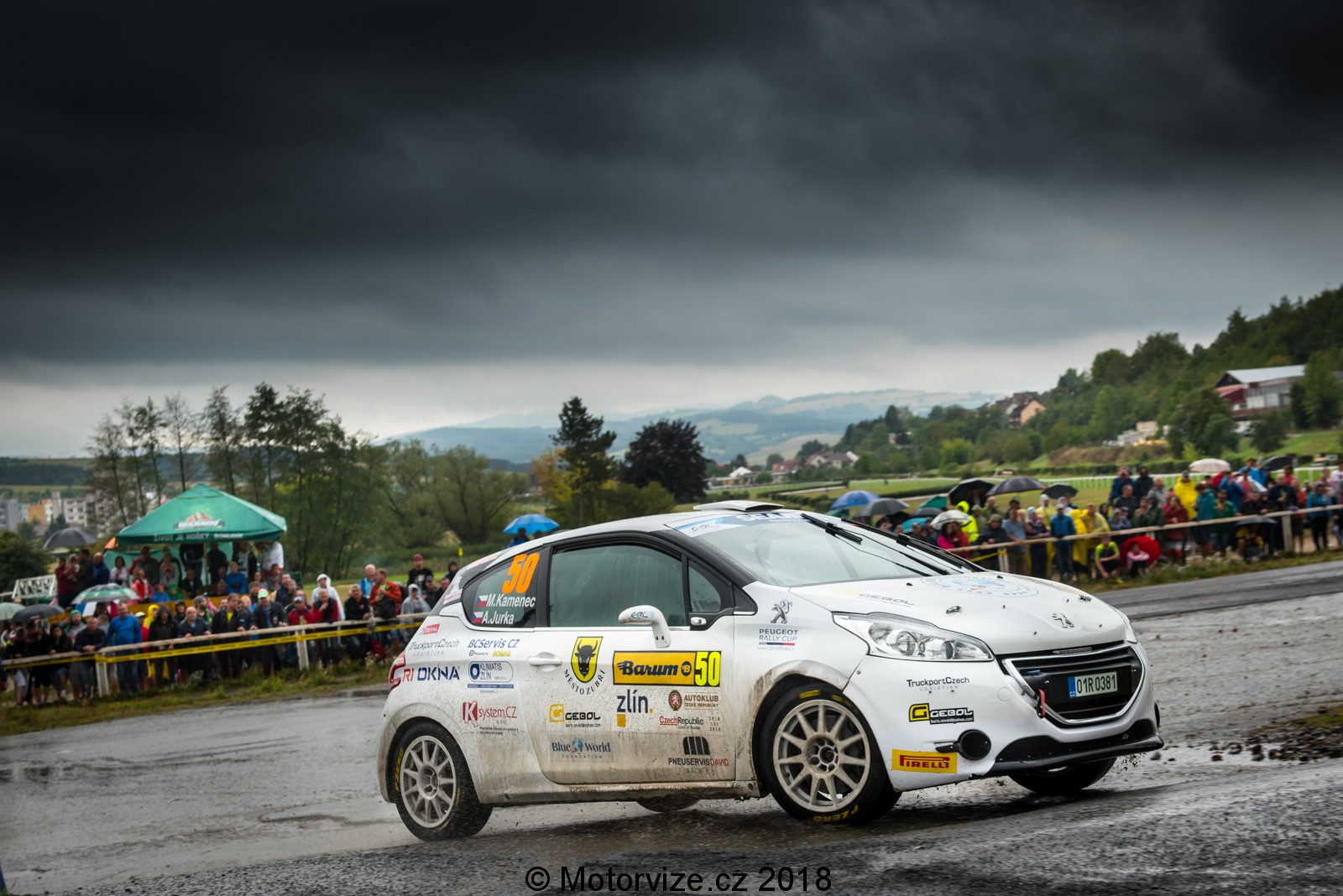 Začněme ale pěkně popořádku. Barum Czech Rally Zlín začíná tradičně divácky atraktivní superspeciálkou přímo v centru města, a to mezi bývalými baťovými závody. Nebudu se nyní dlouze rozepisovat o svých dojmech z letošní RZ 1, i když samozřejmě nemohu zapomenout připomenutí té opravdu skvělé atmosféry, jaká mezi diváky panovala. Příjemné v případě všech R2, a tím spíše i těch startujících v rámci poháru značky Peugeot, je poměrně rozumné načasování jejich startu – startovní čísla začínající šestkou totiž vyjela na trať někdy okolo desáté hodiny, kdy jsme nemuseli očima mžourat ještě ani my, novináři a ani závodníci. Teď už ale k hlavnímu dění. Vskutku s přehledem se hned v pátek večer ujala vedení posádka Dohnal / Švec, a to o 7,2 vteřiny. Dosavadní lídr, Honza Talaš je po prvním dni prozatím na druhé pozici. Sobotní ráno přivítalo posádky deštěm a velkým ochlazením. Po odjeté kvalifikaci nakonec do závodu neodstartoval Julian Wagner a přišel tak o šanci obsadit celkově druhé místo. V druhé RZ havaroval Zbyněk Baller a ani ostatní posádky se nevyhnuly krizovým situacím. Na prvních třech pozicích svádělo divoké souboje trio Talaš, Knápek a Dohnal. Mezi ně se ještě prodral Matěj Kamenec, který se po páté erzetě posunul až do vedení. René Dohnal vyletěl z trati na RZ 5 a propadl se na čtvrtou pozici. Výlet mimo trať a přistání na pokácených stromech zažil o pět zkoušek později také Tomáš Knápek. Oba jezdci mohli s velkým štěstím pokračovat, ale do vedení se mezitím dostal Jan Talaš. Matěje Kamence vyřadila ze hry technická závada na RZ 11. Asi tak by se dalo shrnout dění na tratích Barumky.