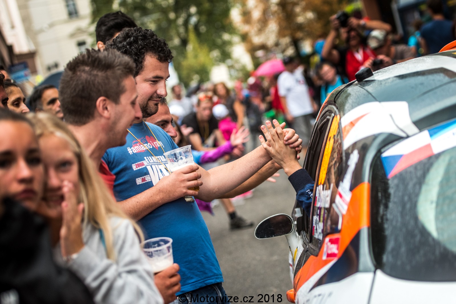 Než si ale dovolím bilancovat či dokonce uzavřít i já kapitolu Peugeot Rally Cup 2018, máme tu ještě jednu rychlou zpověď. Už nemusíme tajit vítěze tady ve Zlíně a zároveň i celého šampionátu, je jím Honza Talaš. A právě jemu jsme položili už v průběhu Barumky několik důležitých dotazů. Tak jak to vypadalo tuto sezónu z kokpitu právě jeho R2ky? „Peugeot dobrej, tady na Barumce se ale nedaří úplně podle představ. Ty časy jsou přeci jen o něco horší, než bychom chtěli. Jinak si myslím, že je Peugeot cup opravdu dobrej. Chtělo by to snad jen dotáhnout ještě pár těch kluků, co jedou 208.“ Osobní hodnocení pak zní asi takto: „Pro mě osobně dobrý. My jsme si zazávodili s klukama a nějaké peníze jsme z toho dostali, takže jsme opravdu v pohodě.“ Zpět ke konkurenci, jak konkrétně tady ve Zlíně? „Na úrovni české republiky určitě dobrý, byť bych chtěl určitě víc soupeřů. Tady jsme z toho možná trochu zklamaný, chtěli bychom tahat víc.“ Od boku mě napadá další otázka, která je zrovna na Barumce opravdu hodně na místě, týká se počasí. „Na mokru je to po letošním Krumlově náš druhý závod s R2. Jako není to tu úplně mokrý. Je to vlhký, občas suchý, takový místy zrádný.“ A jak bojuje Honza s pneumatikami? „Jedeme jenom mokrý, jiná volba není. Samozřejmě jedeme neřezaný, to nám pravidla nedovolují. Není to ale špatný. Místy narážíme na úseky, kde je to opravdu nepředvídatelné, ale zatím se držíme. Jde to.“ Prý ale nejde jen o jeden závod, spíše o celou sezónu: „Sezóna dobrá. Snažíme se dojíždět a brát co nejvíce bodů. Samozřejmě vždycky chceme příčku nejvyšší, ale když to prostě nejde, tak dojíždíme vzadu a spokojíme se i s nižšími body jako to dělá třeba Sebastian Ogier v Mistrovství světa a tak to prostě je jako,“ nesměle prozrazuje Honza svůj velký vzor. Ještě před koncem Barumky jsme mohli v případě jmenované posádky polemizovat nad účastí na nadcházející rally Příbram, která už však není součástí Peugeot cupu. Právě jejich nenápadný Peugeot je totiž zároveň i vedoucí posádkou českého mistrovství ve dvoukolkách. Po vítězství ve Zlíně mají však titul mezi dvoukolkami už jistý a Příbram už by tak pro ně byla spíše jen na efekt.