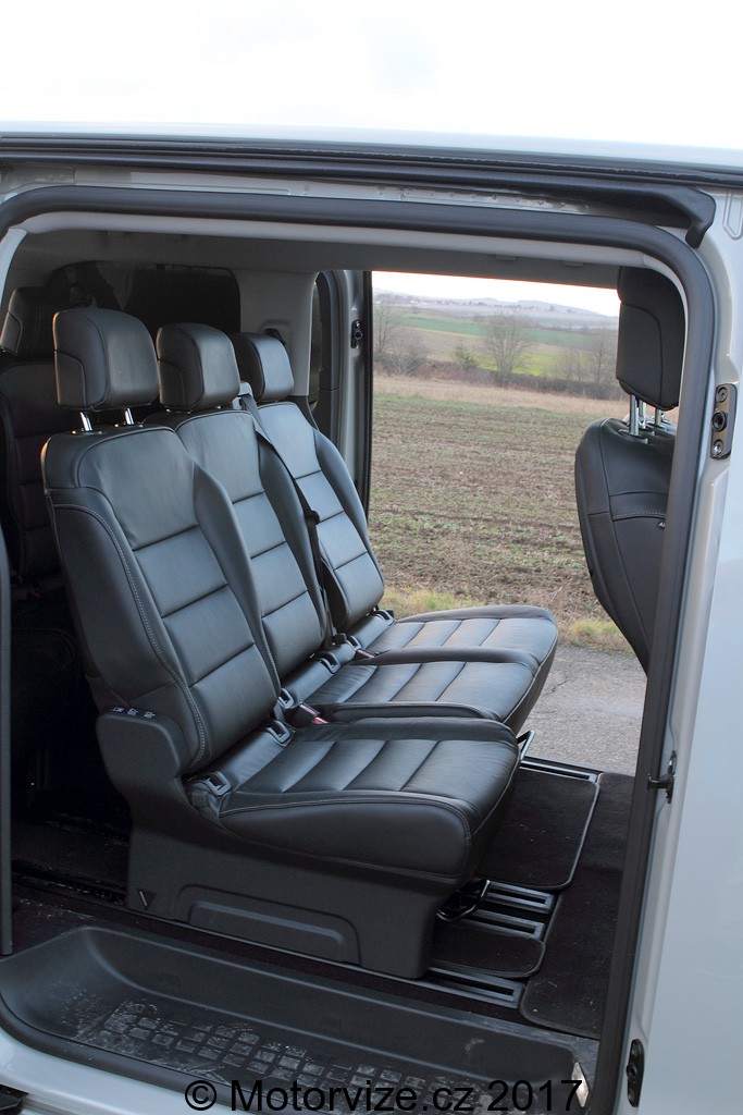 Jak už jsem naznačil v několika předešlých kapitolách, nejde přeci jen o krátké přesuny po městě. Stačí se jen trochu více zahledět do ceníku, kde (jako obvykle v této třídě) nenajdeme žádný benzínový motor. To představuje jen malý ale podstatný náznak, že krátké městské vzdálenosti nejsou tím úplně pravým ořechovým. Na zmíněnou Korsiku jsme sice ani neměli možnost vyrazit, tak se pojďme alespoň na chvilku ponořit do naší fantazie. V té budu nejdříve přemýšlet o pohodlí pro řidiče. Bederní opěrka samozřejmě nemůže chybět, tak snad by asi neměl být žádný problém ujet 1000km? V zásadě mi může úsměv na tváři vzít snad jen pro užitkové vozy poměrně dosti standardní posez za volantem, který bych nazval jako „na židli“. Na krátkých vzdálenostech mi typ sezení nevadil, ale upřímně nevím nevím, jak by vypadalo 10 hodin sezení nebo spíše jak bych vypadal já. Ostatním cestujícím se dostává asi poněkud většího komfortu. Vlastní okruhy klimatizace, vlastní okénka, kožené čalounění a dostatek prostoru všemi směry, to jsou atributy, které je schopen Traveller v naší osmimístné specifikaci nabídnout. Z celého prostoru bych si tak asi vybral místo spolujezdce nebo druhou řadu, ve které mají všichni cestující zhruba stejné možnosti do šířky, výšky i v podélném směru. Když bych měl svůj malý sen shrnout, tak na Korsiku přijíždí za zhruba 11 hodin v jednom autě celkem 8 poměrně spokojených cestujících s jízdenkou o ceně max. 350Kč (bez započtení mýtného). Za tu cenu bychom tam snad nedojeli ani stopem, a to musím uznat, že jde o hodně luxusní variantu!