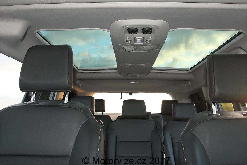 Přesně to, co v první třídě očekáváme – kožené sedačky, elektricky ovládané boční dveře, samozřejmě vlevo i vpravo. Nezbytnou potřebou je dvouzónová klimatizace vpředu a také přídavná klimatizace vzadu a jako třešnička na dortu působí panoramatické střešní okno. Tento luxus má ale několik vad na kráse. Sedačky jsou samozřejmě vyhřívané, ale účinek vyhřívání nabíhá velmi pomalu, a to jsme auto měli v testu na přelomu listopadu a prosince, kdy se teploty ještě nedostávaly pod bod mrazu. Příjemnou věcí a téměř samozřejmostí pro tento typ výbavy by byl vyhřívaný volant, ale bohužel ten zde nenajdeme. Naopak k hýčkání přispěje další velice nadstandardní a v dané třídě poměrně nevídaný prvek – masážní přední sedadla, jejichž funkčnost považuji za jednu z těch lepších, ve kterých jsem kdy seděl. K elektricky ovládaným bočním posuvným dveřím jsem očekával totéž i pro zadní výklopné dveře. Vzhledem k jejich velikosti může být manipulace s nimi, zejména pro něžnější část naší populace poněkud obtížná. Škoda těchto pár drobností. Když si ale vzpomenu na kterýkoliv svůj výlet nebo ještě lépe na snahu hrát si na „školní autobus“, vidím poměrně úspěšné cesty s dokonaným cílem. V každém případě si nikdo z mých cestujících nestěžoval a naopak byl překvapen kvalitou zpracování a vůbec auta jako celku. Často jsem si užíval uznalé pohledy kolemjdoucích ve stylu „Tohle bych od Peugeotu nečekal.“ nebo „Co to je? Opravdu Peugeot?“