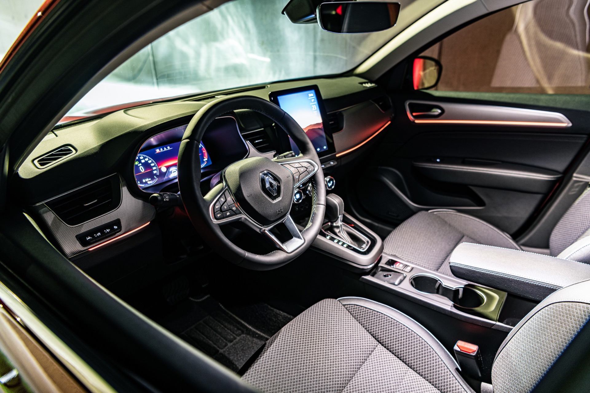 Arkana je vybavena digitálním zobrazováním na palubní desce. Její přístrojový štítj měří 4,2 nebo 7 palců, podle jednotlivých verzí. Je doplněn o centrální displej 7 nebo 9,3 palců, čímž nabízí jednu z největších úhlopříček zobrazování ve své kategorii. Ve středové konzoli se nachází velký úložný prostor s indukčním nabíjením smartphonů a bočními úložnými prostory včetně síťky na straně spolujezdce. Obsahuje rovněž automatickou elektrickou parkovací brzdu s funkcí „Auto-hold ”. U vyšších výbav je Arkana vybavena velkým dotykovým displejem 9,3 palců, který spoluvytváří modernost kabiny. Kromě indukčního nabíjení ve středové konzole je Nový Renault Arkana vybaven čtyřmi zásuvkami USB (2 vpředu a 2 vzadu) pro konektivitu a dobíjení elektronických zařízení. Do kapes ve dveřích se vejde 1,5 litrová láhev. Řidič má díky zvýšenému posezu pohodlný a ergonomický prostor. U některých úrovní výbavy mohou cestující vzadu využít širokou výklopnou loketní opěrku uprostřed, jakož i nastavitelné ventilační otvory na konci středové konzoly. Automatická klimatizace je u všech verzích spojena se vzduchovým filtrem.