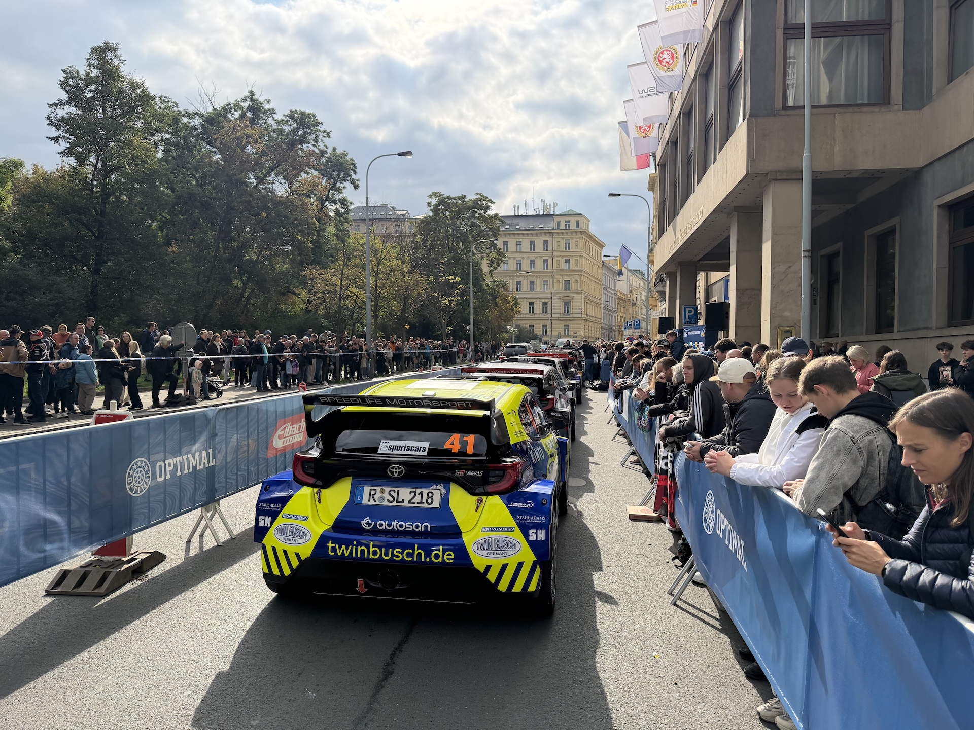 Právě na Náměstí Jana Palacha, s ikonickým výhledem na Hradčany, jsem se zastavil mezi davem diváků. Během krátké zastávky u Rudolfina, kdy posádky vystoupily z vozů a věnovaly se médiím i fanouškům, se dalo vnímat, jak silný vztah má české publikum k rally. Byla to směs zvuku motorů, tleskání, cinkání fotoaparátů a vůně benzínu – přesně ta atmosféra, kvůli které rallye láká tisíce lidí do příkopů po celém světě.