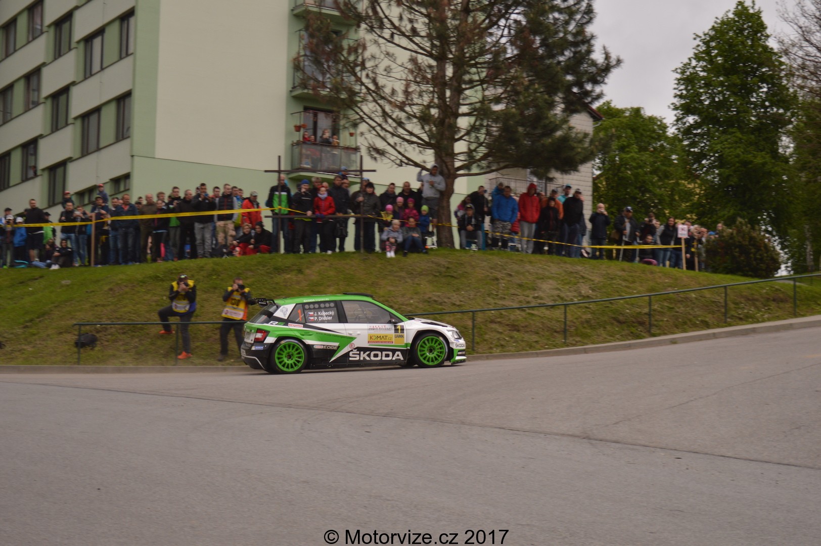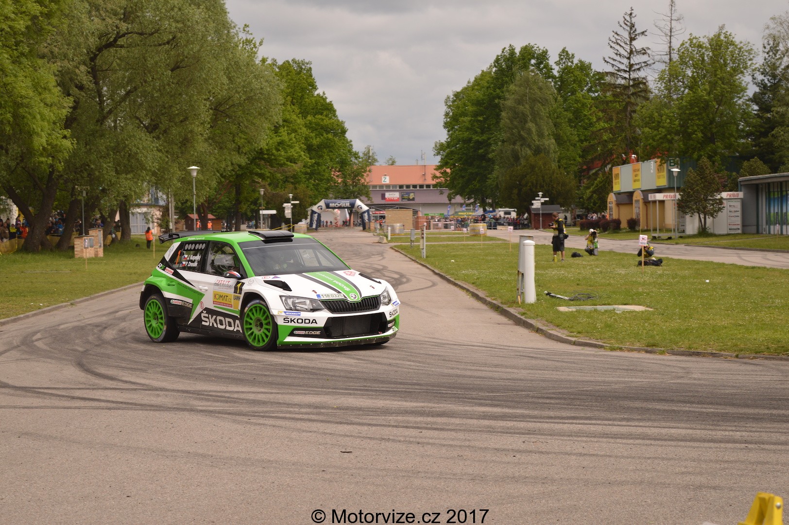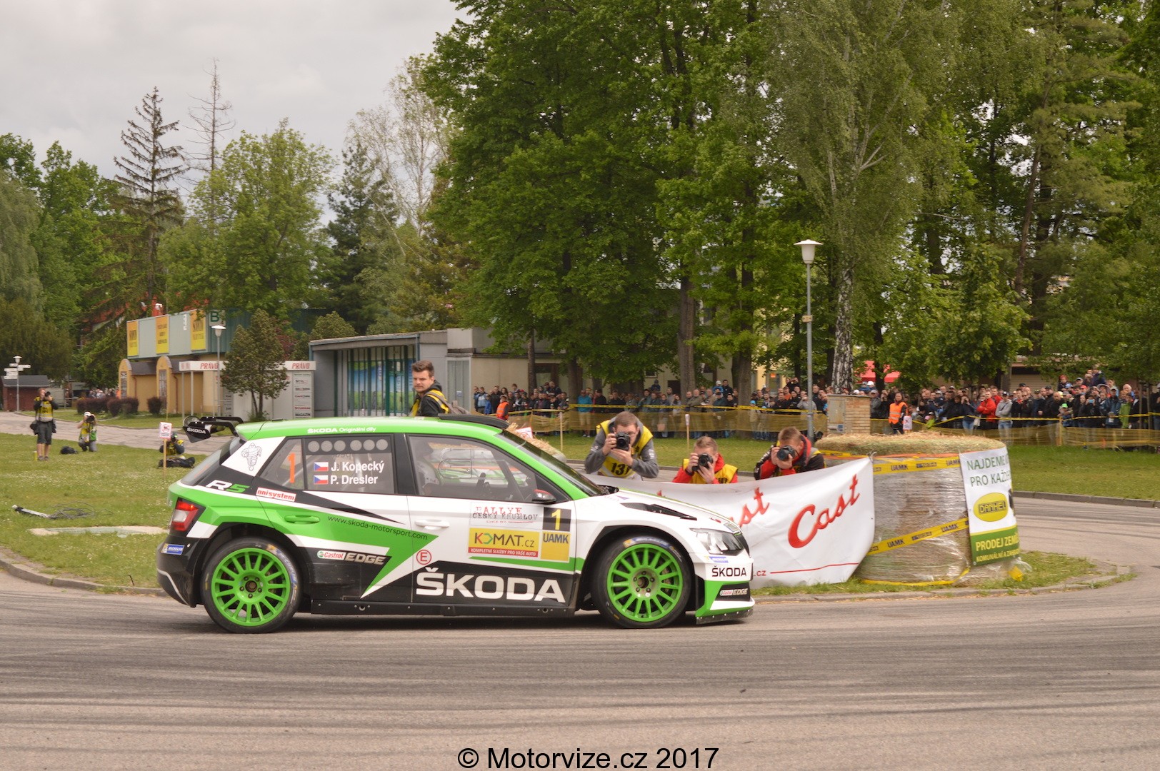V sobotních 10:30 startuje na výstavišti v Českých Budějovicích další městská zkouška. My samozřejmě nemůžeme chybět. Čas ještě nebyl ani na svačinu a tak na nás jde pomalu i hlad. Od toho tu ale nejsme. Na startu opět stojí náš fotograf a zachycuje pro vás ty nejhezčí momentky. Působivé (jak už to u městských RZ bývá) mohou být hned dva průjezdy každé posádky. Své prvenství si i tady drží opět tovární tým Škoda v podání Honzy Kopeckého a Pavla Dreslera. Nemůžu si však pomoci a zmíním i největšího konkurenta Škodovky v kategroii R5 – Forda Fiestu. Ta je totiž tak nějak divácky atraktivnější – hlasitější, opticky výraznější a „smradlavější“. Ať už jde o podání Venci Pecha nebo Martina Vlčka, jejich auta vypadají tak nějak „závodněji“. Odpusťte mi prosím tuto drobnou poznámku, ani v nejmenším nešlo o jakýkoliv útok na domácí automobilku, k jejíž dominanci doma i ve světě se nedá říci ani popel. Po zhruba prvních 20 jezdcích odcházím na oběd a plánuji další průběh. Ani jsem netušil, že nás ten den budou čekat ještě celá 3 pozorovací místa.
