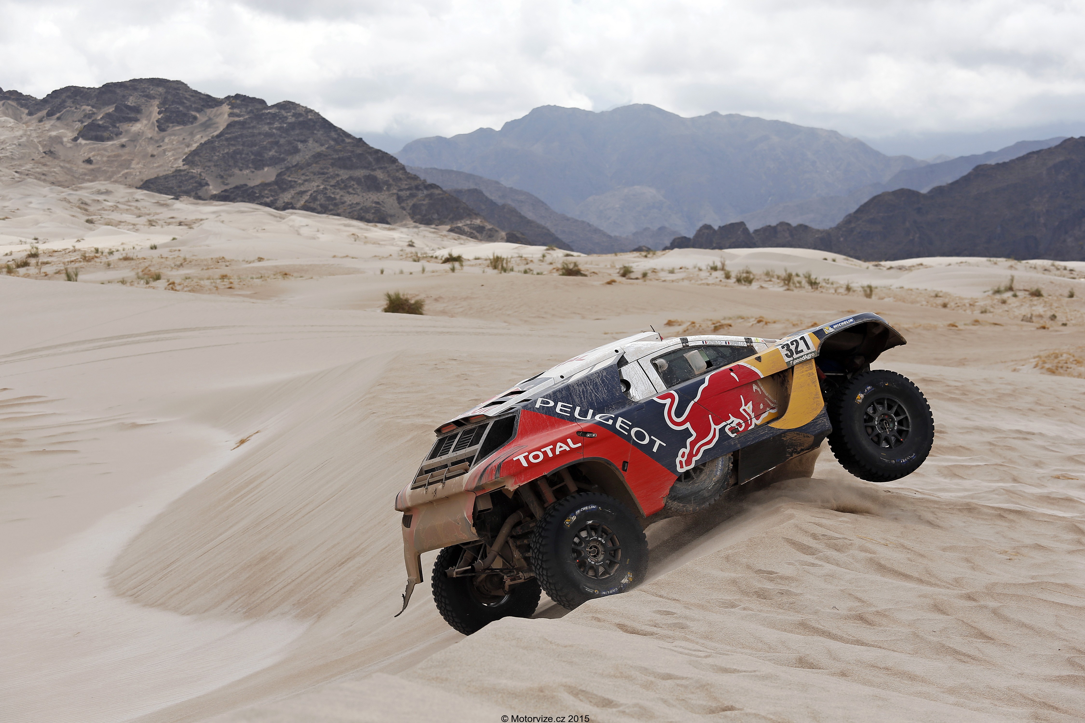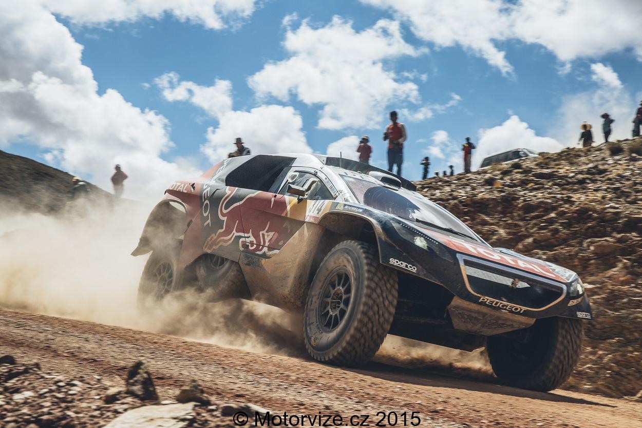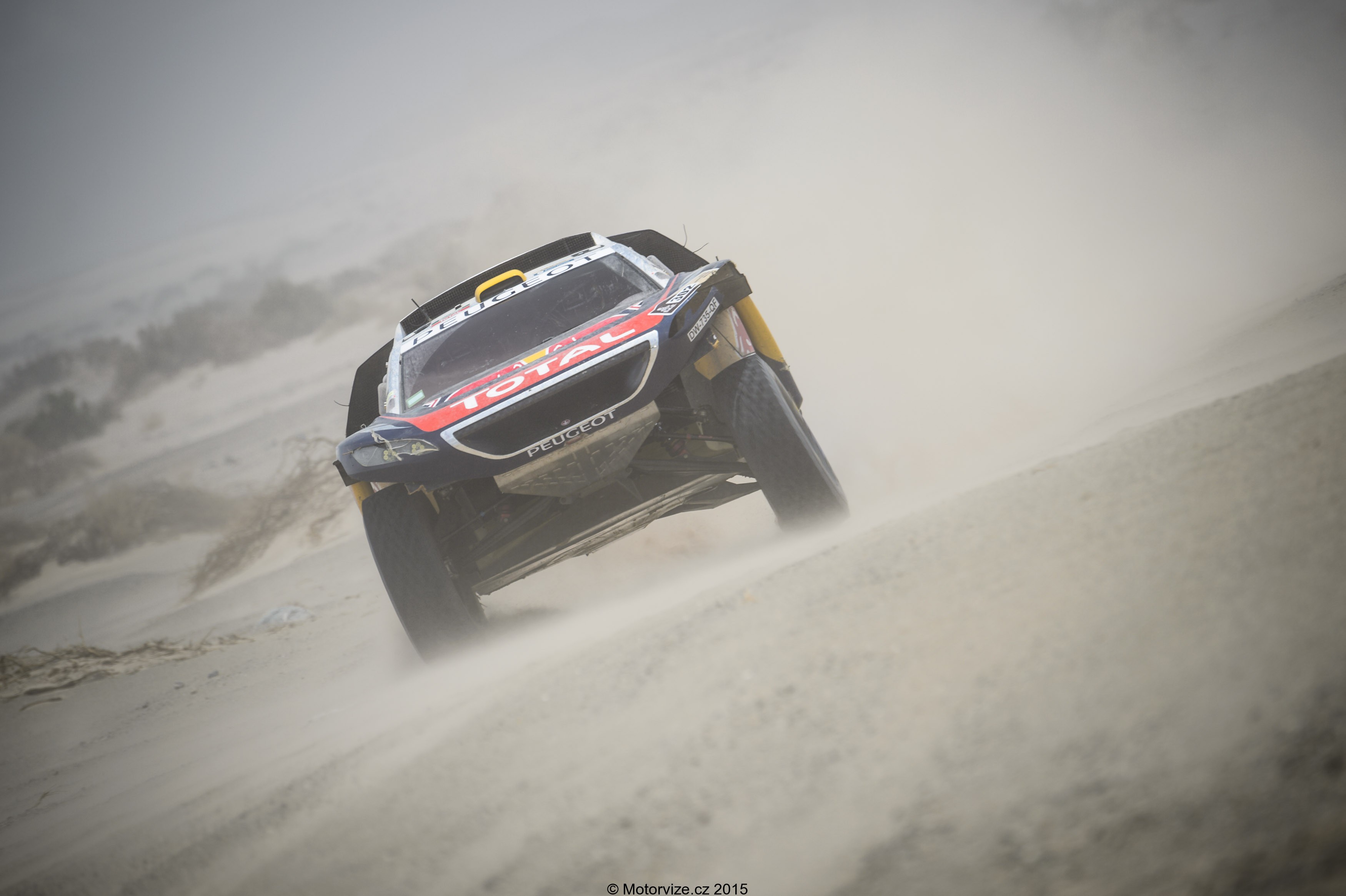 Mezi automobily vede Sebastian Loeb na Peugeotu před Stephenem Peterhanselem, třetí místo patří se ztrátou 5 minut Carlos Sainzovi. Čtvrtý je Katařan Nassir Al Attiyah.