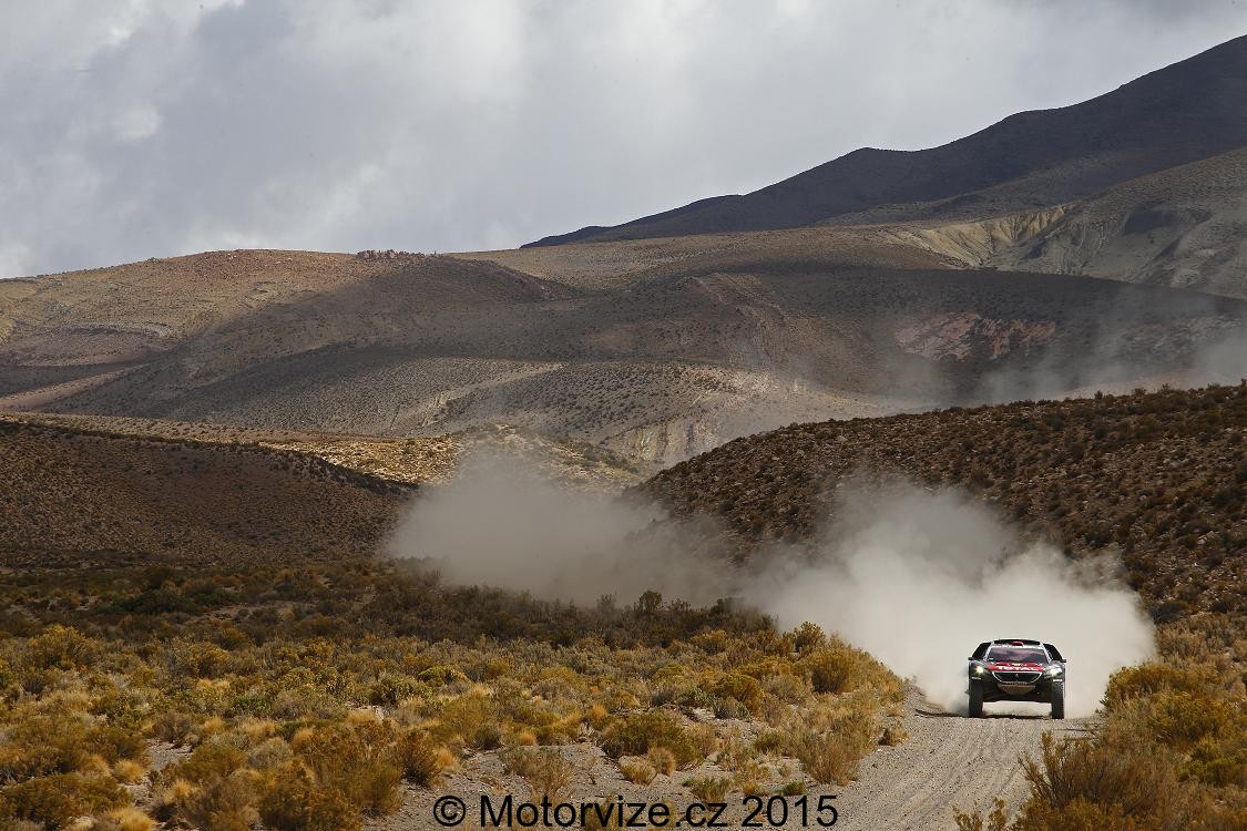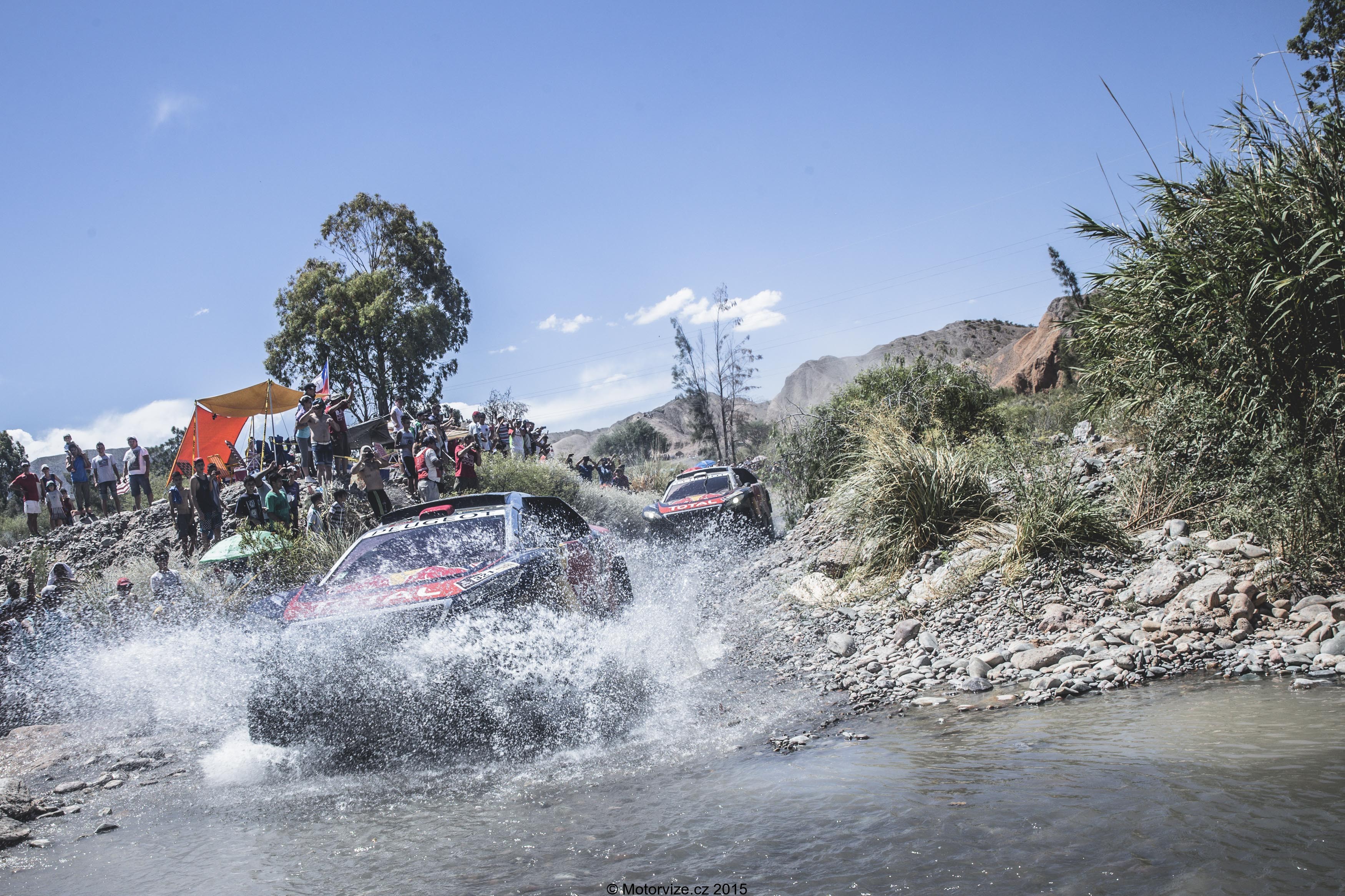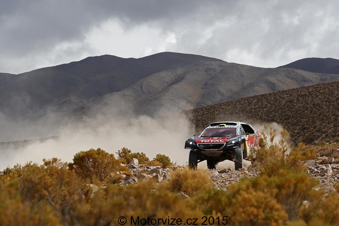 Mezi automobily vede Sebastian Loeb na Peugeotu před Stephenem Peterhanselem, třetí místo patří se ztrátou 5 minut Carlos Sainzovi. Čtvrtý je Katařan Nassir Al Attiyah.