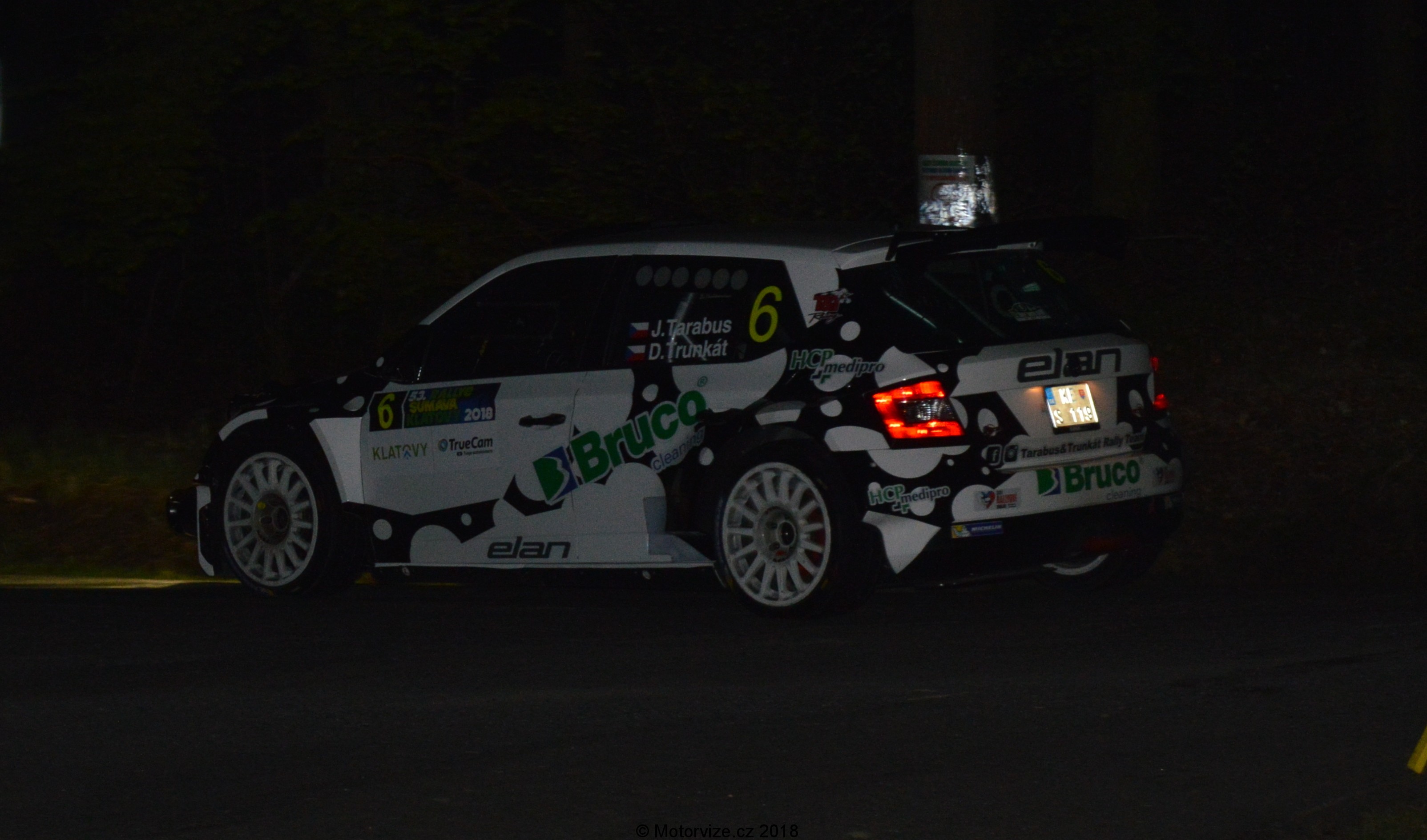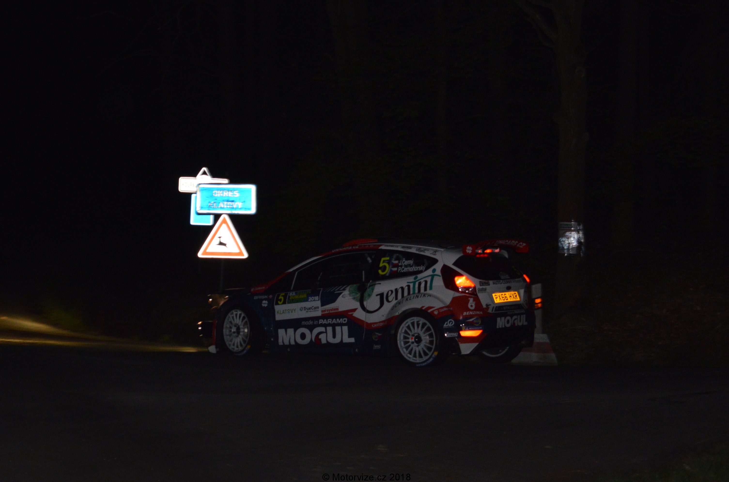 Nadpis tohoto odstavce možná mluví sám za sebe. Určitě jste už tušili nebo dokonce věděli, že se vzhledem k poměrně pozdnímu oficiálnímu startu v pátek pojede až dlouho do noci. Opak by nebyl pravdou. Ani my jsme však neměli v plánu setrvat až k poslední rychlostní zkoušce, u které svítil čas 23:01. K tomu se ale už brzy dostaneme. Onu špičku startovního pole, tedy zhruba 25 nejhezčích strojů máme alespoň u námi dnes první sledované tratě za sebou. Už jsem zmiňoval, že na rally nejezdíme jen kvůli práci. Člověk musí trochu myslet i na sebe, takže nás čekala zasloužilá večeře v Klatovech. Nechyběl ani servis, rychlé vyzvednutí akreditací a pak honem ke zkouškám. K našemu nemilému překvapení se nám bohužel nepodařilo stihnout polokruhovou vložku, Klatovský okruh, který pro nás měli pořadatelé se startem v 21:29 výjimečně připravený v podstatě celý za tmy. To musela být náramná podívaná. My však vyrážíme do už zcela ztemnělé krajiny na RZ 5 Andělická, kde přichází přesně to, co jsem avizoval v nadpisu odstavce. V deset večer je totiž nejen tma, ale už i vcelku zima. Zatímco přes den byly překonávány teplotní rekordy, i mě už je v lehké jarní mikině zima. Podobně jsou na tom i pneumatiky. Právě na to doplatil nejeden jezdec. Začneme ale pěkně od začátku. Našli jsme totiž docela pěkné místo. I když je kolem nás kopa dalších přihlížejících, o podívanou je postaráno. Auto vidíme už poměrně dlouho před vesnicí, do které vjíždí rychlostí blížící se maximálce. Právě u nás posádky ale čeká zrádná zatáčka, ve které musí ihned za úzkým mostkem zatočit o 90 stupňů vpravo. První posádky to zvládají bravurně, snad až překvapivě. Teprve čtvrté auto zažívá zaváhání, které jej stojí pozdější odstoupení. Honza Dohnal společně s Michalem Ernstem na mnou milovaném Focusu WRC specifikace z roku 2006 přijíždějí a probržďují. Situaci, kdy je v nájezdu auto až moc rychlé řeší řidič na rally vskutku logicky – přes ručku se snaží auto rychle stočit a projet zatáčku bokem. To se z části daří, i když zadek auta už klouže do příkopu, kde se zasekne o zábradlí… Smutný konec příběhu je ulomené zavěšení levého kola, i když po provizorním vyřešení na místě posádka dojíždí do cíle alespoň této rychlostky, bohužel pro ně vůbec poslední. Podobná situace, i když tentokrát se šťastným koncem, proběhne o pár desítek minut později i v podání mladičkého továrního jezdce Škody Auto, finského Nodrgrena, a to na poslední RZ tohoto dne, na Korábu, kde samozřejmě nemůžeme chybět. Tenhle průjezd mi nedá spát snad ještě ani dnes. Krizovka, kterou zvládl opravdu na jedničku! Že by se v novém talentu škodovka nespletla?